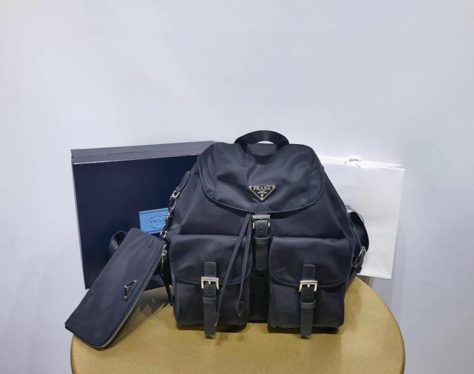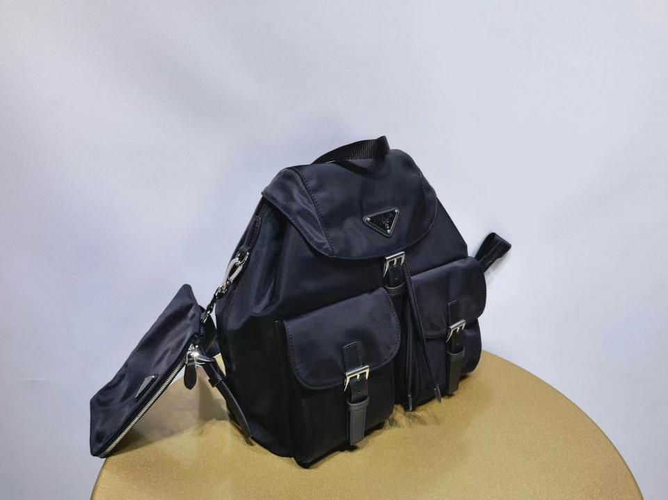 2023春夏 經典款 P家三角標尼龍後背包 搭配一個小掛包