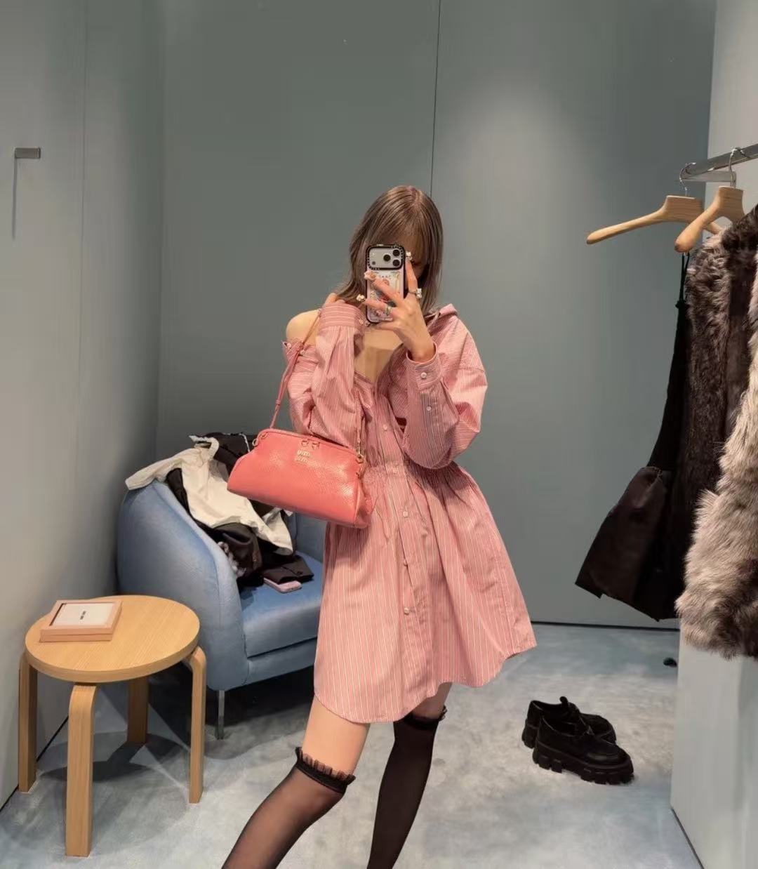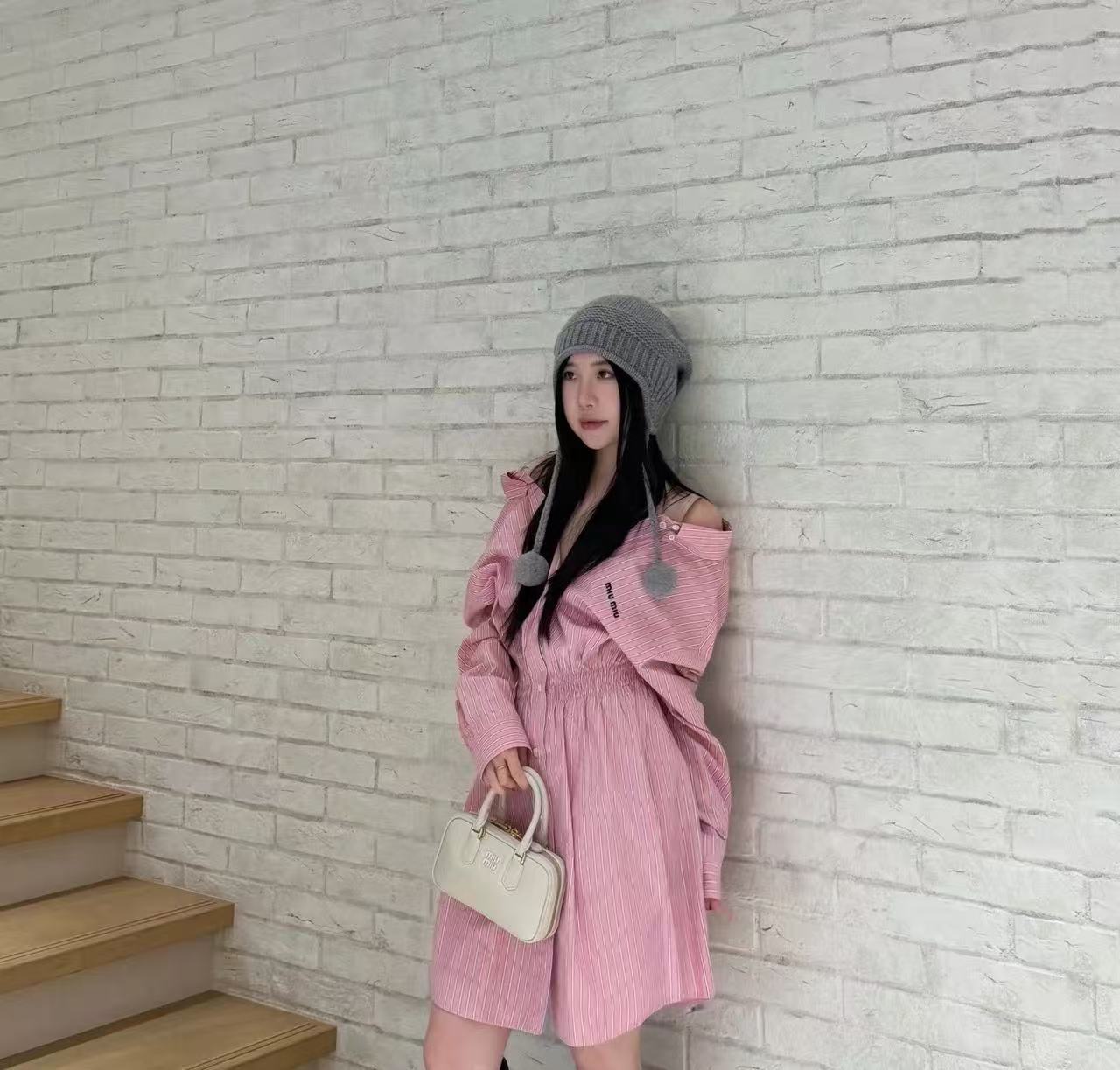 這件裙子最精髓的穿法,就是參考品牌最經典的疊穿公式——裡面搭件牛仔褲或半身裙,瞬間切換成時髦度爆棚的「Miu 系風格」,簡直是穿搭界的高級感天花板!