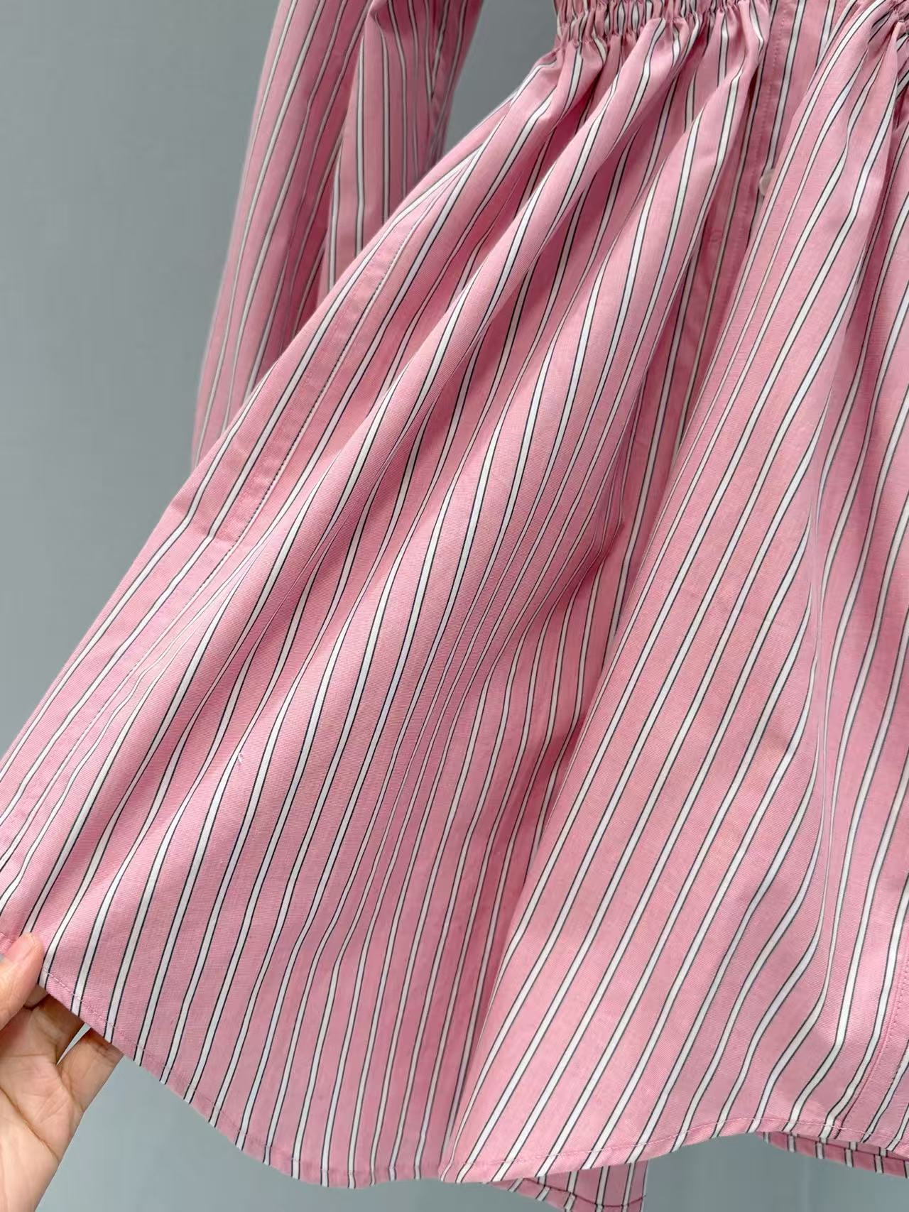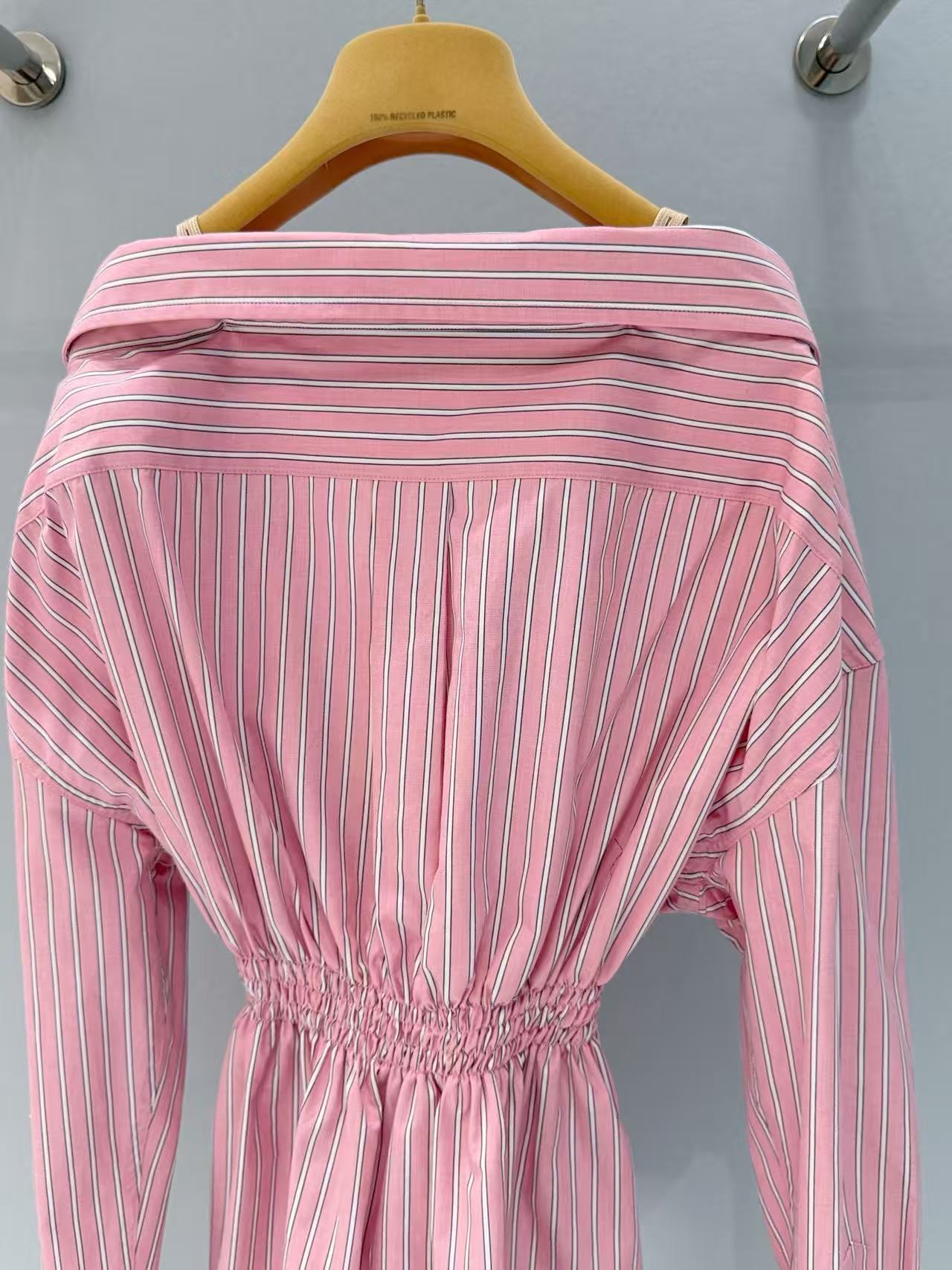 最迷人的就是它的一字肩設計,搭配鬆緊收腰版型,上身後非常顯瘦,完美修飾身形。