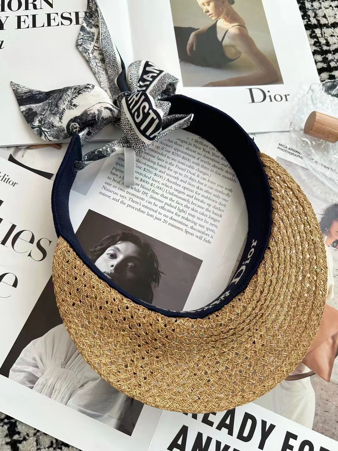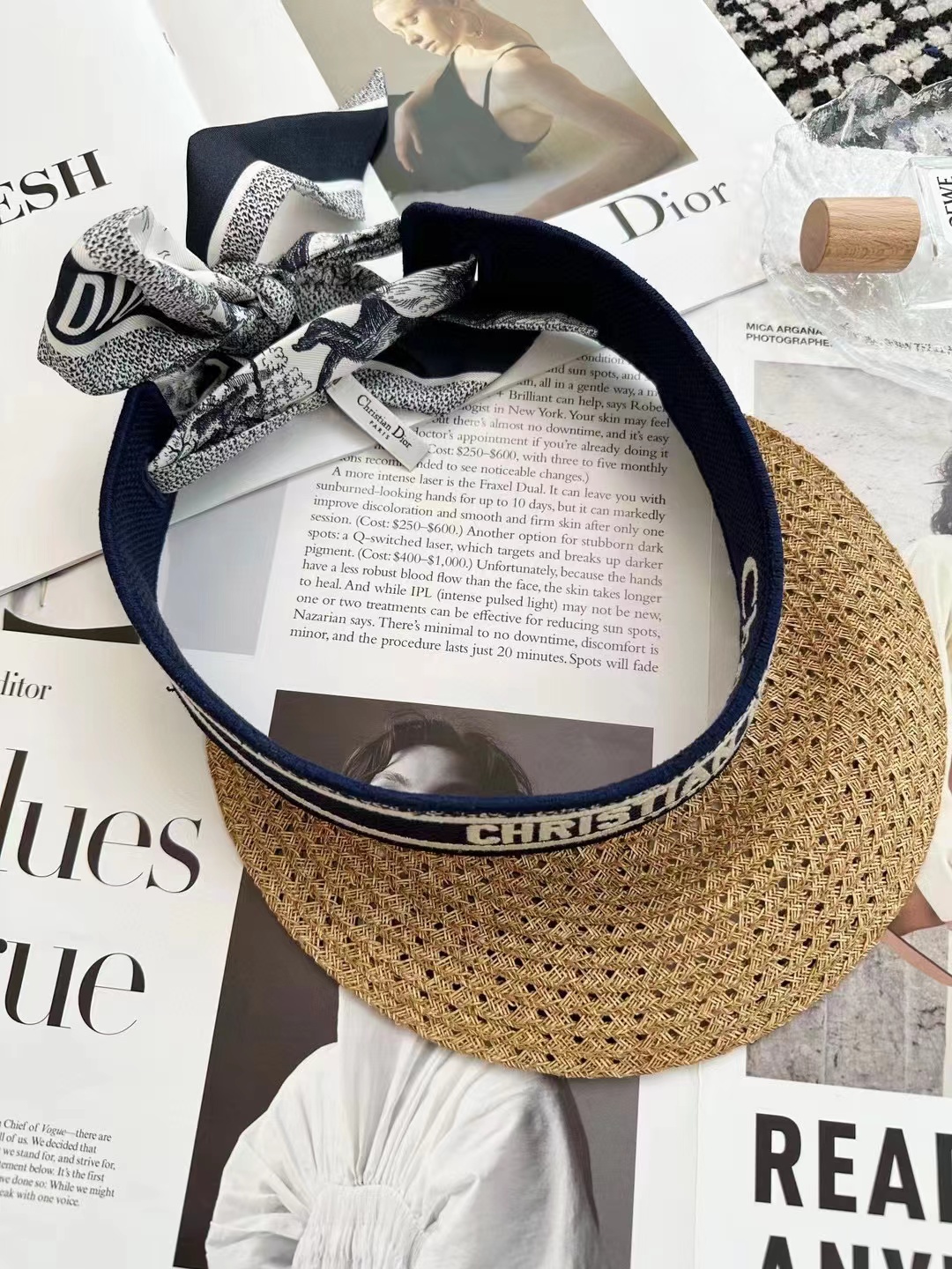 2024夏季新品 D家草編空頂帽 飄帶絲巾調節頭圍