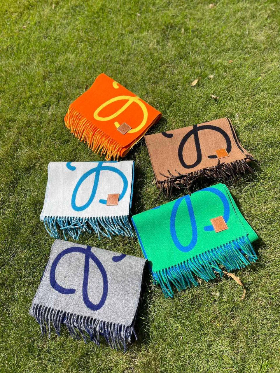 2022秋冬新品 L家塗鴉提花字母雙面圍巾 男女同款 配色超美
