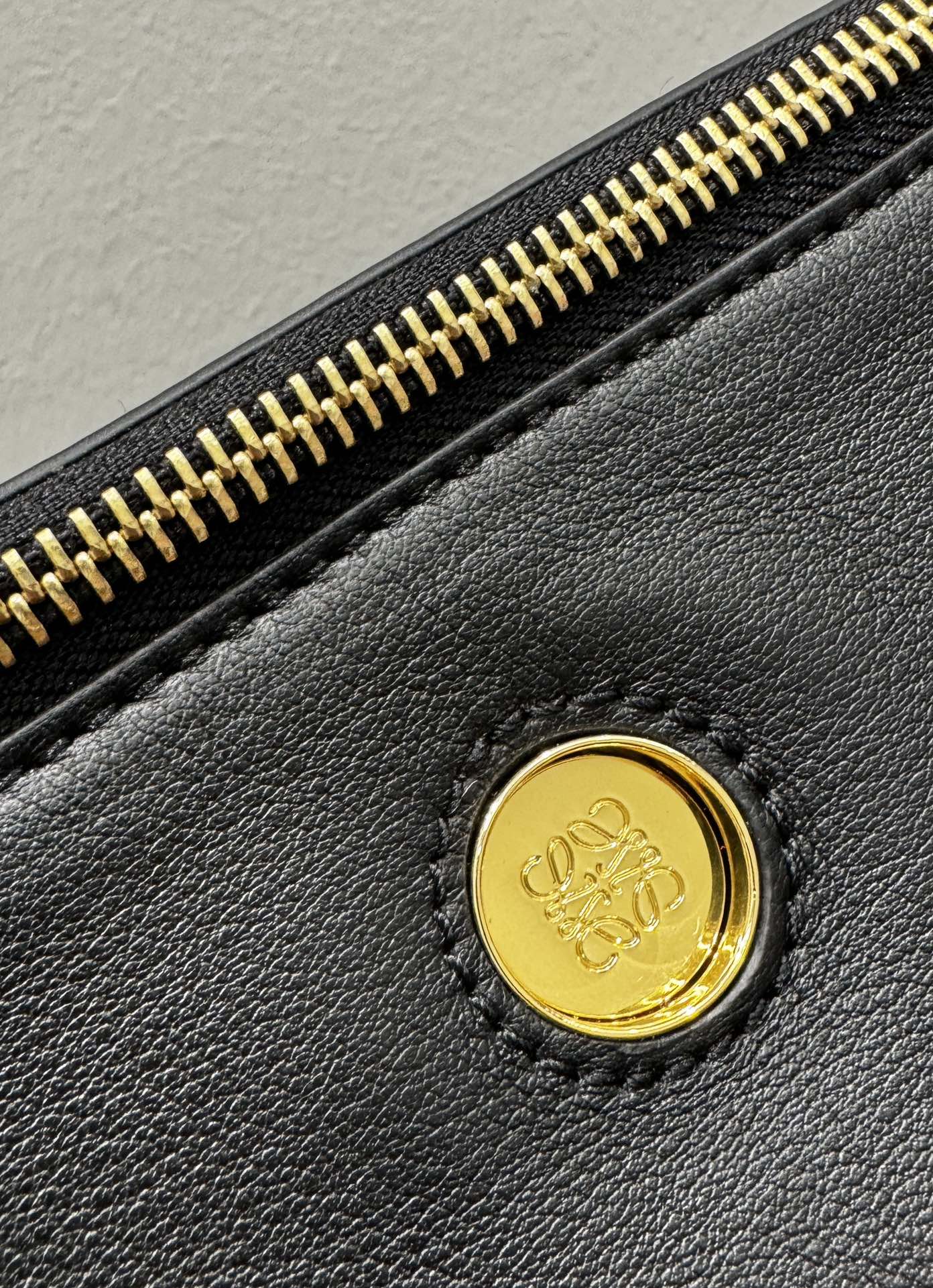 開合處特別採用品牌專屬的金色 Anagram Pebble 磁吸扣,造型就像一顆精緻小巧的金屬雕塑,吸力恰到好處,開關時發出的「咔噠」聲十分療癒。