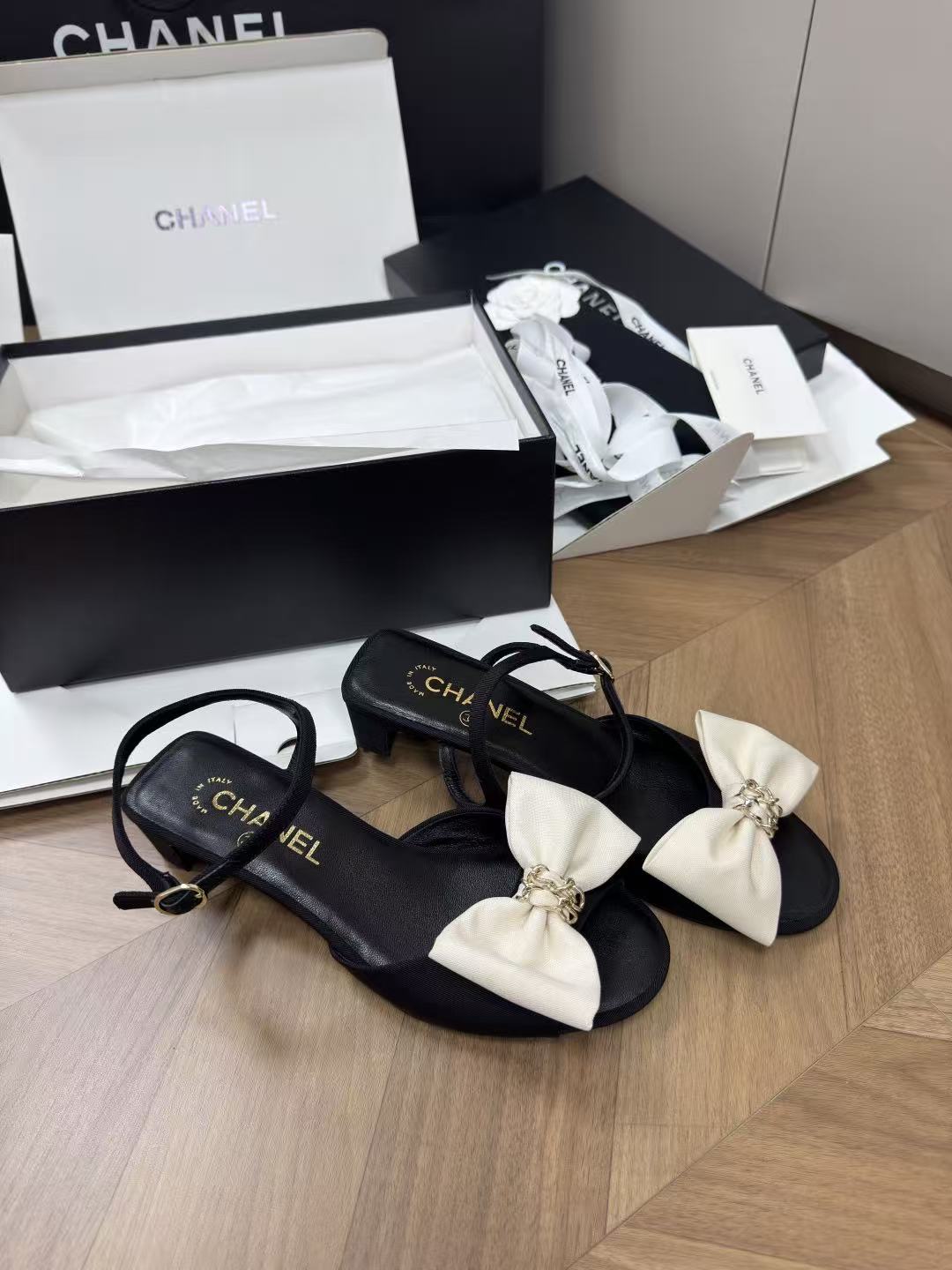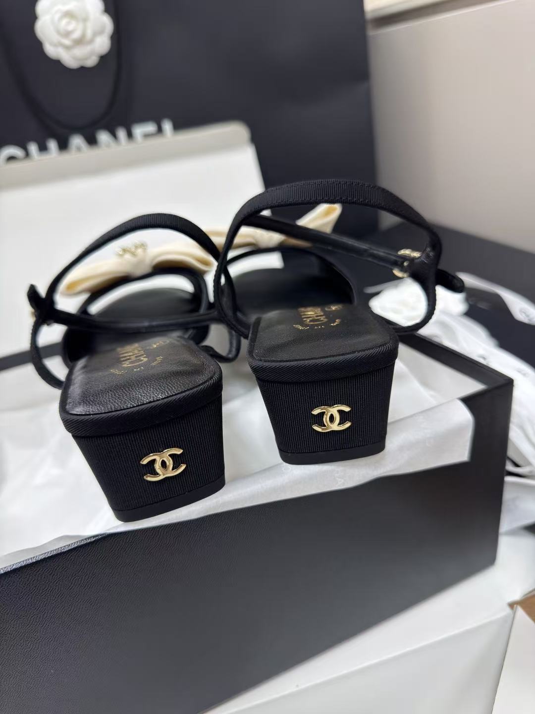 2026早春新品 C家 緞面大蝴蝶結低跟涼鞋