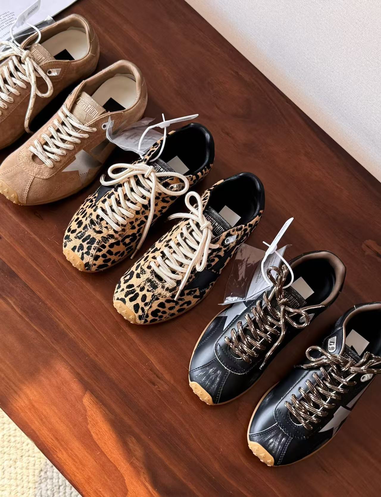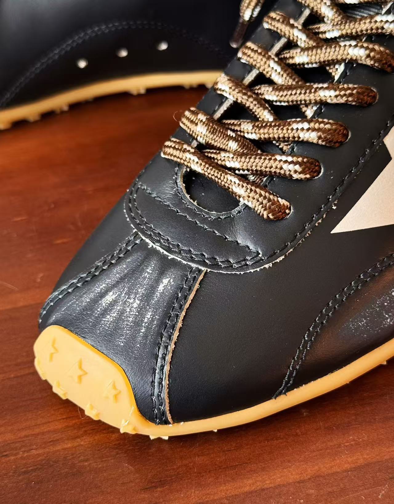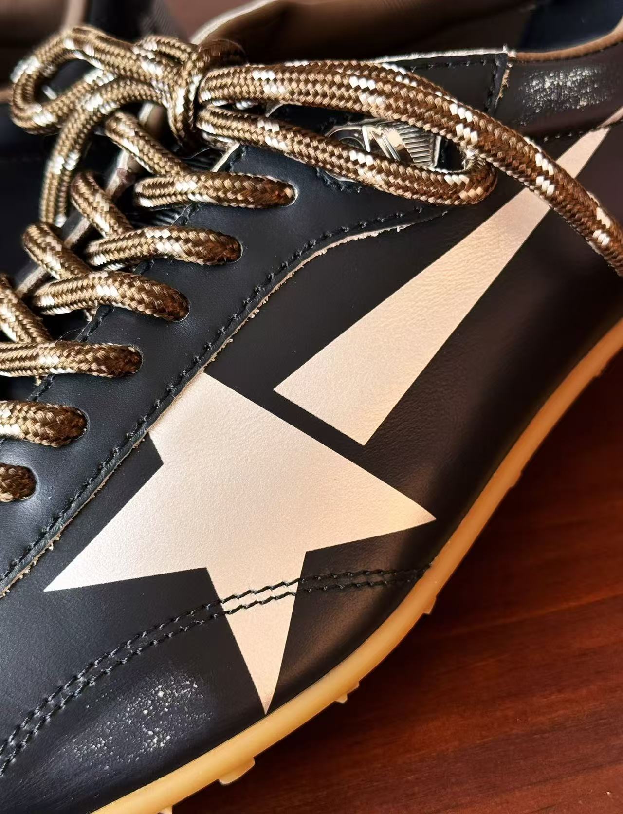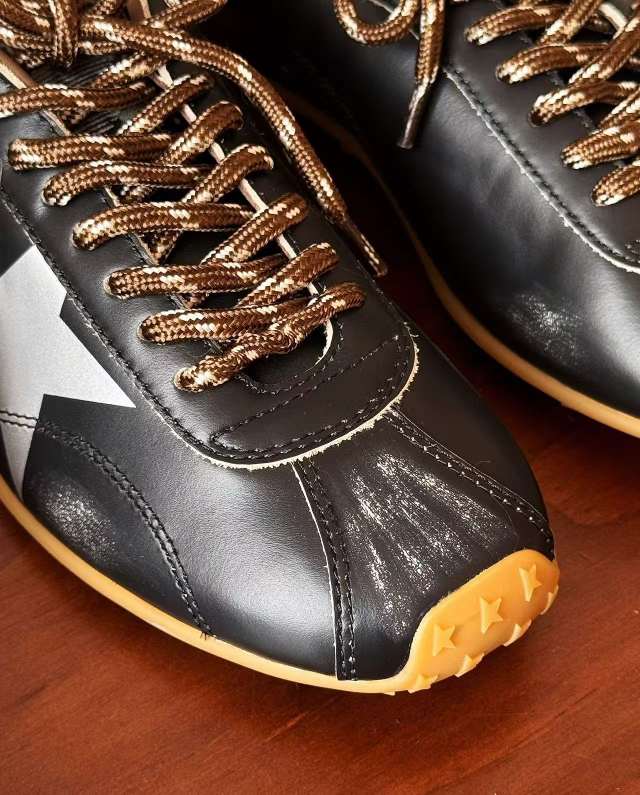 最讓人尖叫的當然是那「手工做舊靈魂」+「雙色混搭鞋帶」!做舊不是亂刷,而是層層疊疊上色、打磨、刷白,邊緣自然到像你真的穿了十年;鞋帶還是高級雙色混搭版,隨手換邊綁就兩種風格,玩不膩的細節控天堂~