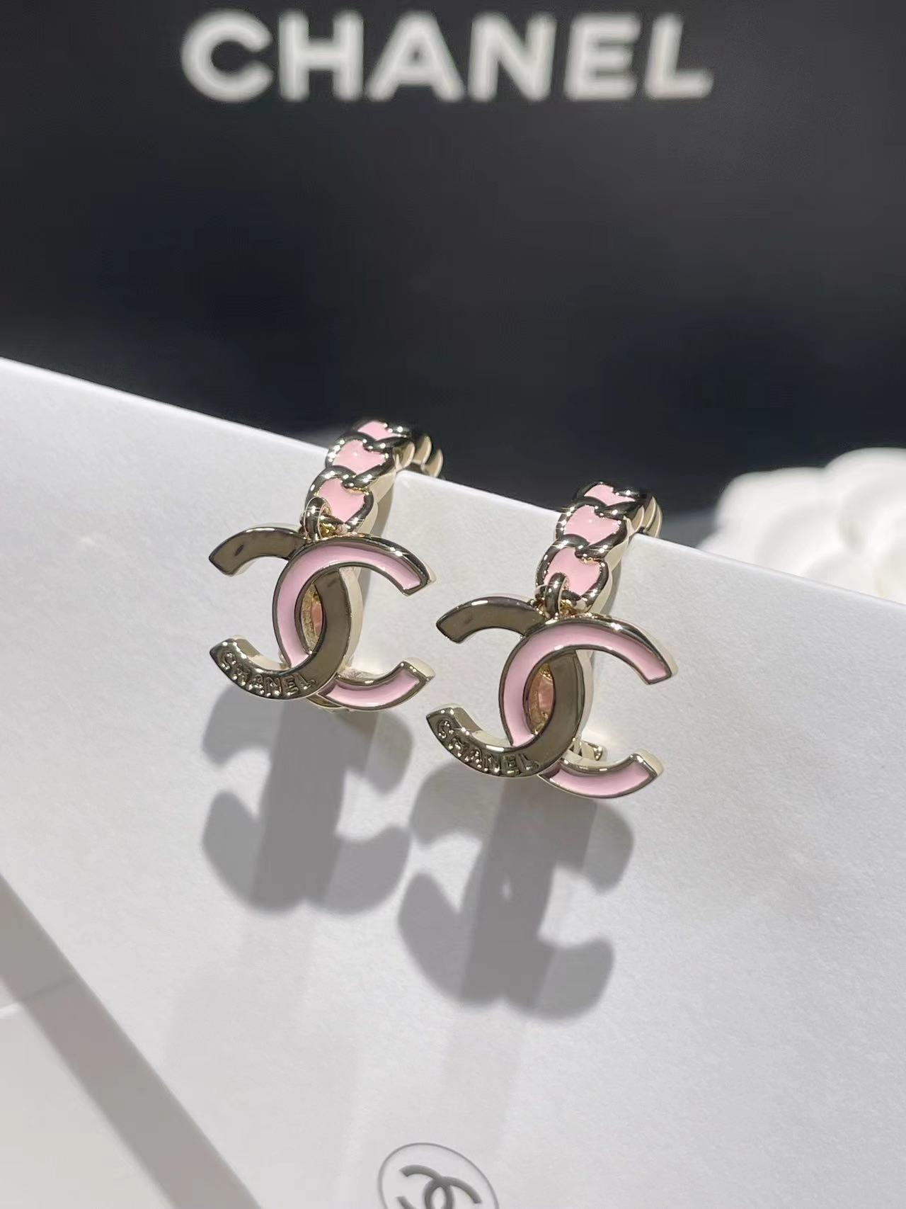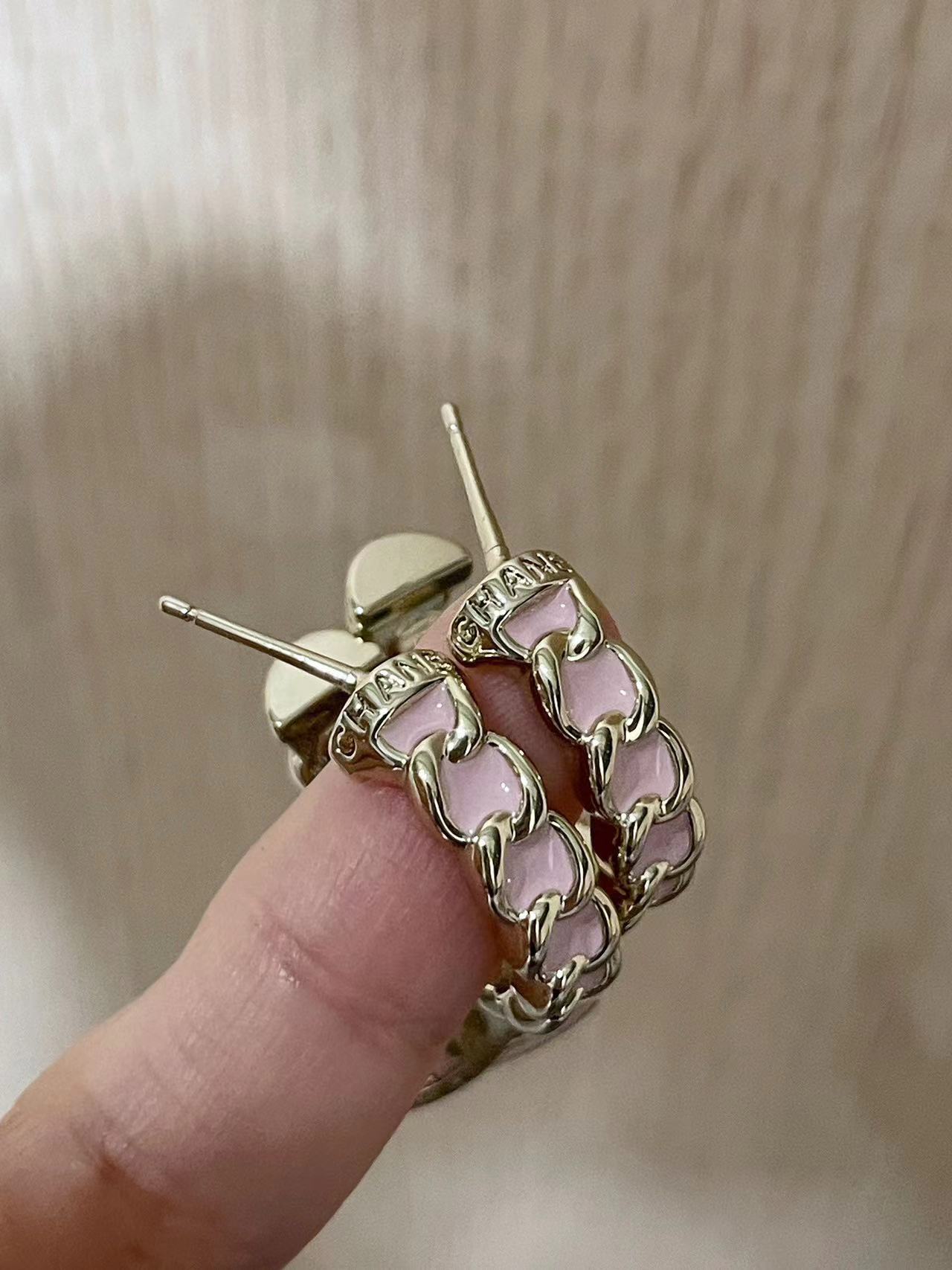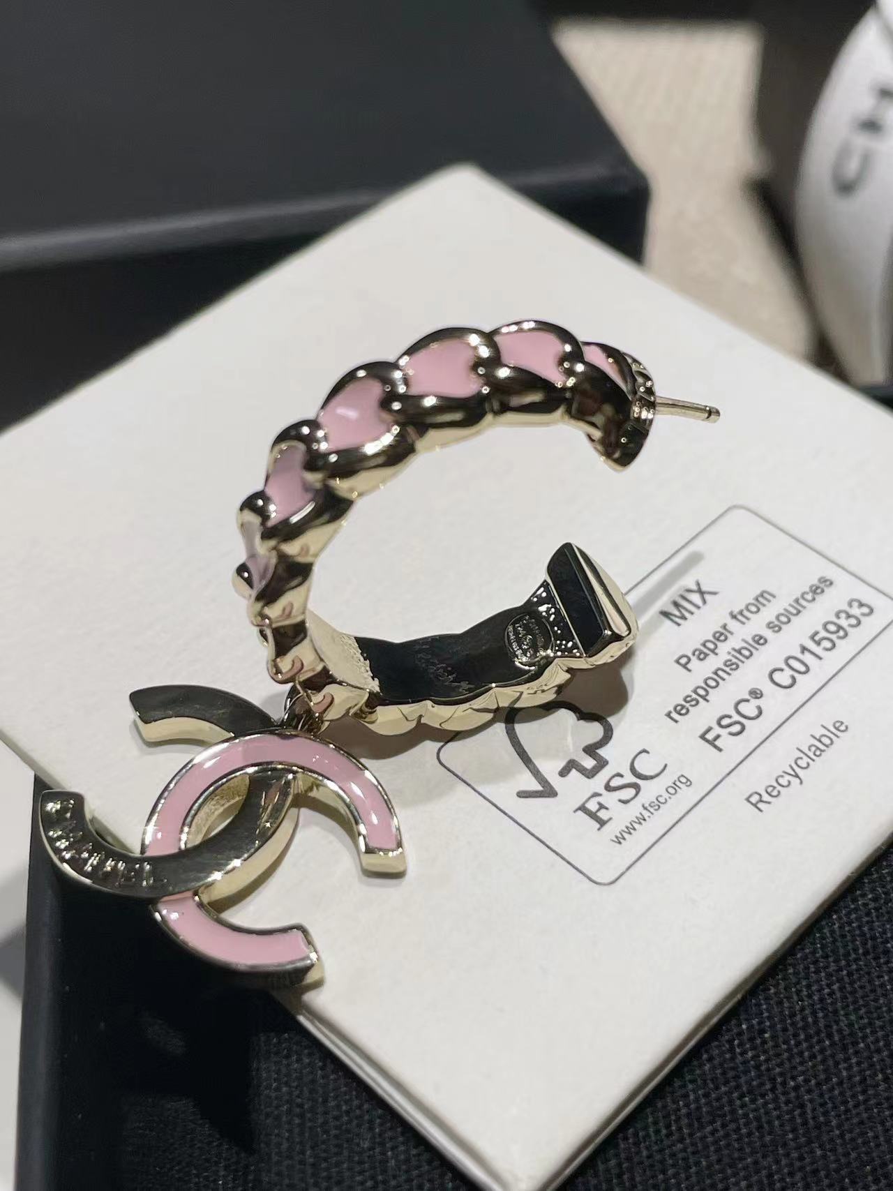 2024早秋新品 C家粉鏈圈吊雙C耳環 1780