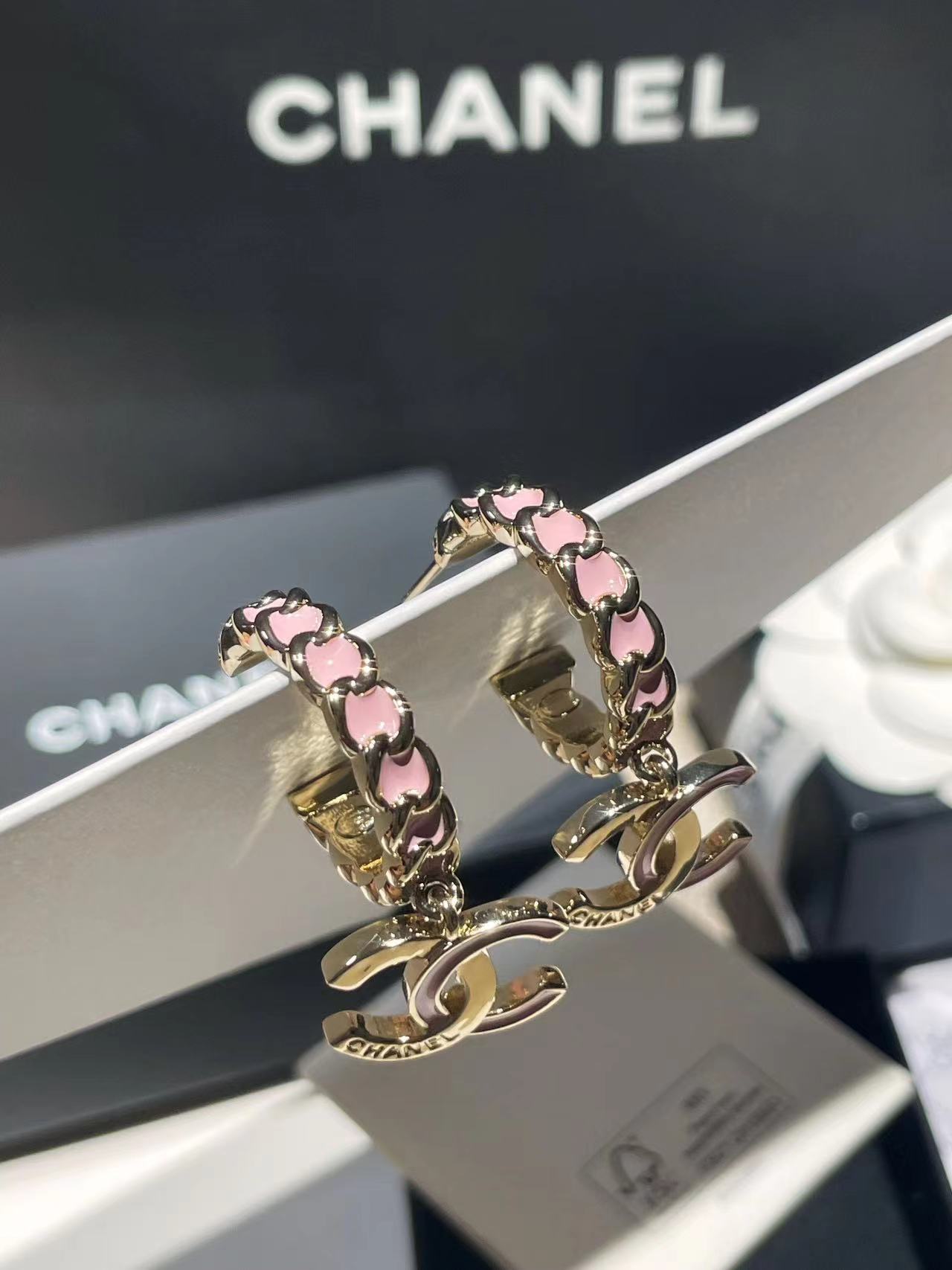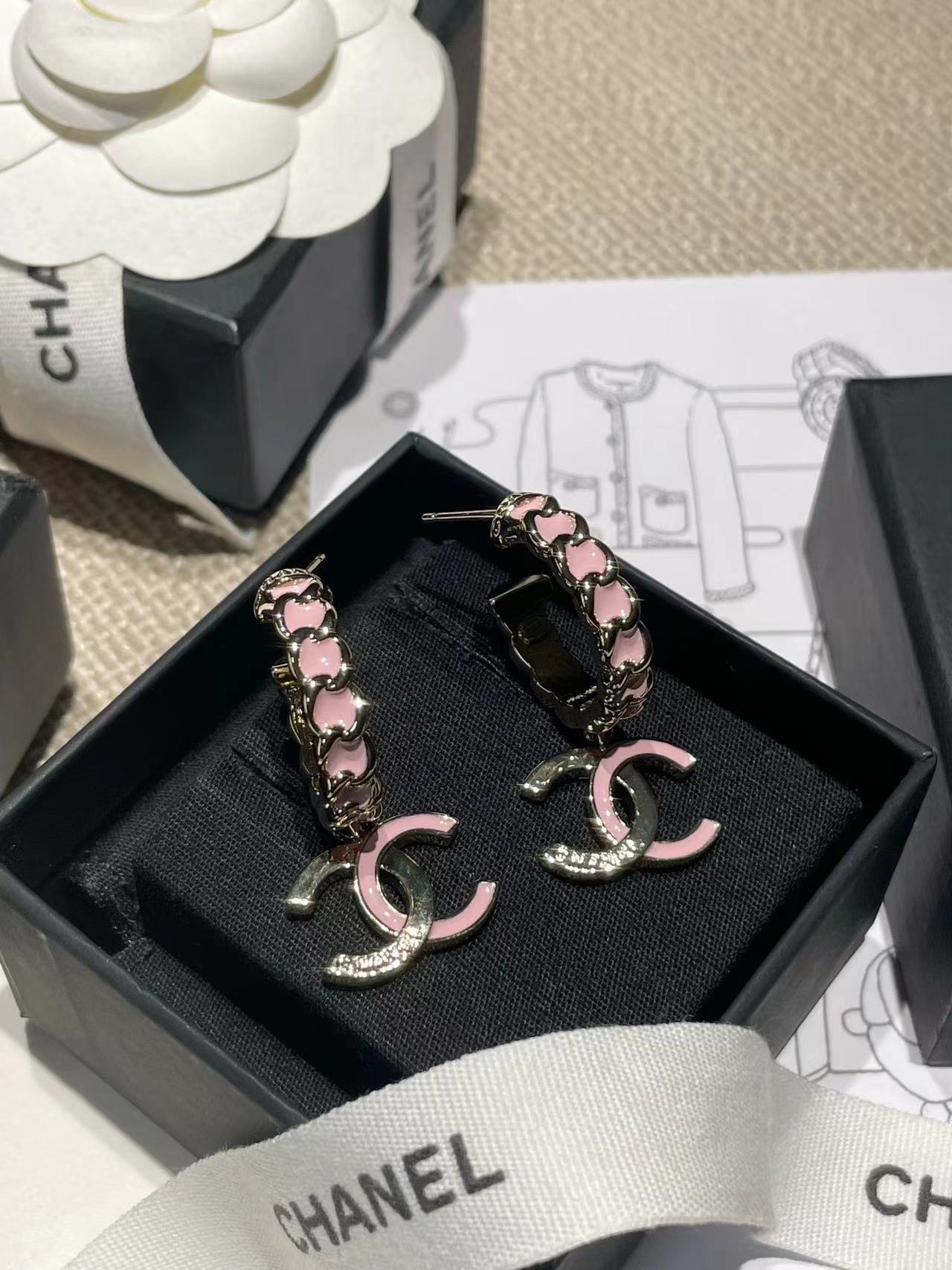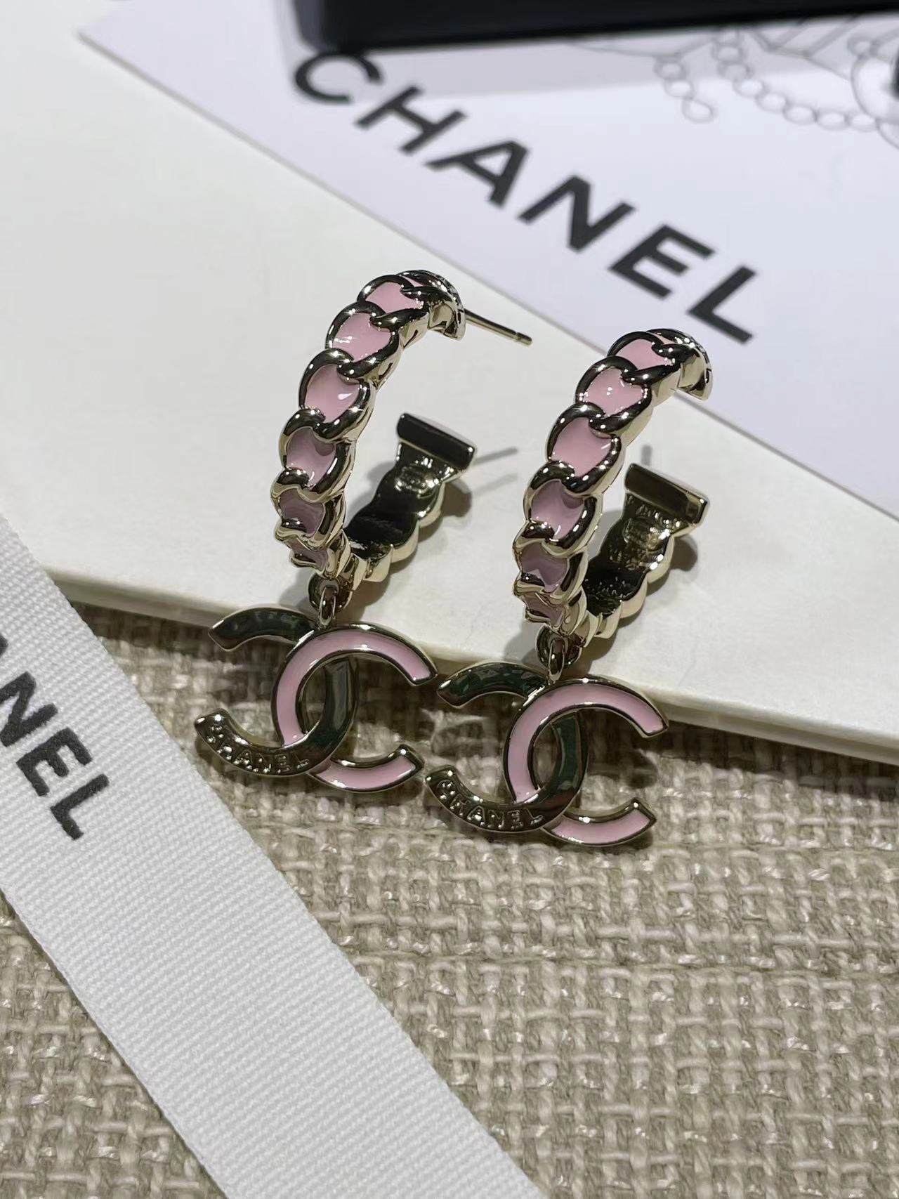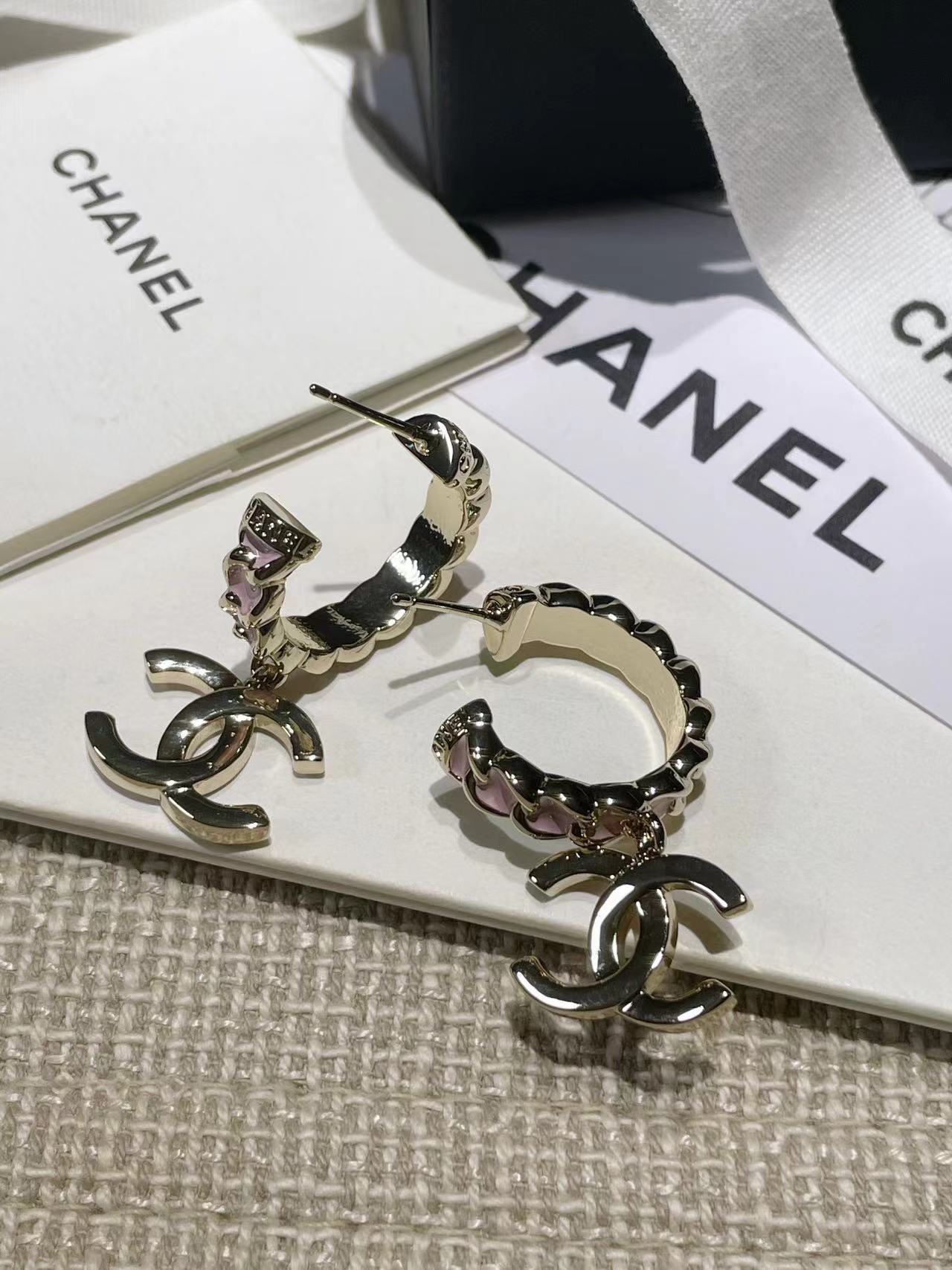 2024早秋新品 C家粉鏈圈吊雙C耳環 1780