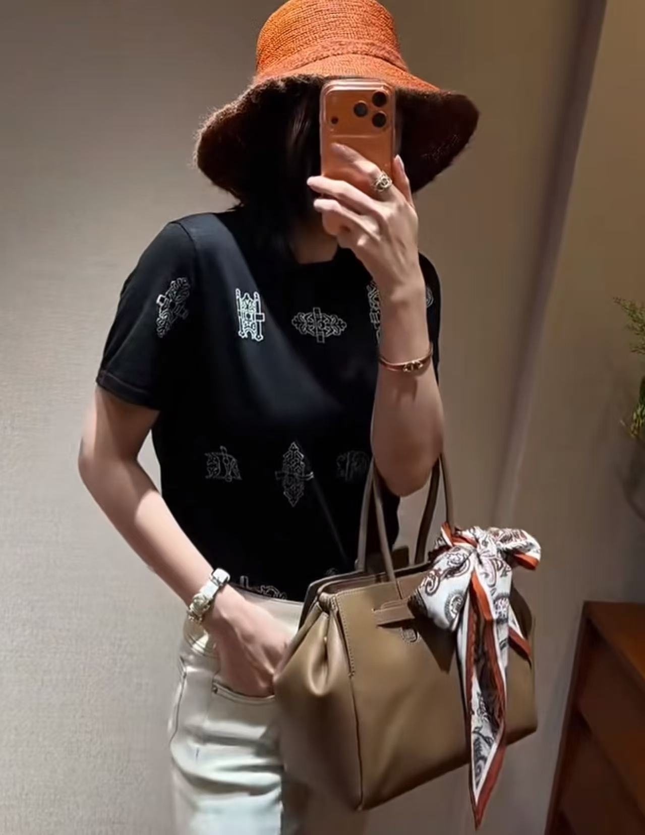 簡約的圓領設計 搭配充滿現代感的刺繡紋理,展現出一種內斂且極致高級的輕奢質感,是那種不需要任何標籤就能贏很大的時髦神衣。