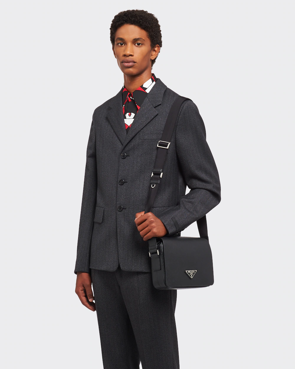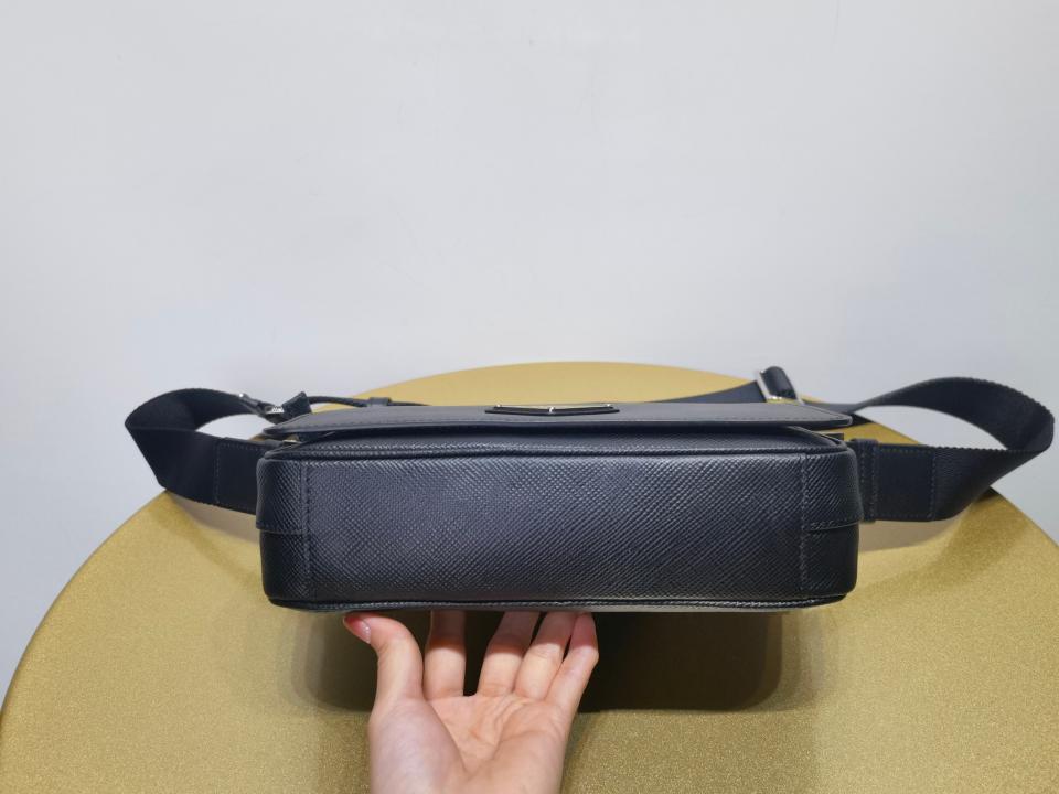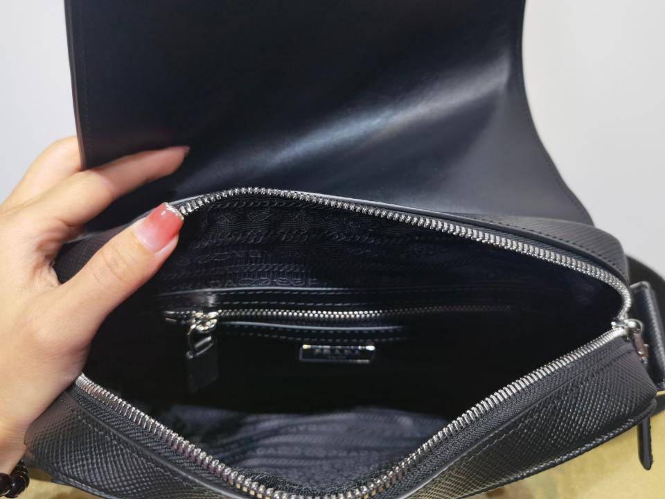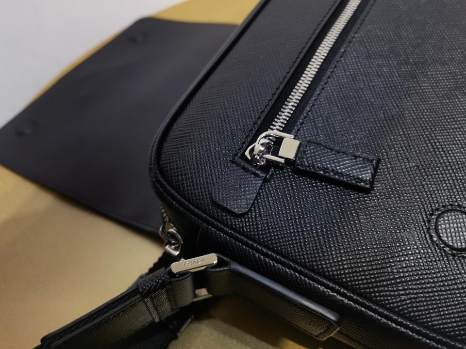 尺寸大小非常適合男士日常需求,不再煩惱包包太大,這款單肩包演繹精美的結構式廓形.並採用粗十字紋牛皮與羊皮的 搭配,正面三角形琺瑯徽標,內部徽標銘牌