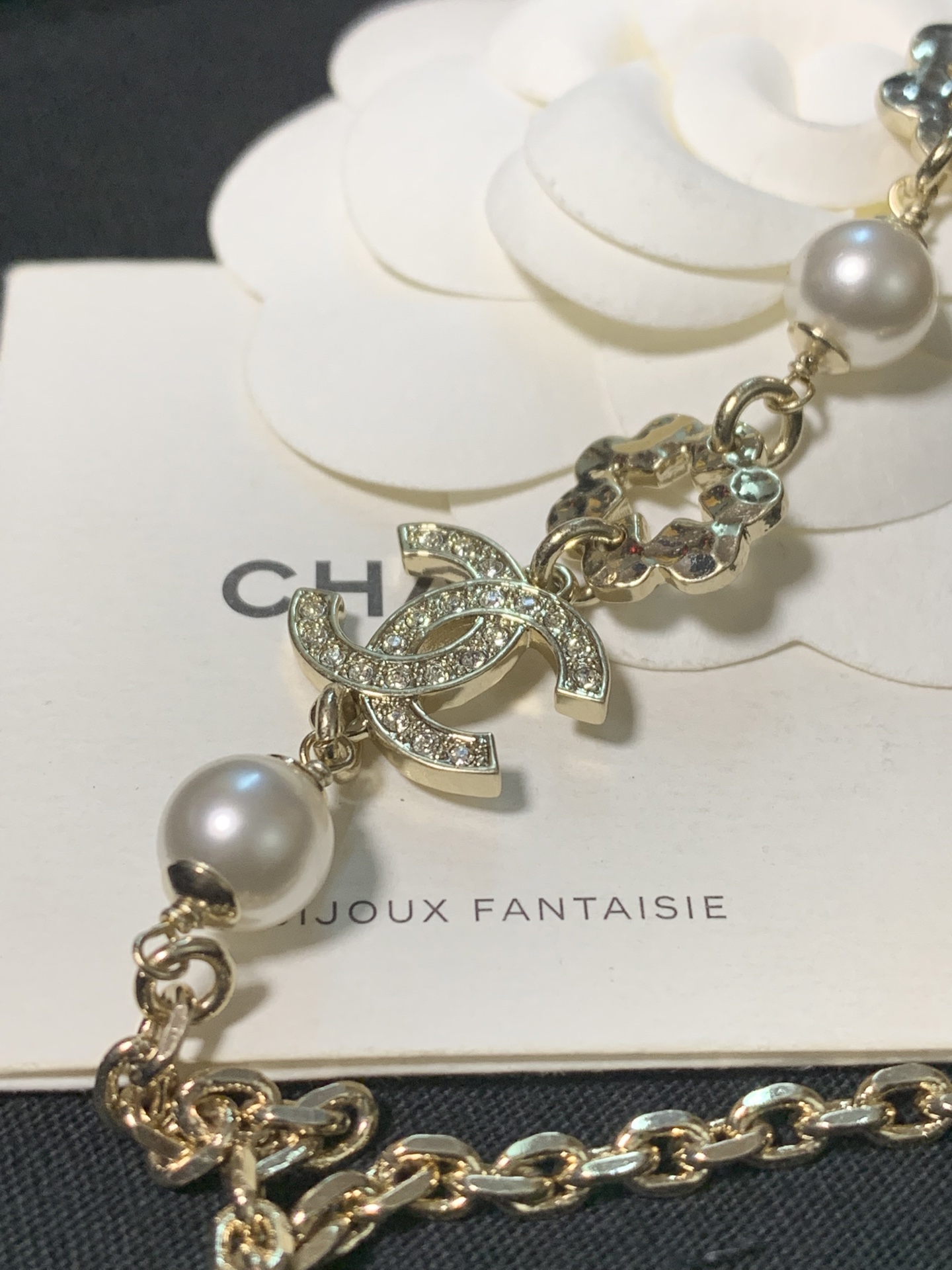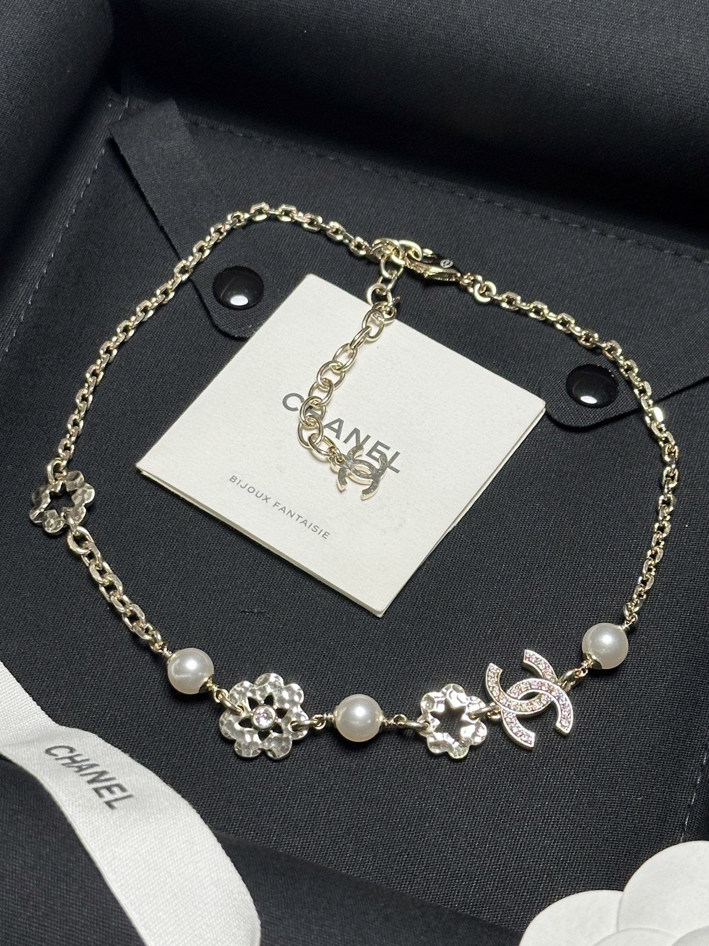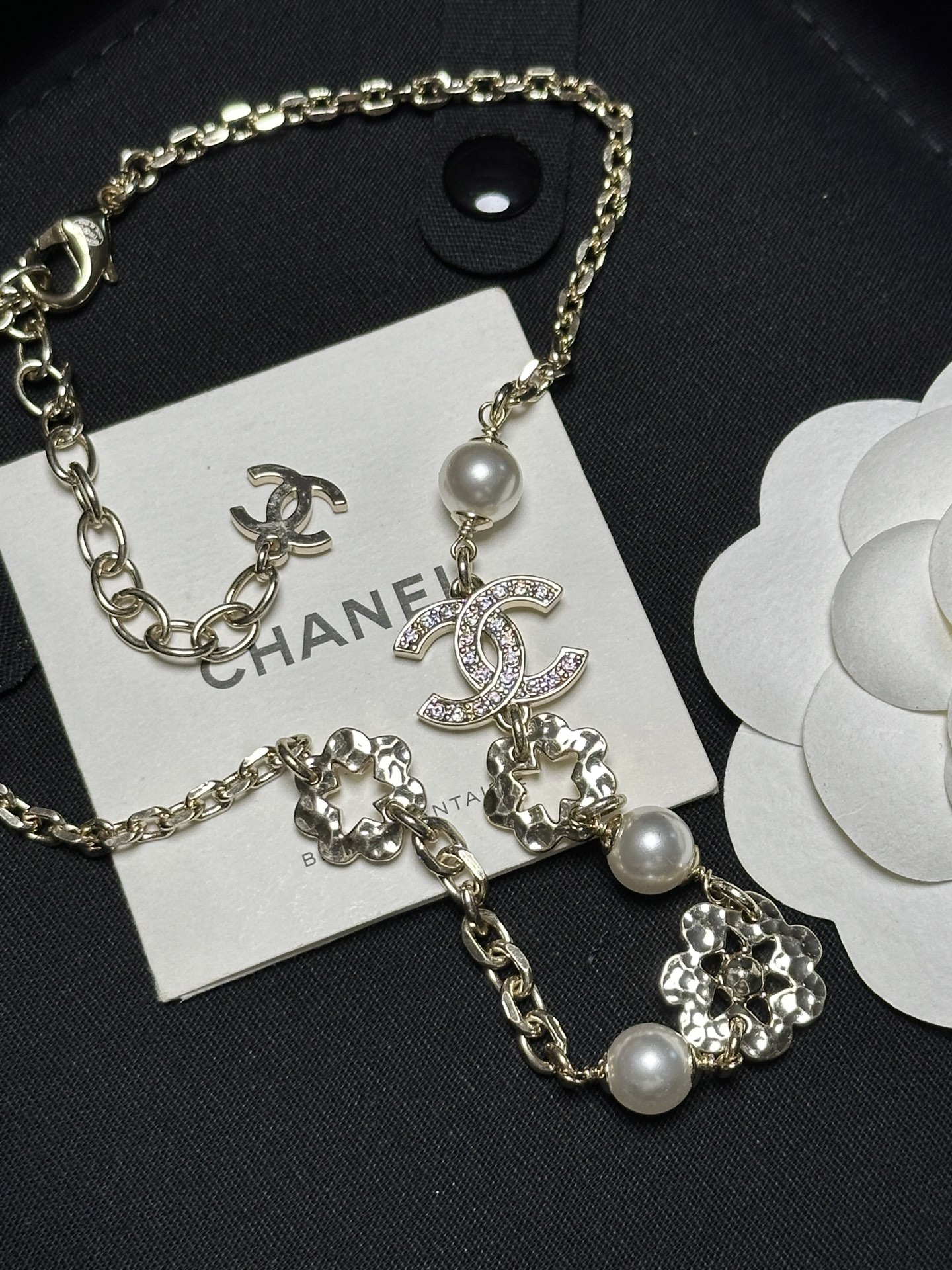 真的太美了!這條項鍊完美結合了滿鑽雙C、珍珠與鏤空小花設計,浪漫又精緻。戴上後不僅自帶高級氛圍感,還多了一點甜美可愛的氣息,無論是日常穿搭還是特別場合,都能為整體造型加分。