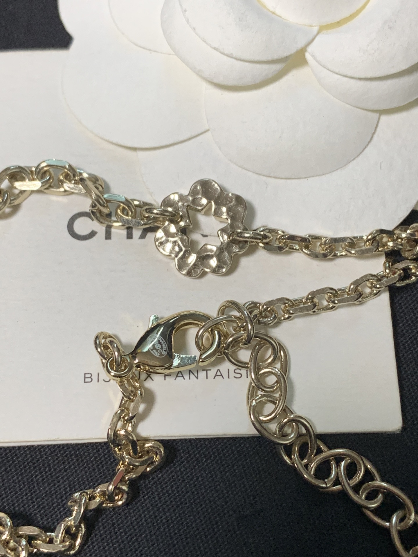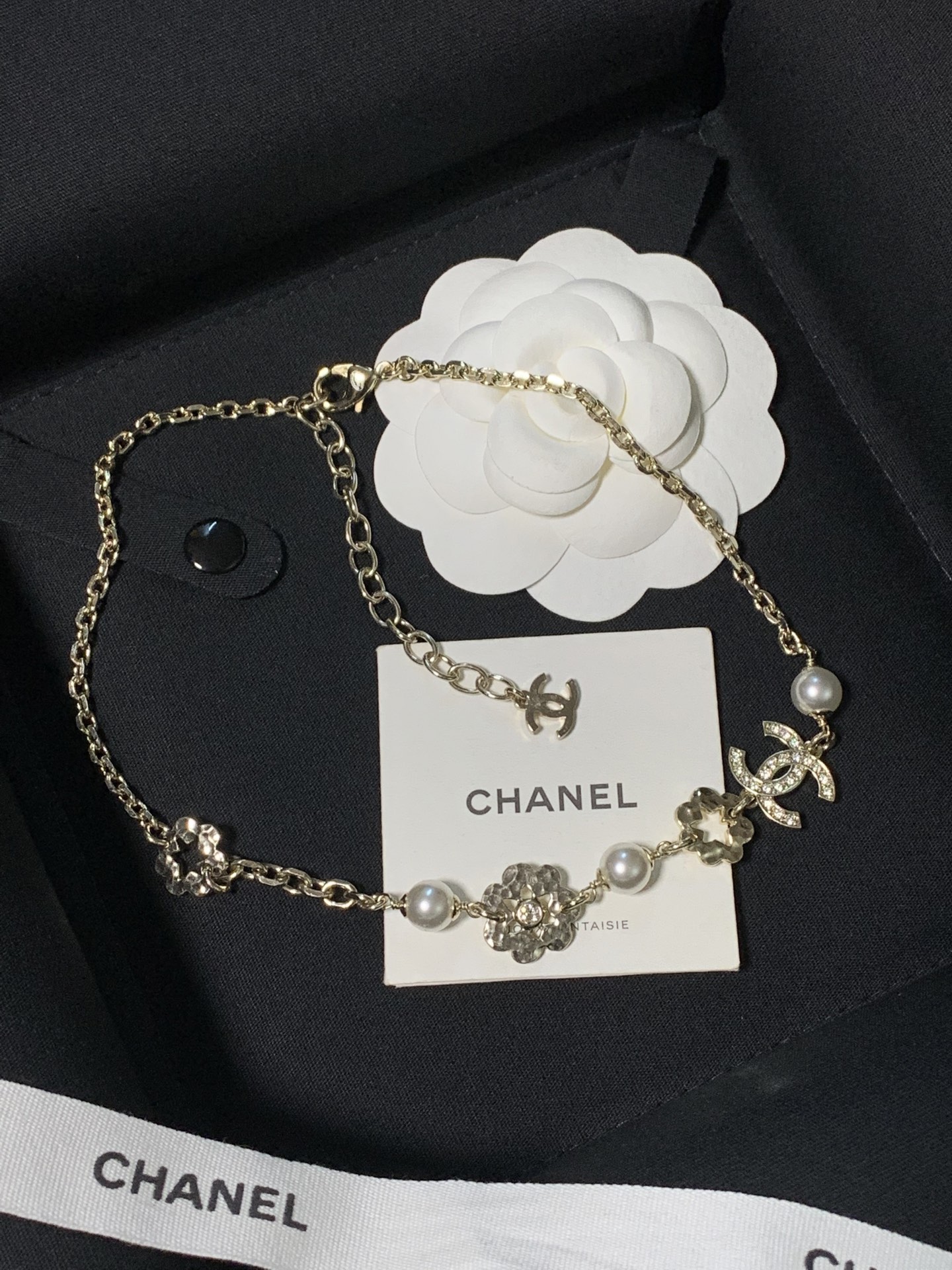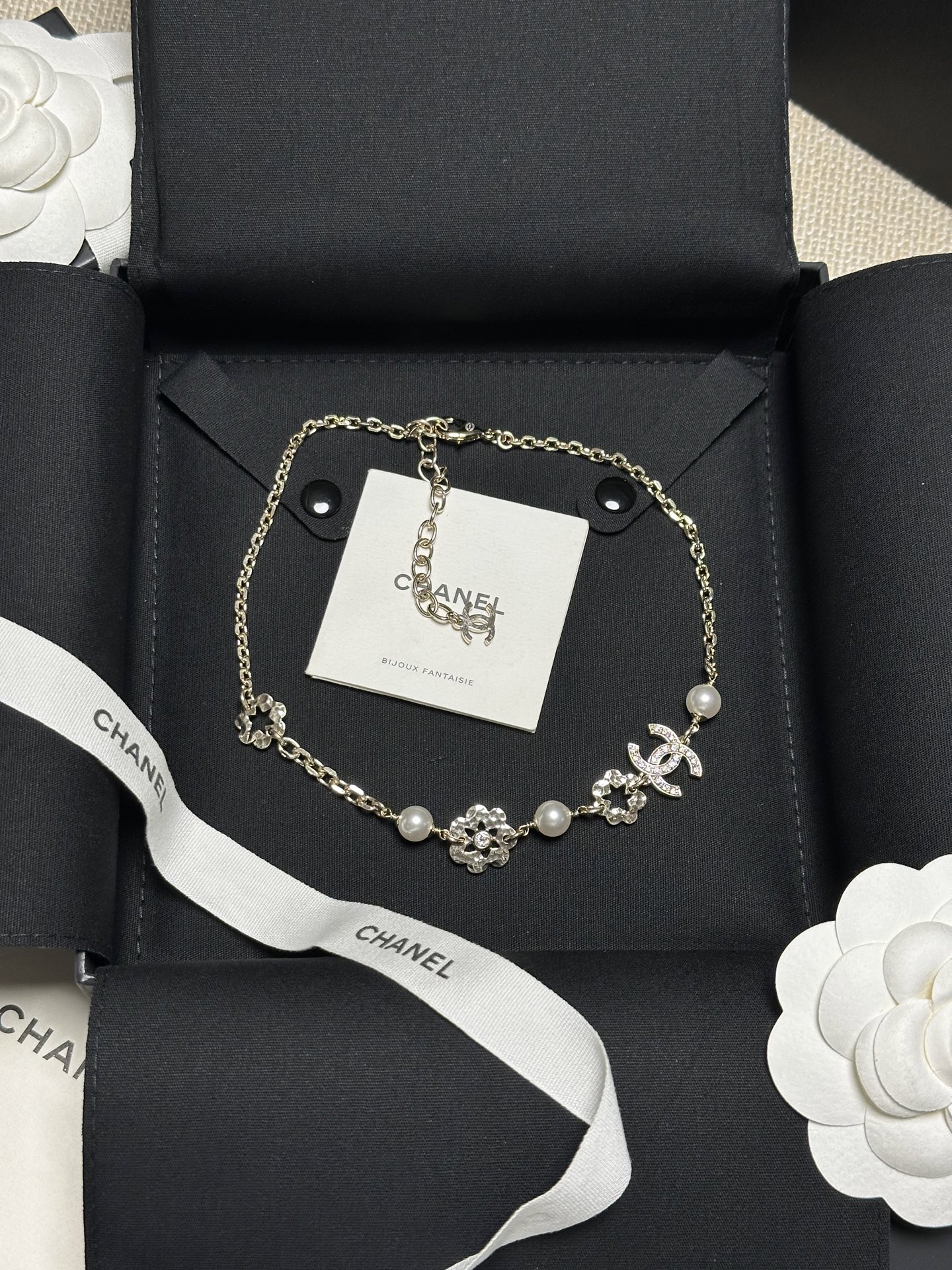 真的太美了!這條項鍊完美結合了滿鑽雙C、珍珠與鏤空小花設計,浪漫又精緻。戴上後不僅自帶高級氛圍感,還多了一點甜美可愛的氣息,無論是日常穿搭還是特別場合,都能為整體造型加分。