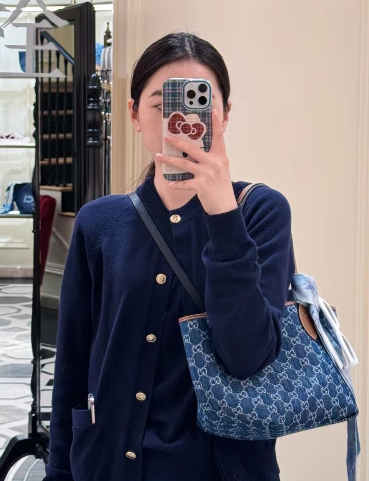 藍色GG牛仔:經典GG monogram織紋,帶有丹寧布特有的自然肌理與耐用度,休閒感與品牌辨識度兼具。
