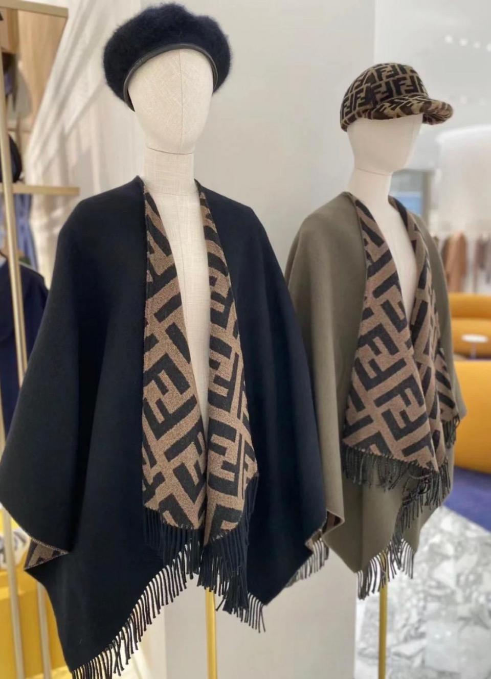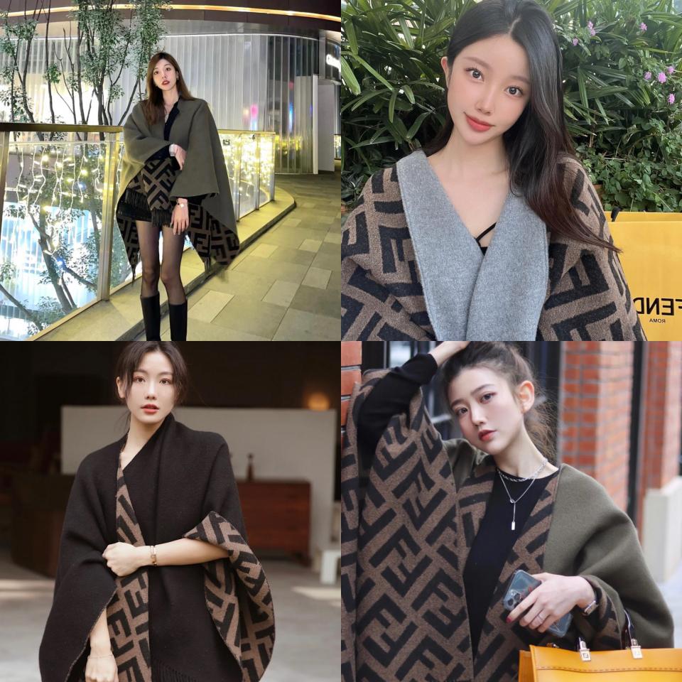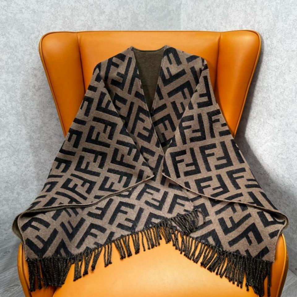 2022秋冬新品 F家經典流蘇雙面斗篷 滿版印製logo 冬天必入單品