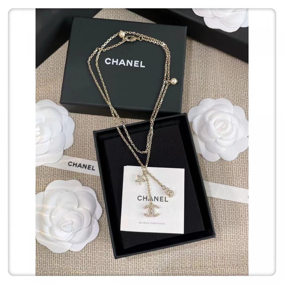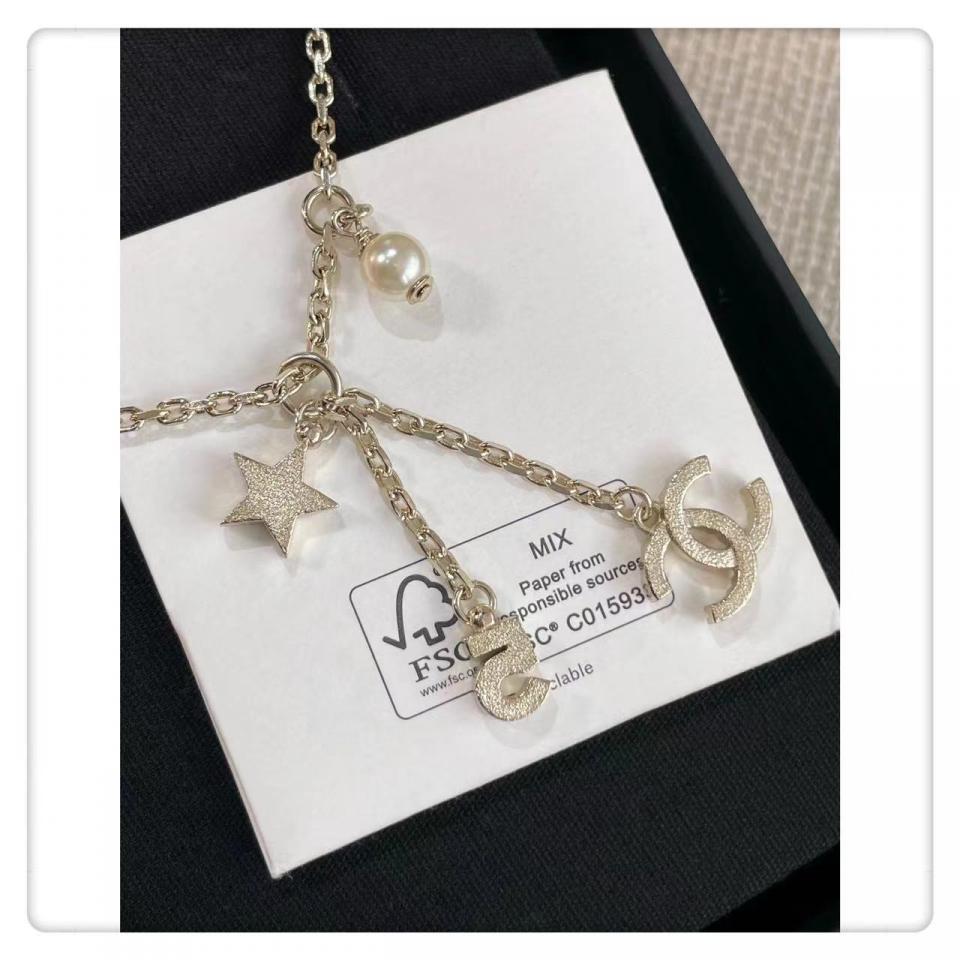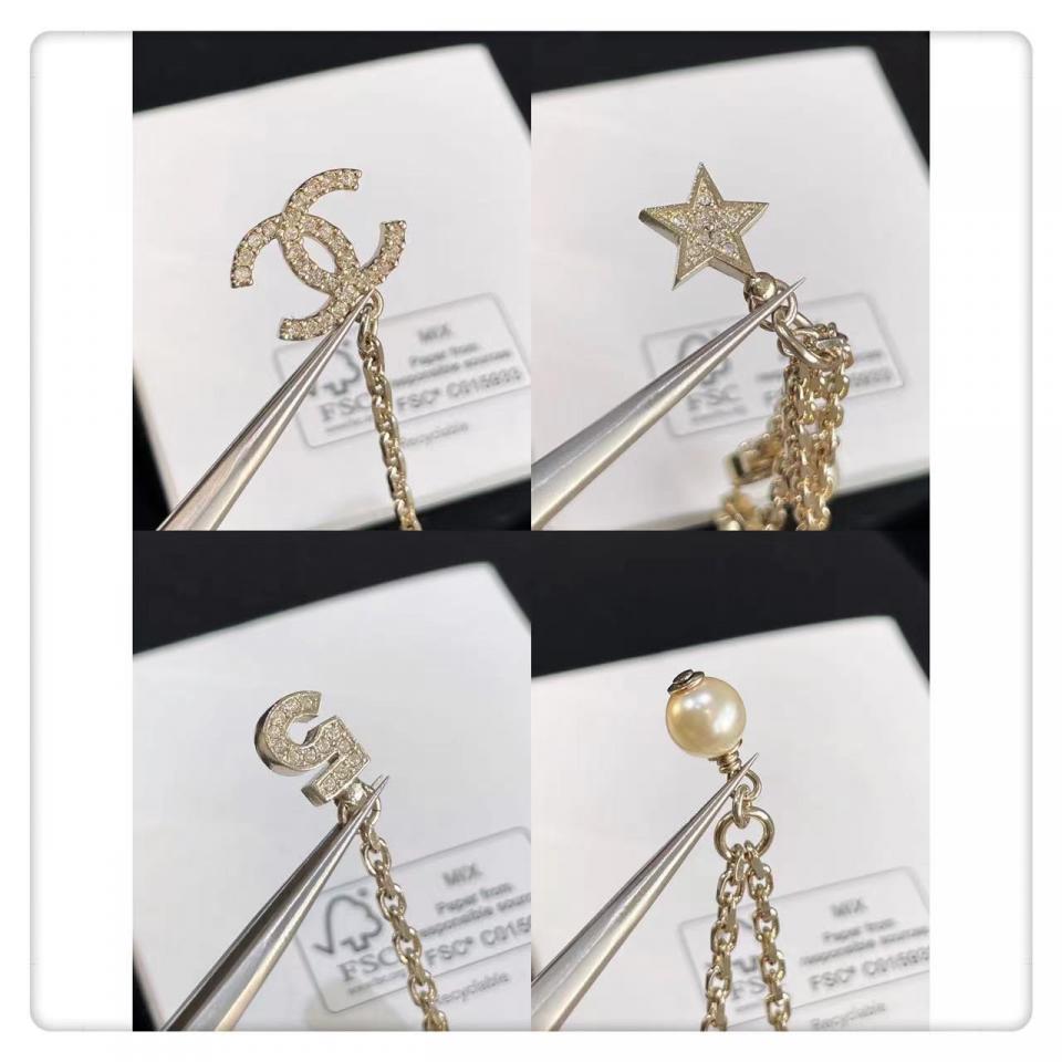 項鍊的長短可以調節,這個鏈條需要定制,可當項鍊也可以當毛衣鏈,長短上身效果非常不一樣的感覺!非常的柔美百搭,經典的雙C logo增添了活潑星星和5字元素,三個吊墜長短錯落的設計非常nice