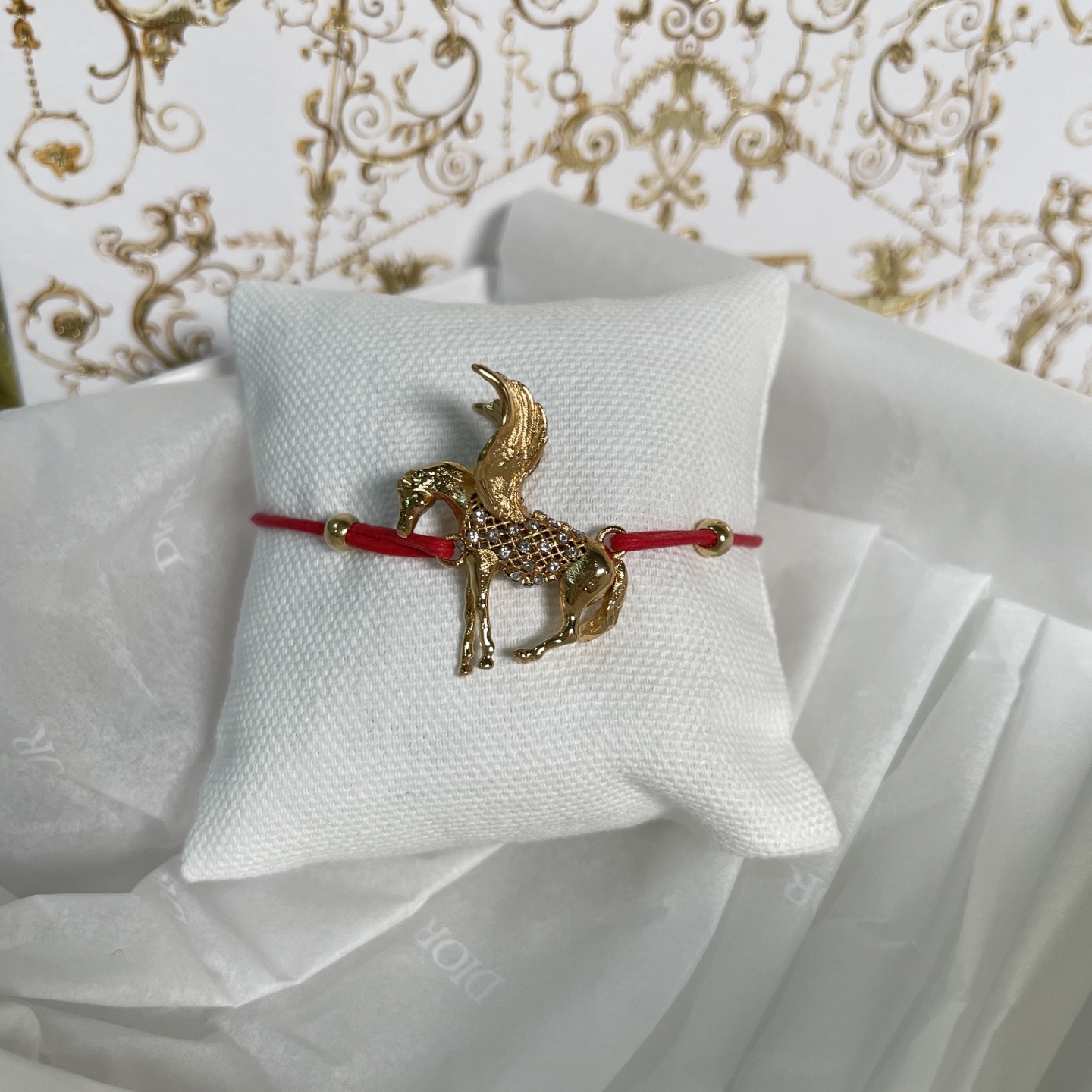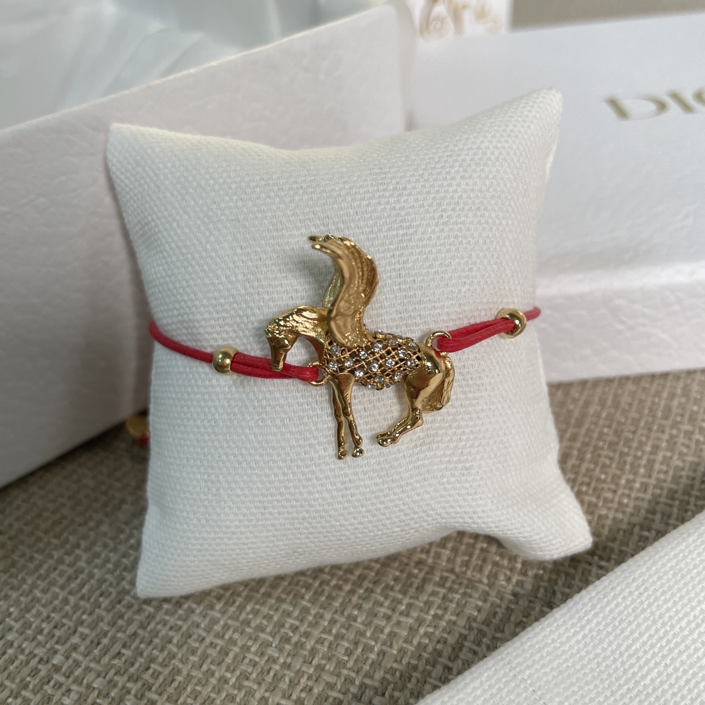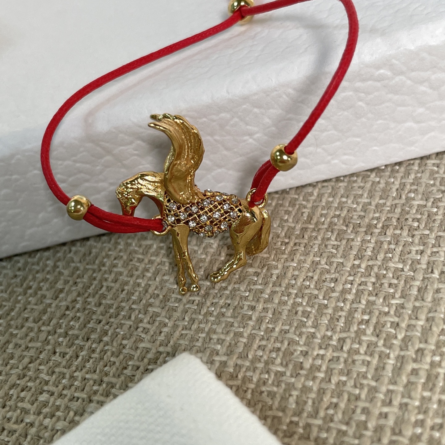 2026早春新品 D家 馬年限定鏤空金飛馬紅繩手鍊