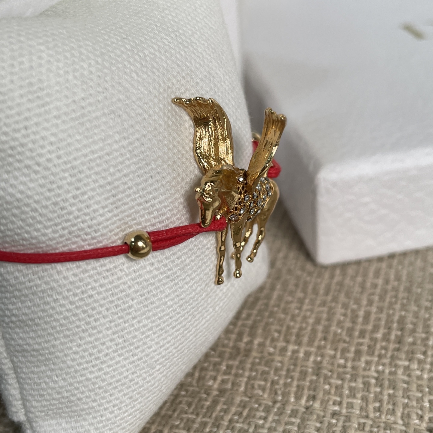 紅繩本身代表平安與守護,搭配精緻金色飛馬與細緻鑽飾點綴,不浮誇卻非常有存在感,日常佩戴也完全不突兀。