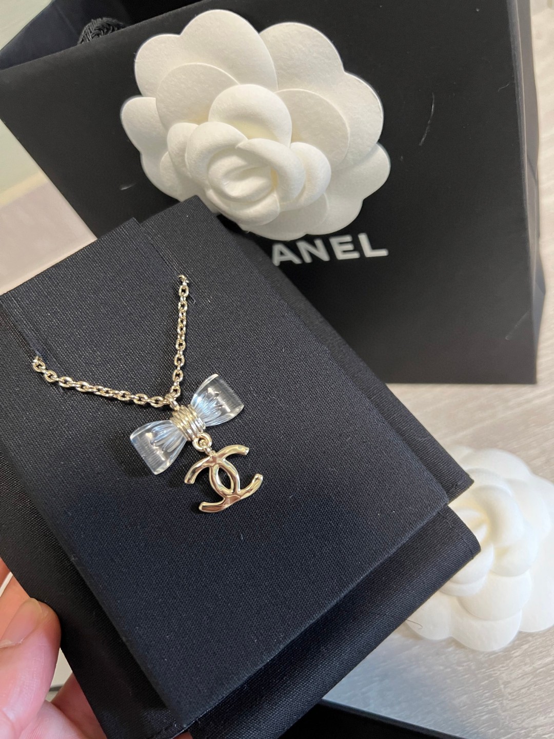2025早春新品 C家 透明蝴蝶結吊C項鍊