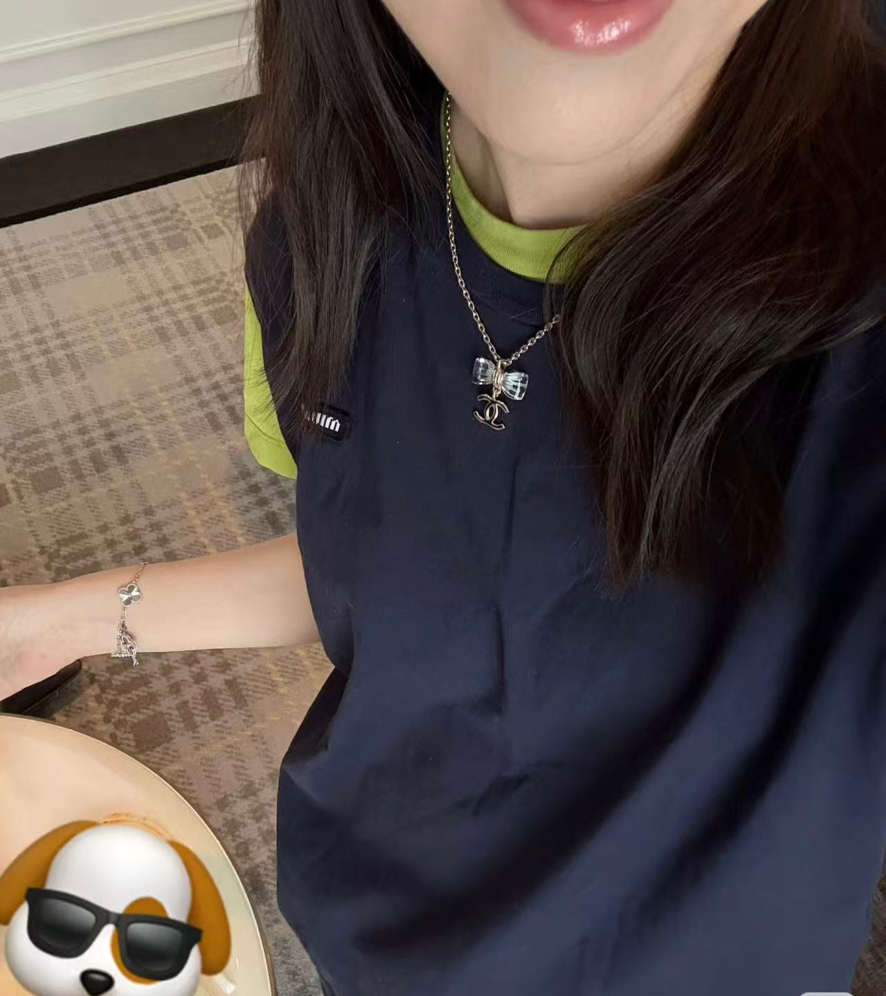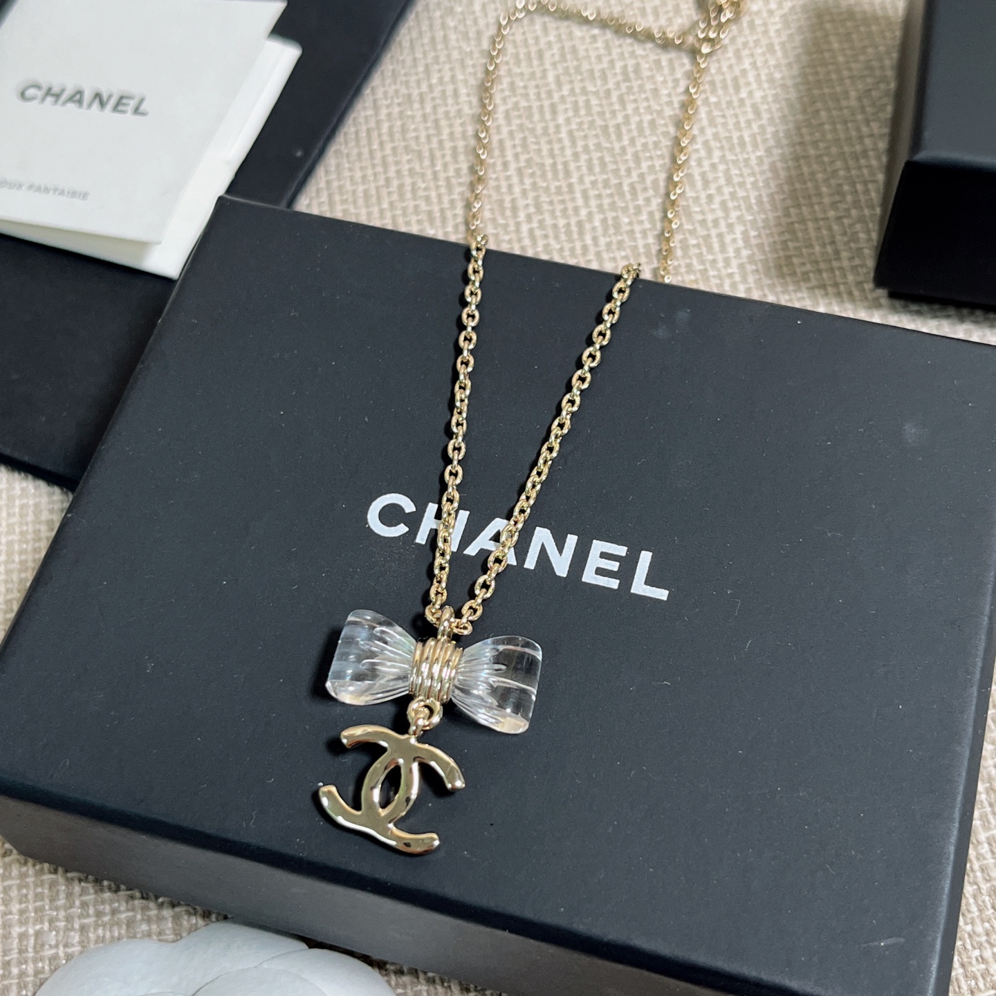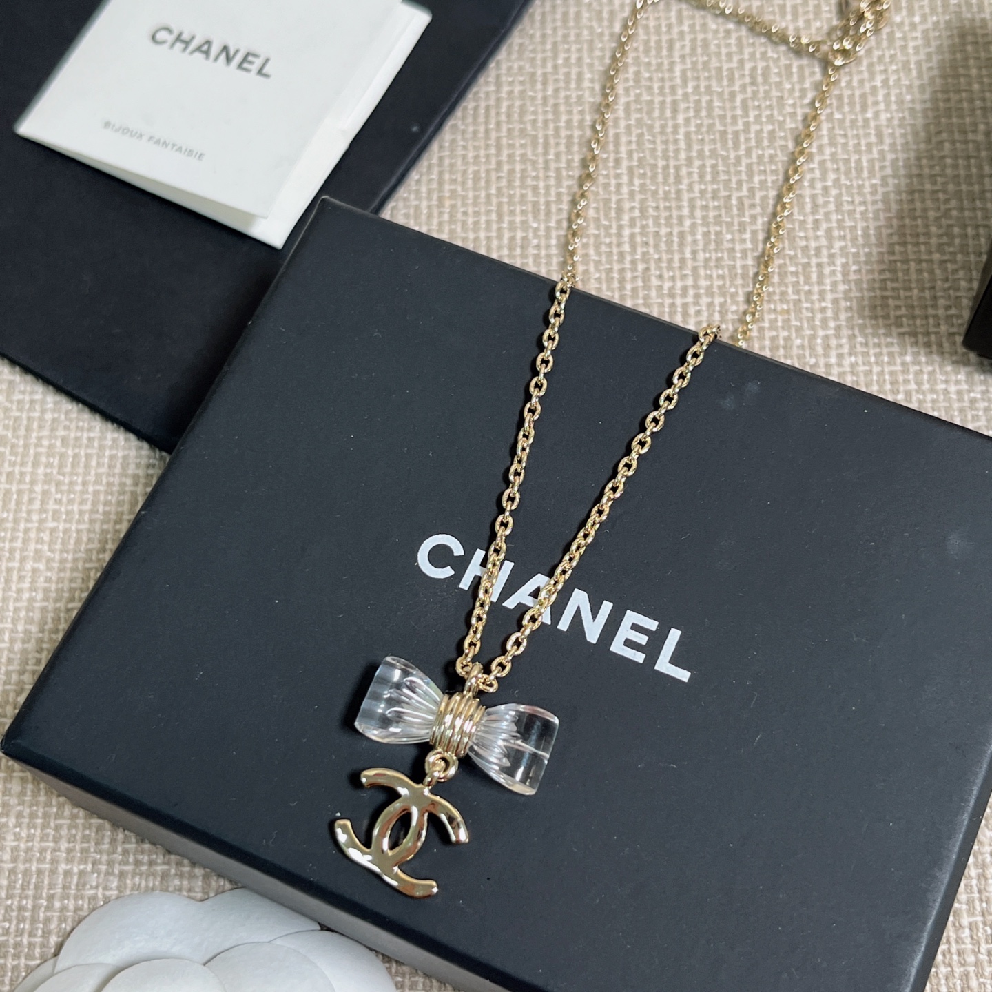 《尺寸規格》項鍊長度約38cm(另有延長鏈 6cm)蝴蝶結吊墜寬度約 2.5cm,雙C吊墜寬度約 1.6cm