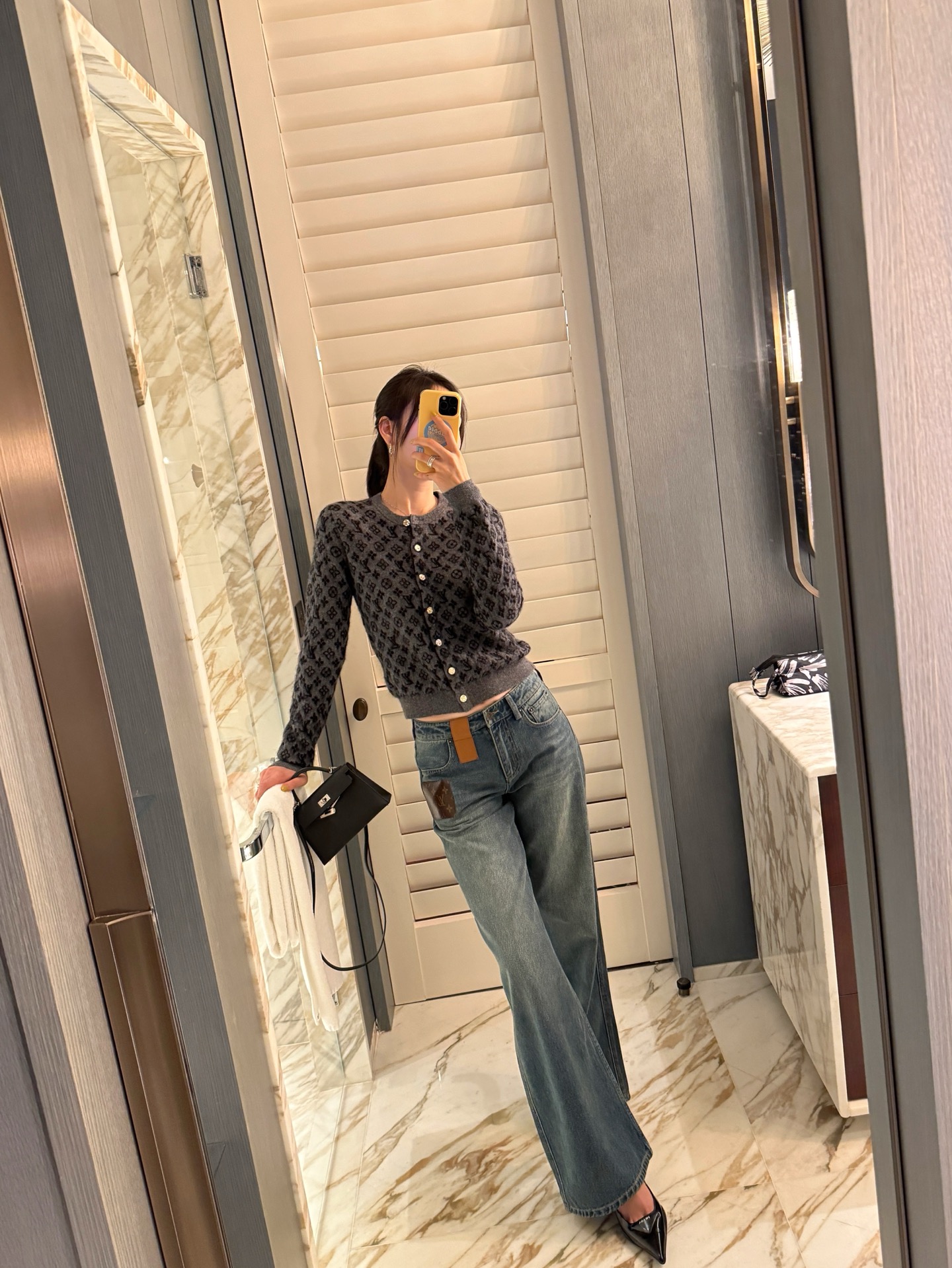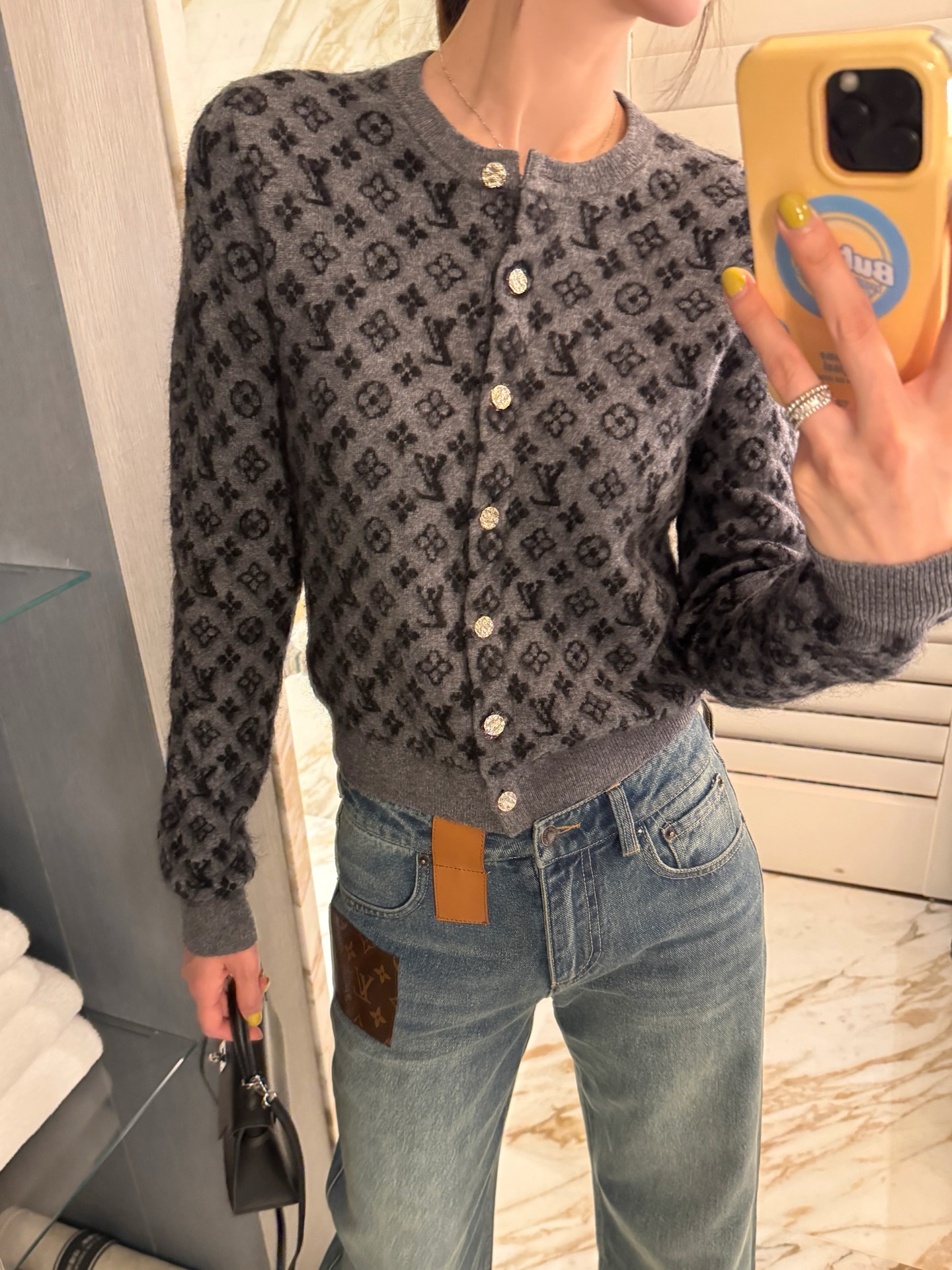 整體設計低調中帶點復古韻味,老花圖案結合細緻的編織紋理,讓整件針織衫不只保暖,更充滿質感。這種「不費力的時髦感」,真的會讓人越看越喜歡。