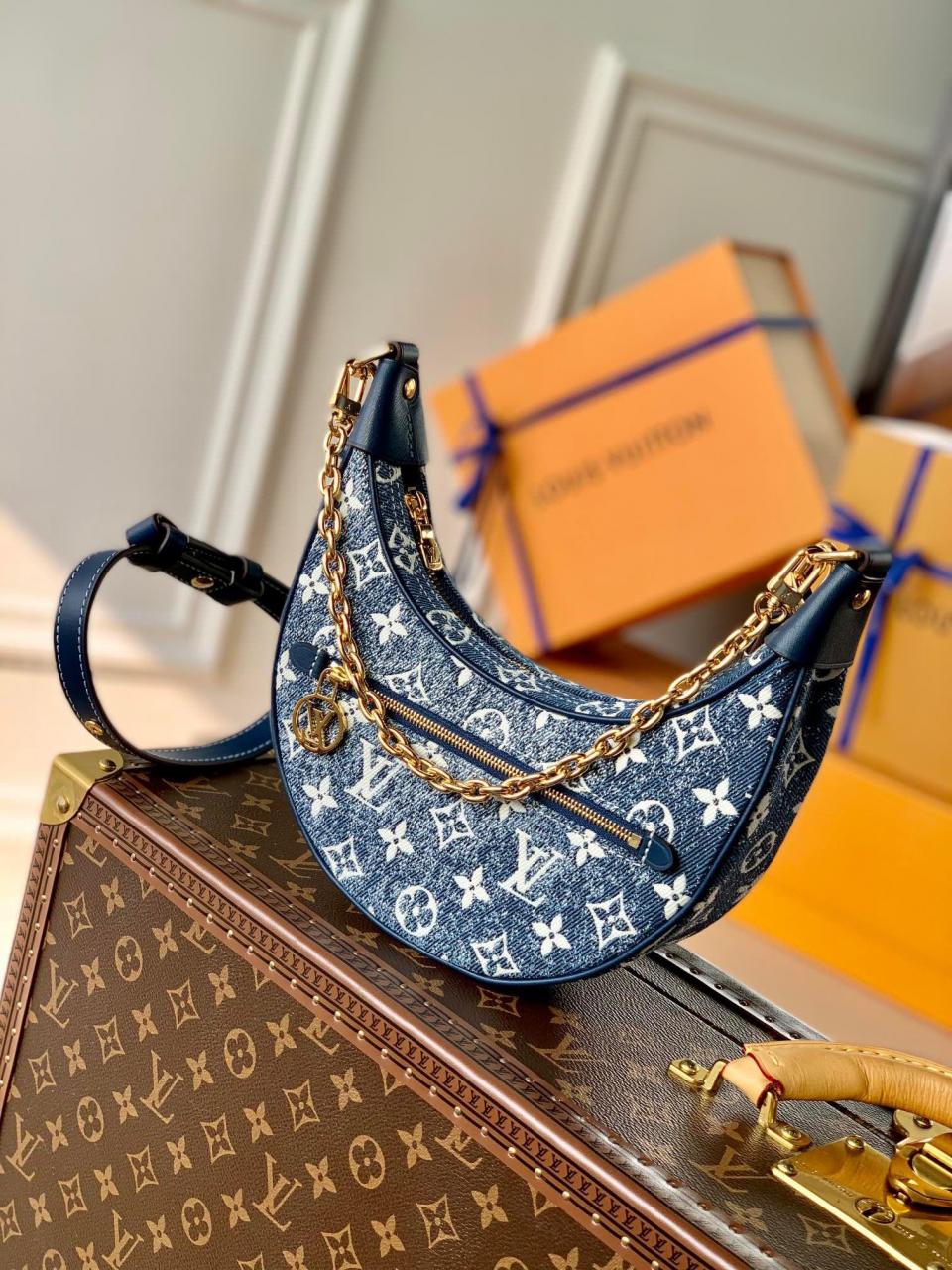 2023春夏 經典款 牛仔系列 L家牛仔老花半月法棍包