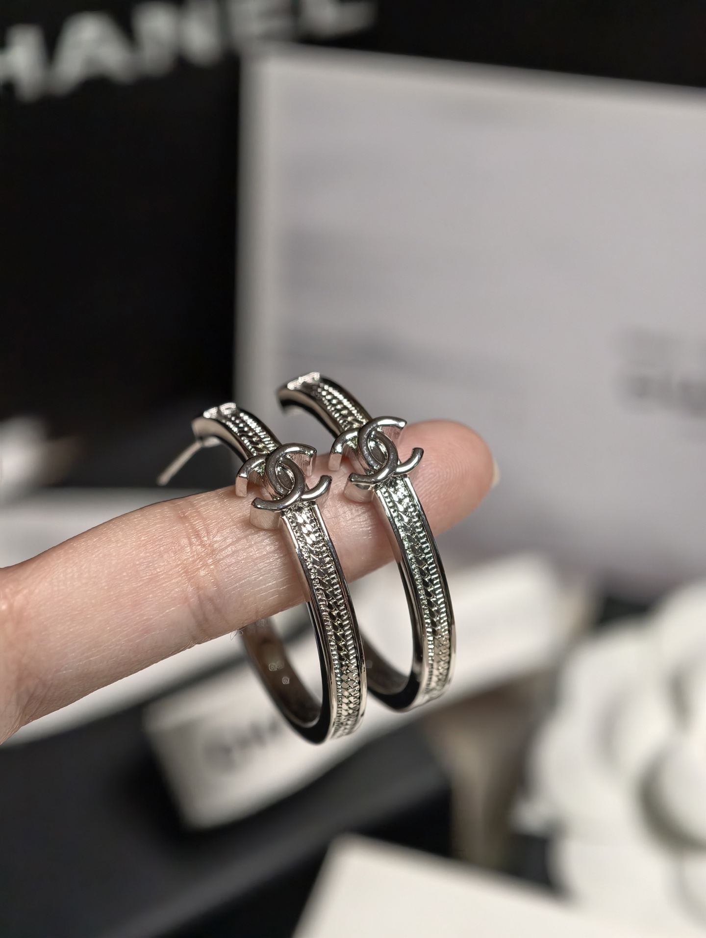 《尺寸規格》耳環高長約3.5 cm,雙C 寬度約 0.9 cm