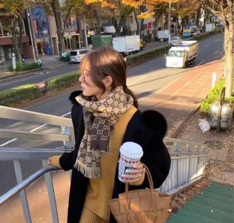 L家新款大logo羊毛流蘇圍巾