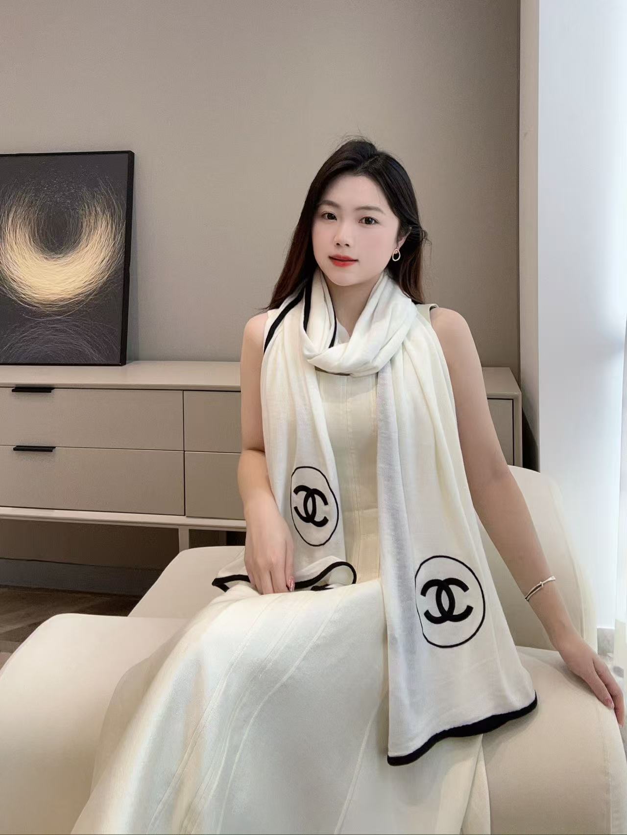 2024秋冬 C家白邊雙C圍巾