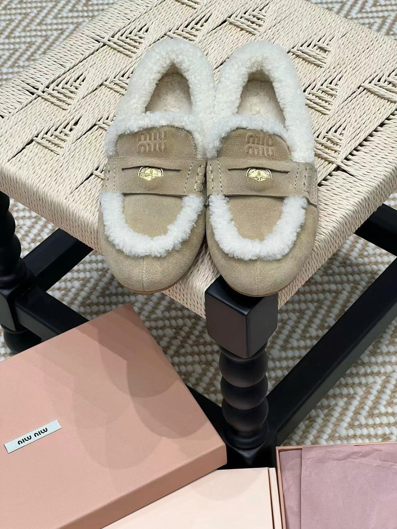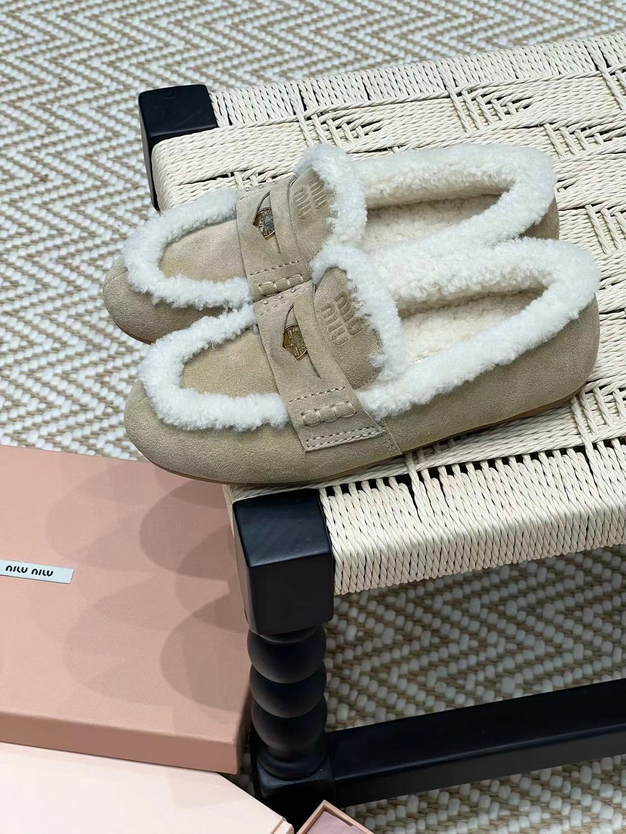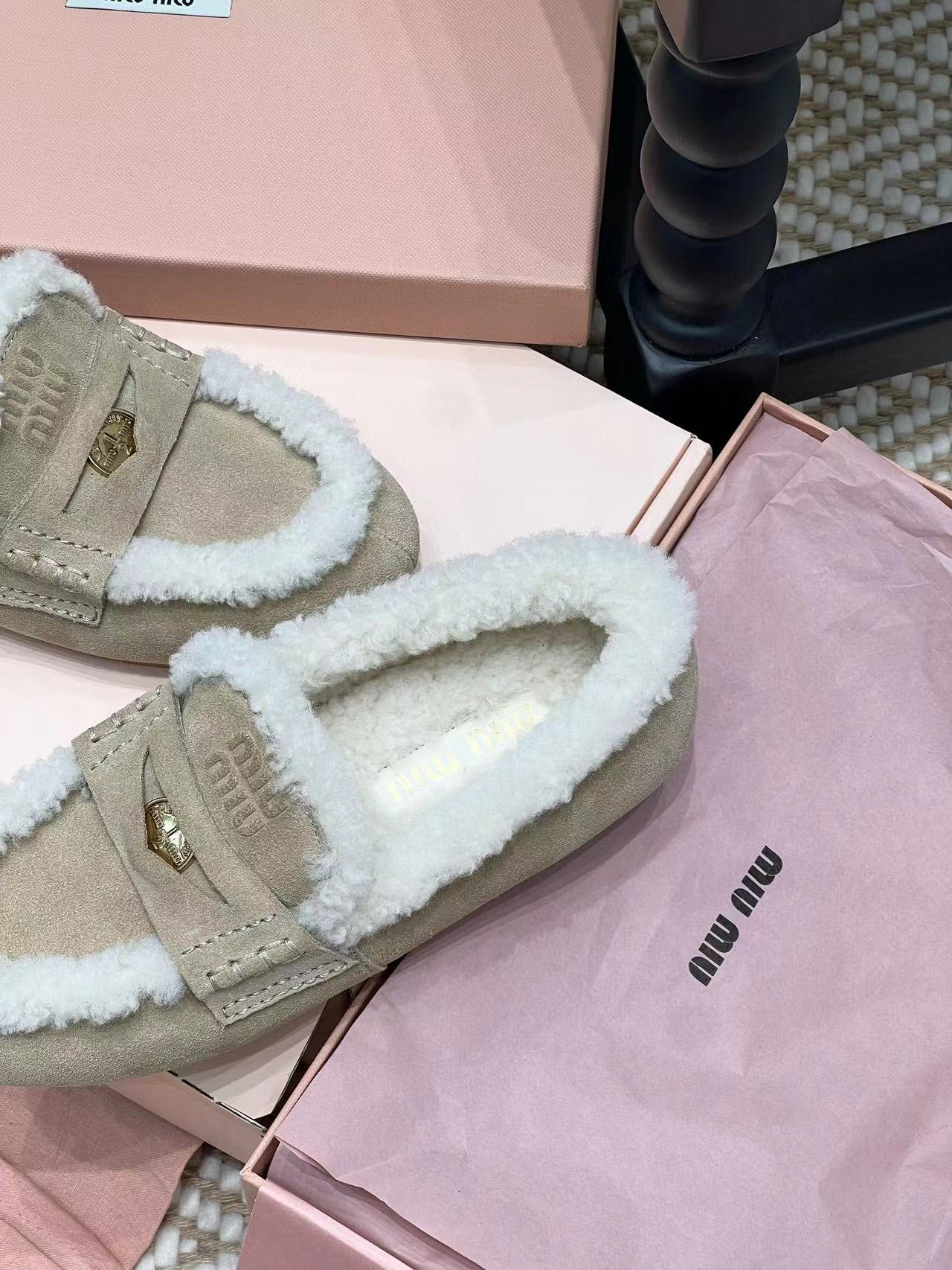 2024早秋新品 Miu家金幣毛毛絨面皮革樂福鞋