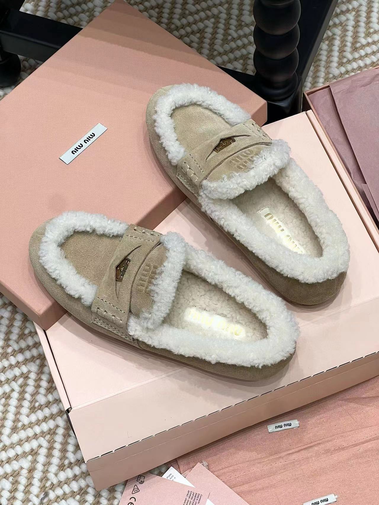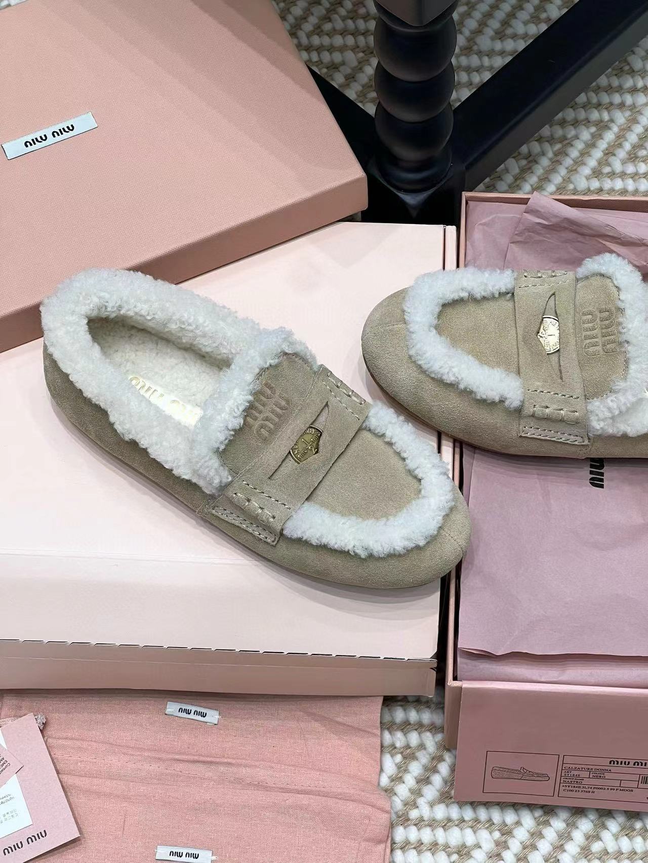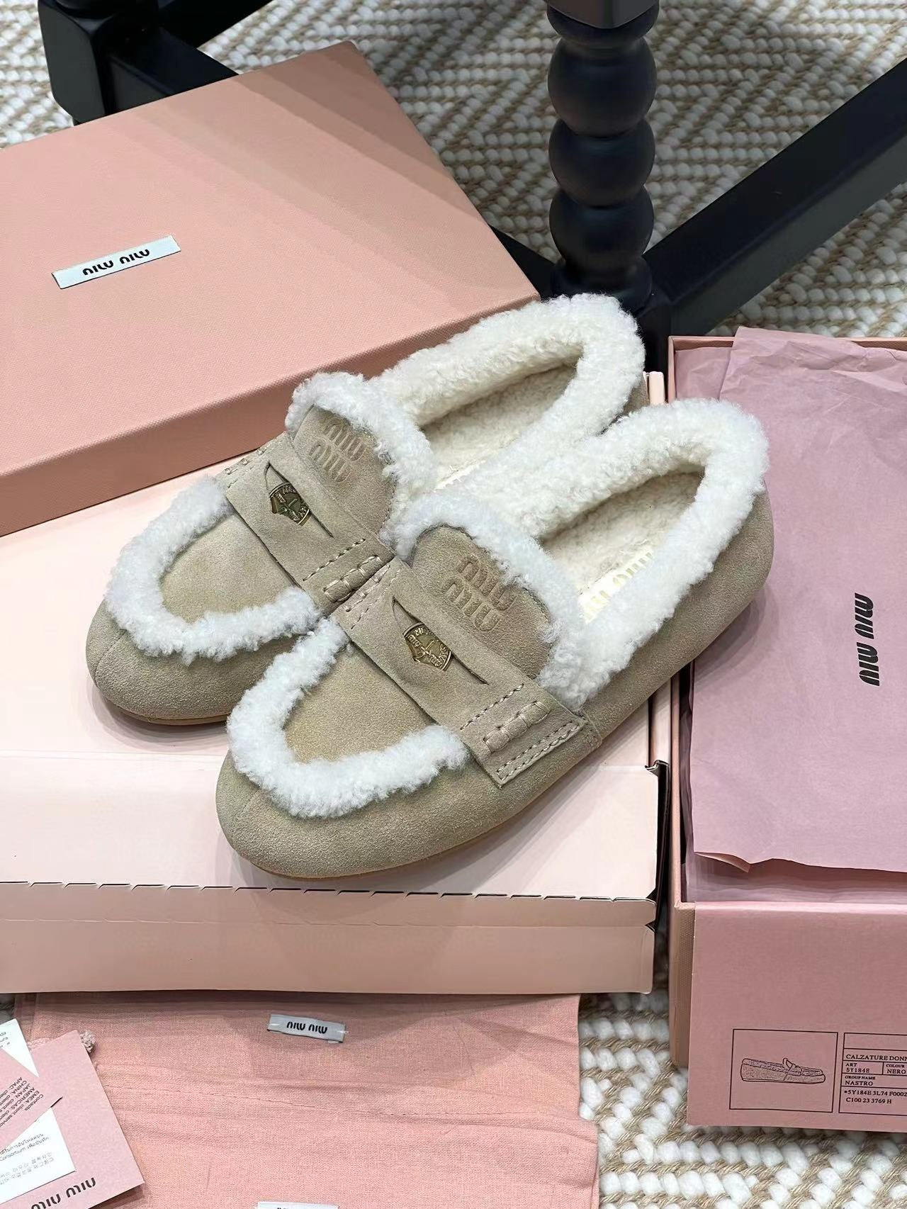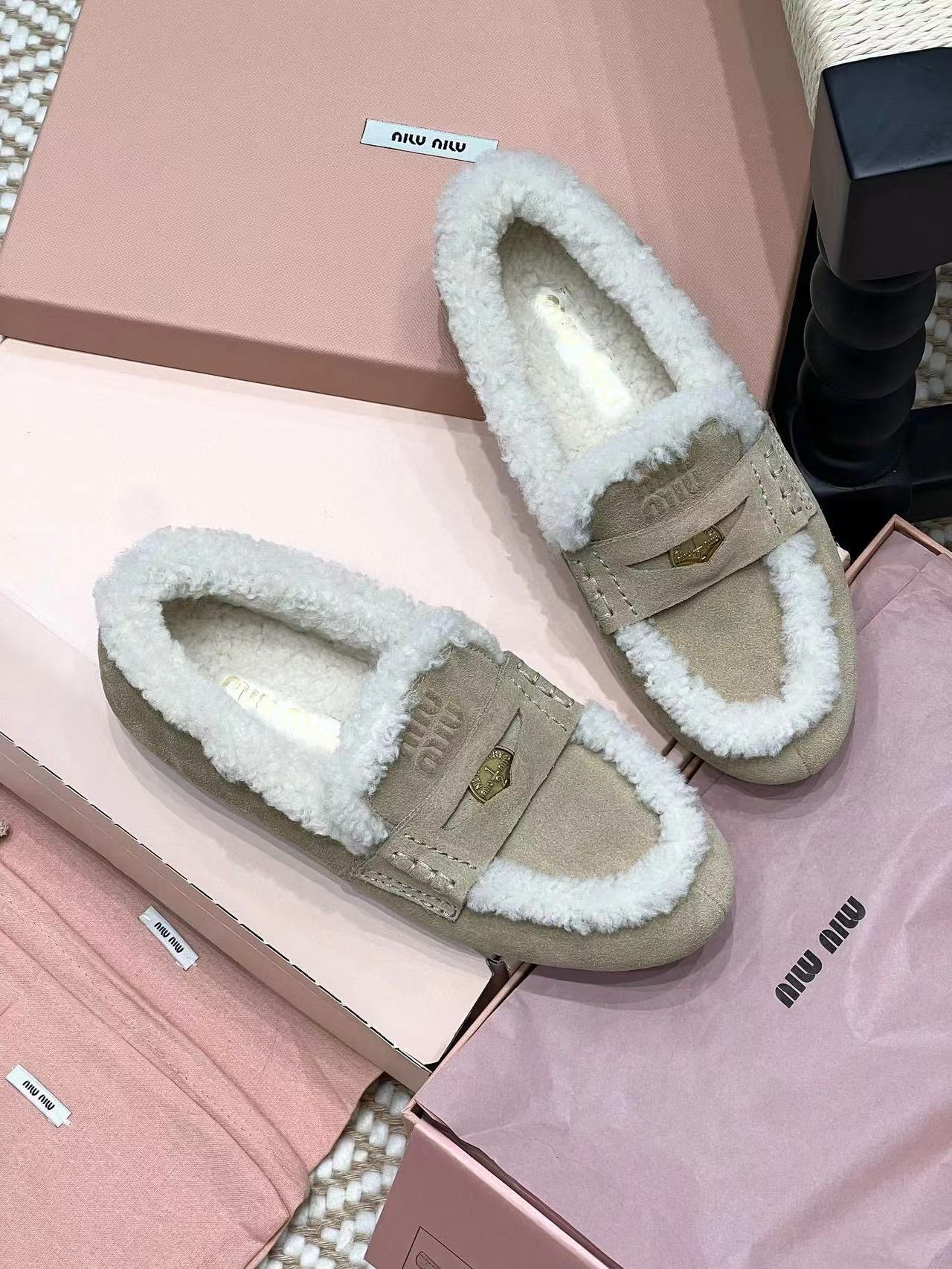 2024早秋新品 Miu家金幣毛毛絨面皮革樂福鞋