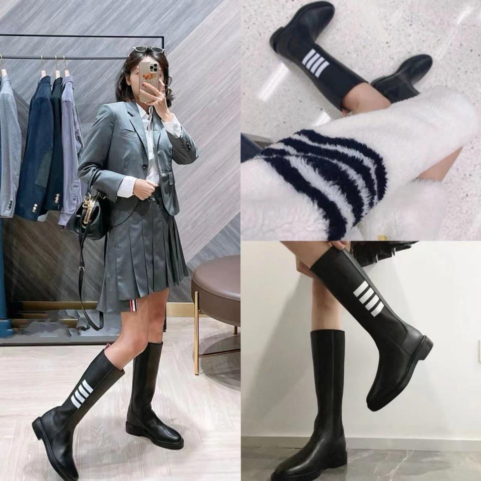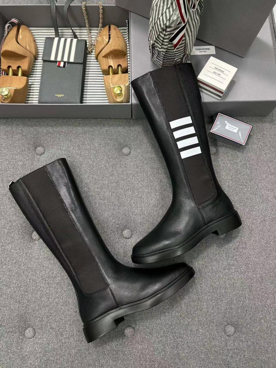 2023秋冬經典款 TB家女士四條槓石紋切爾西長靴 好穿舒適