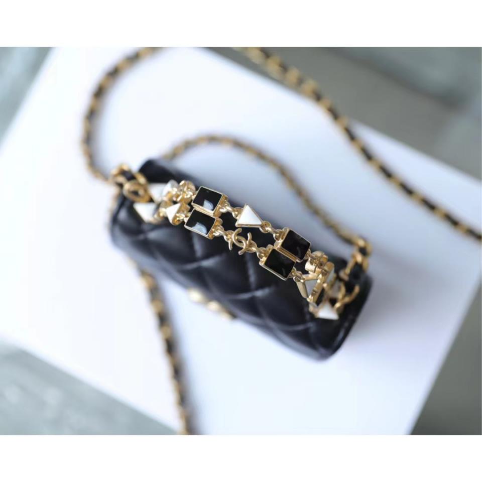 2022秋冬新品 琺瑯手柄鏈條口蓋手機包(黑色迷你號) 這一季出的款太好看啦