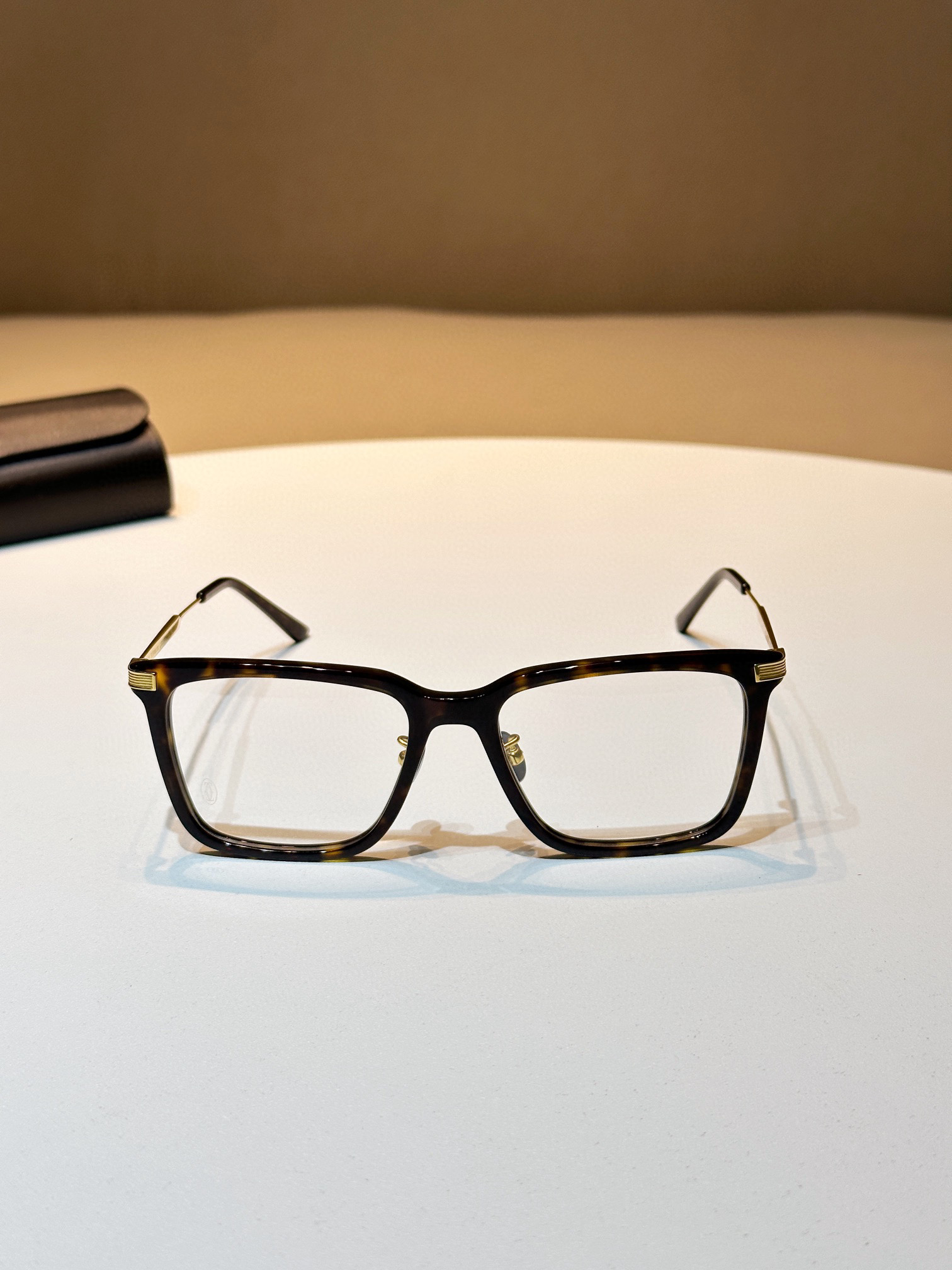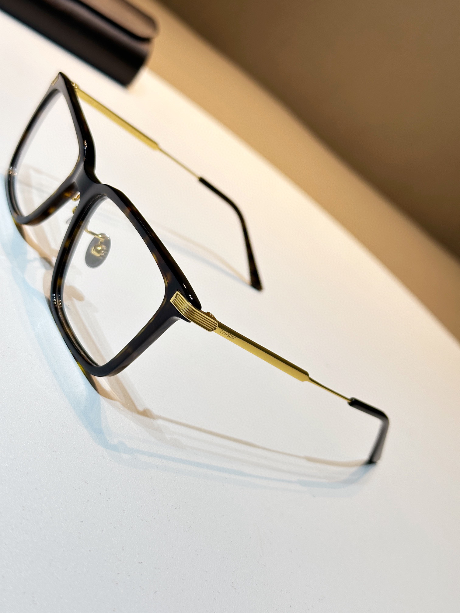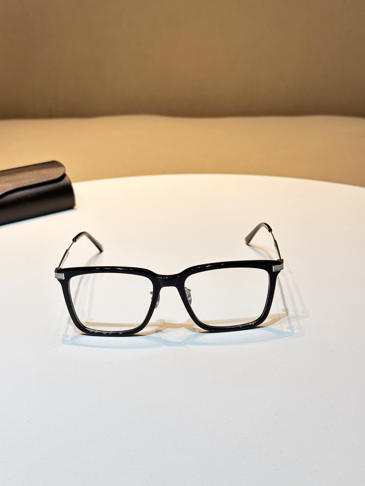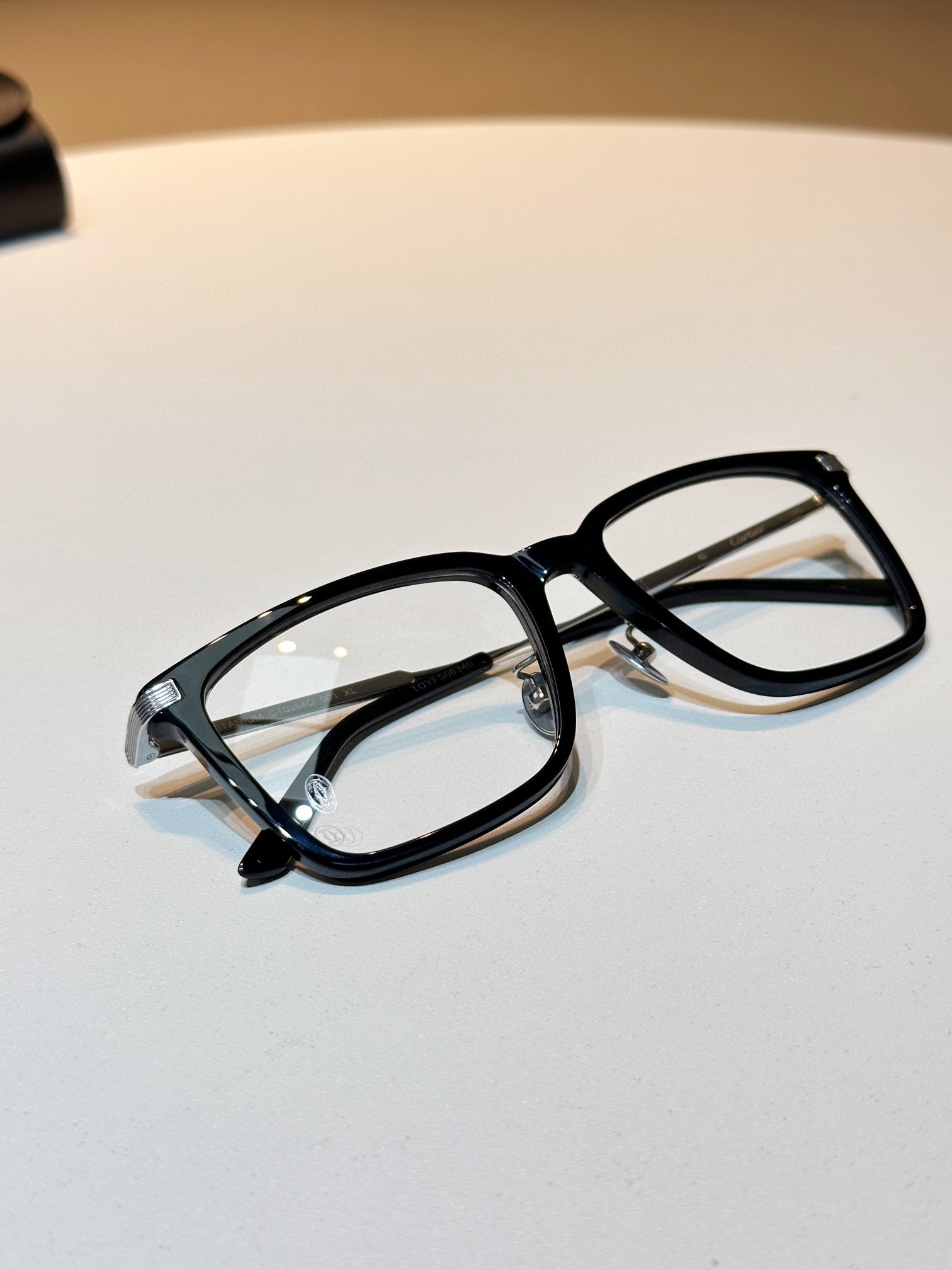 這款眼鏡以簡約的全框設計為主,低調卻不失奢華感。
