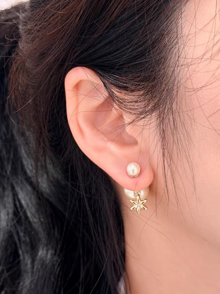 不對稱設計搭配大小雙珠的配置,巧妙地在優雅與個性之間取得平衡。戴上後不只精緻,還能自然修飾臉型,讓五官線條看起來更立體。