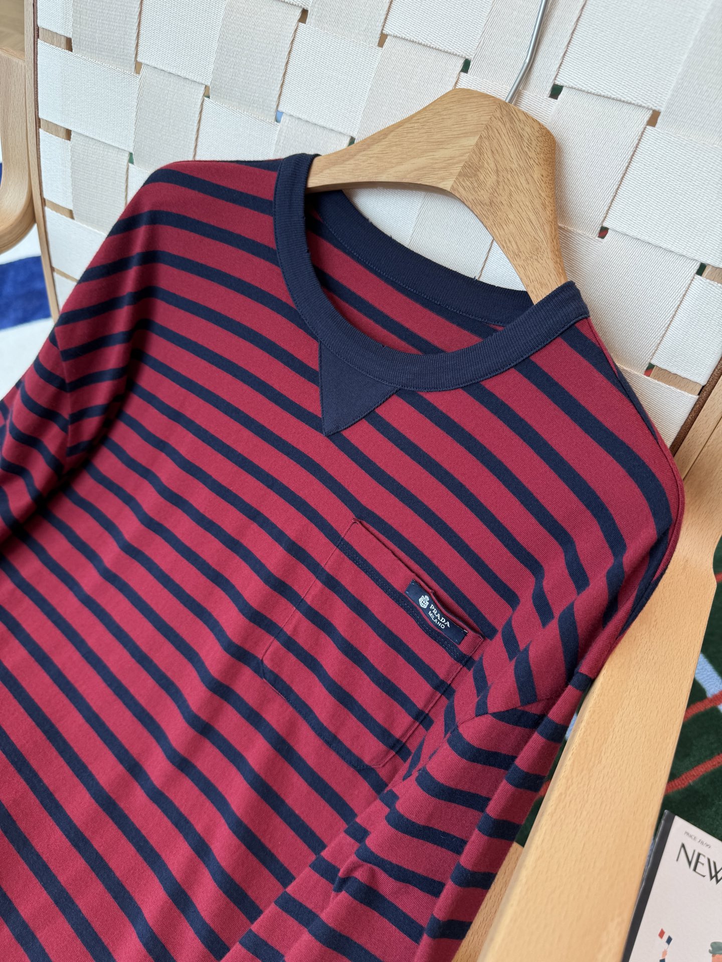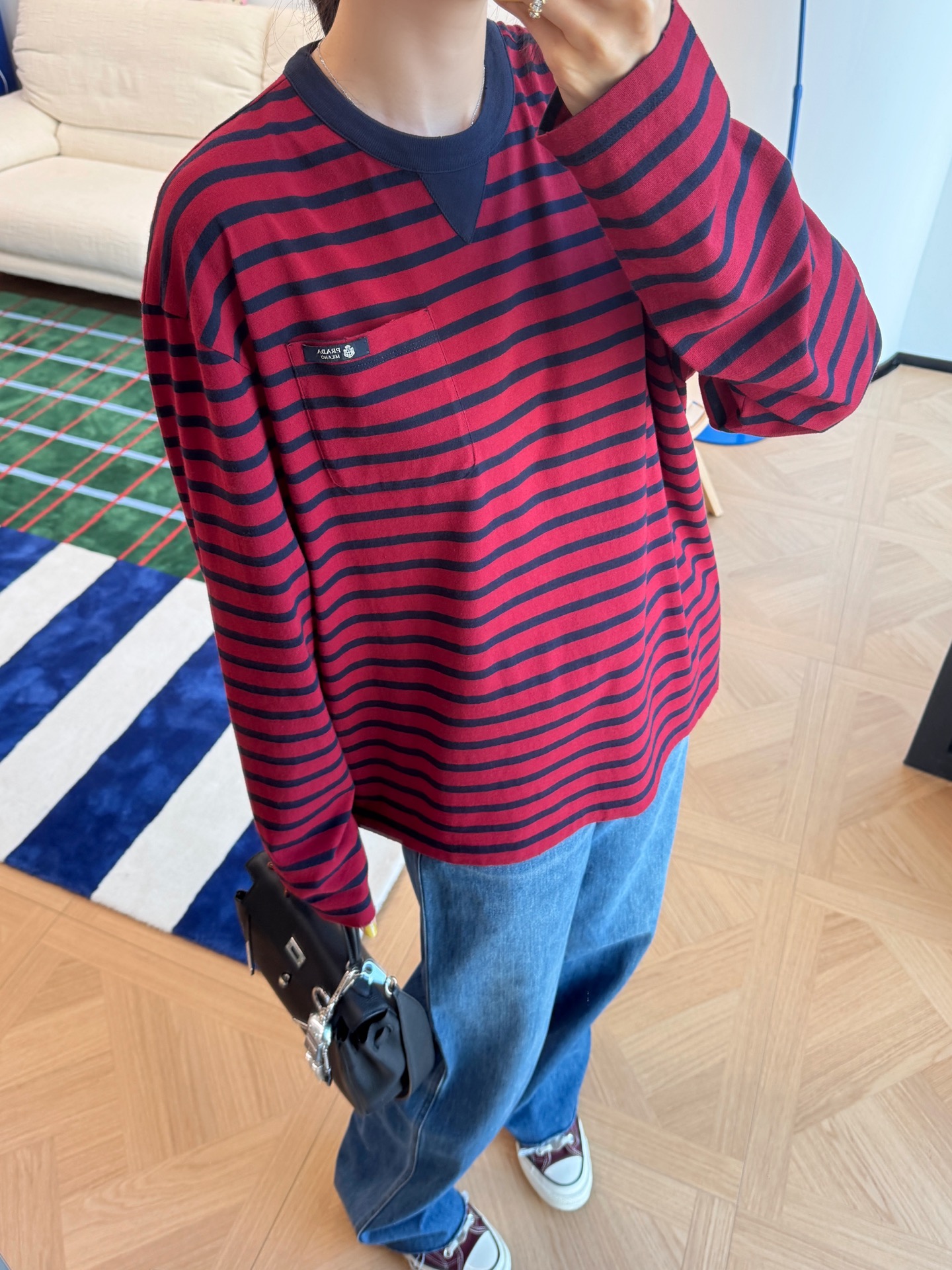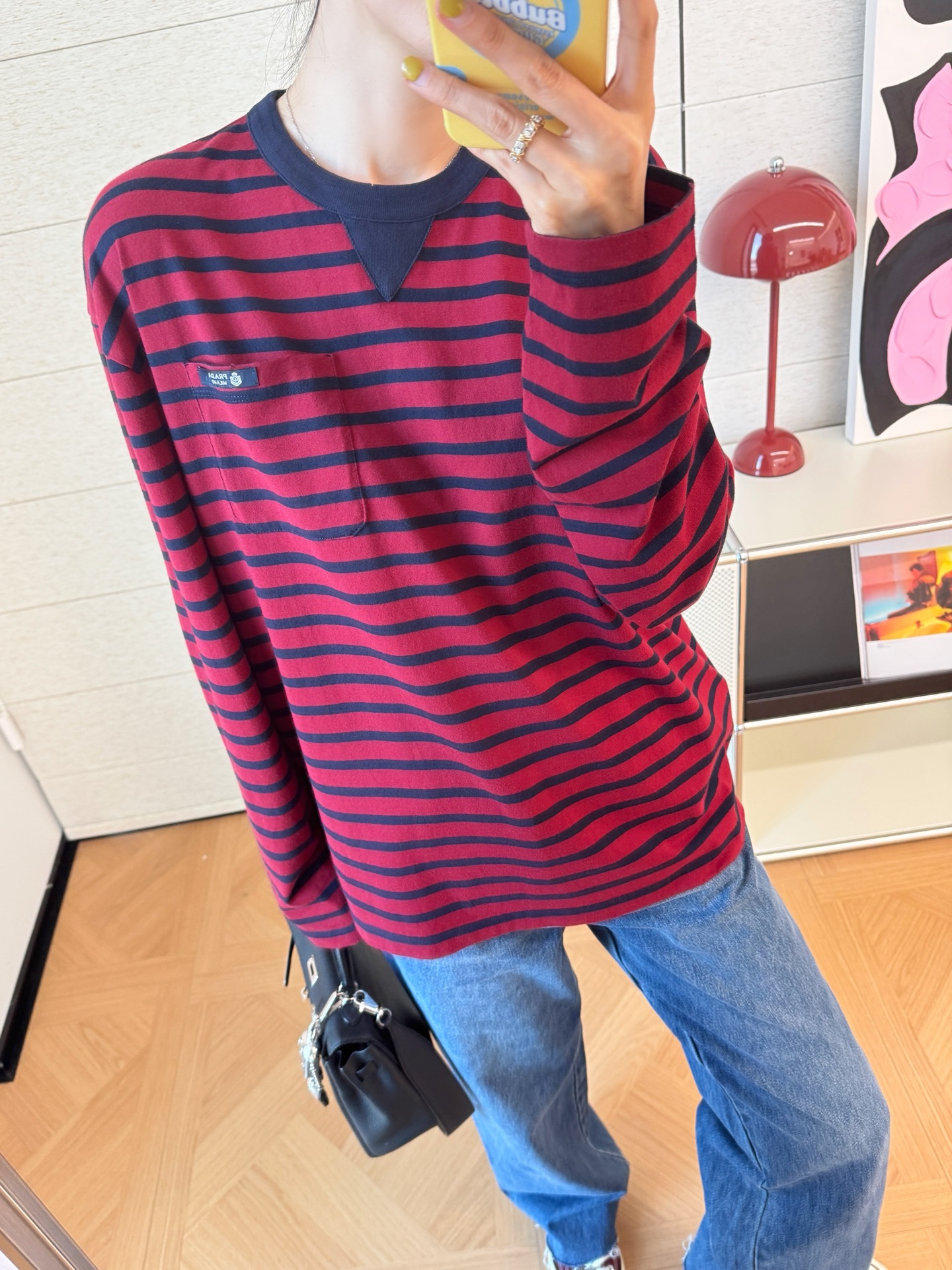 這件紅藍條紋T恤,是那種越看越順眼、越穿越上癮的款式。