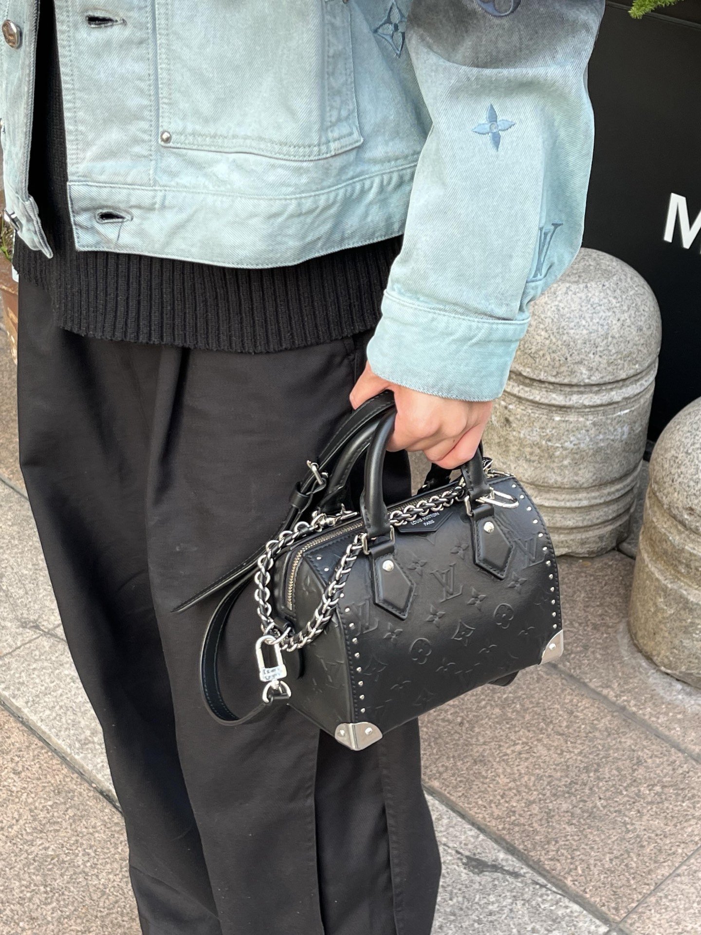 經典 Speedy 輪廓結合 Trunk 硬箱元素,整體線條俐落又有個性,黑銀配色更是直接把帥度拉到最高,背上身氣場全開。