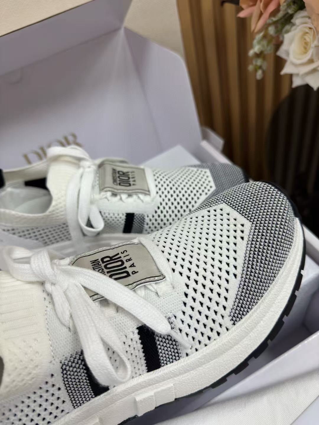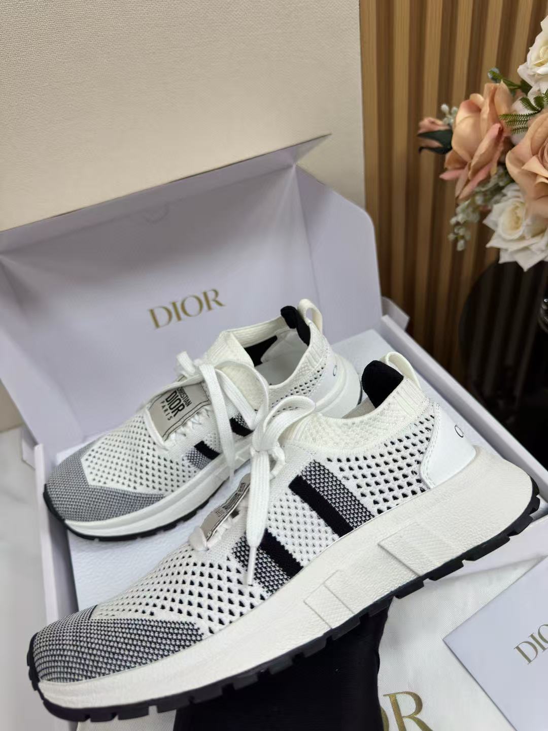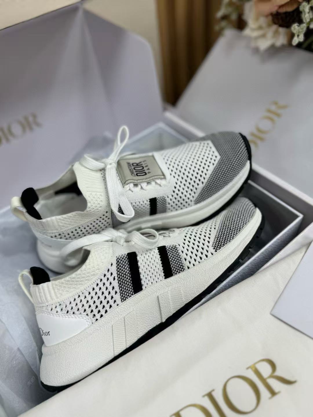 這雙鞋完美融合運動機能與高訂時尚,採用黑白配色網眼鞋面,視覺上極具層次感。鞋帶與後跟印有標誌,低調中不失品牌辨識度,細節處處都是亮點!