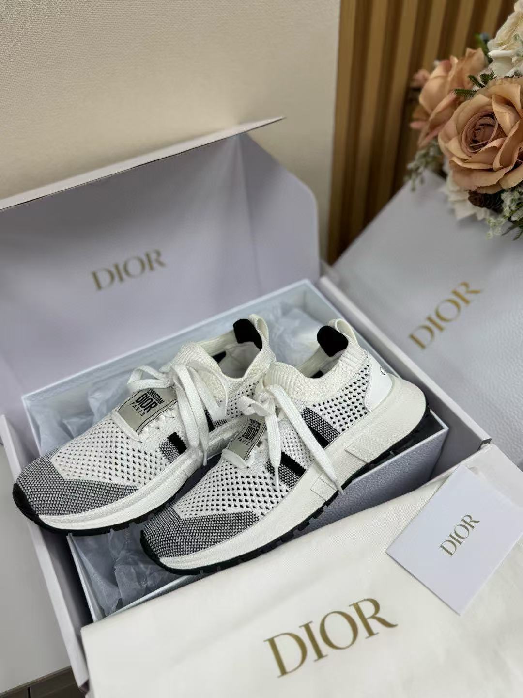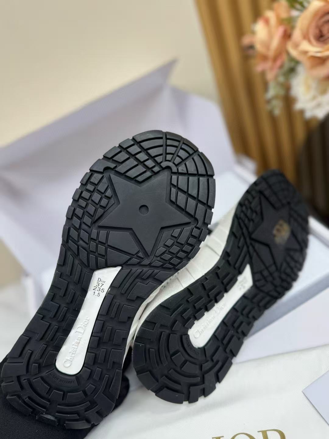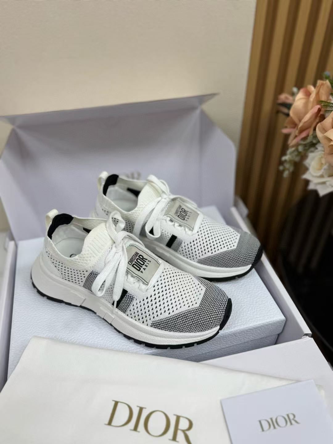 這雙鞋完美融合運動機能與高訂時尚,採用黑白配色網眼鞋面,視覺上極具層次感。鞋帶與後跟印有標誌,低調中不失品牌辨識度,細節處處都是亮點!