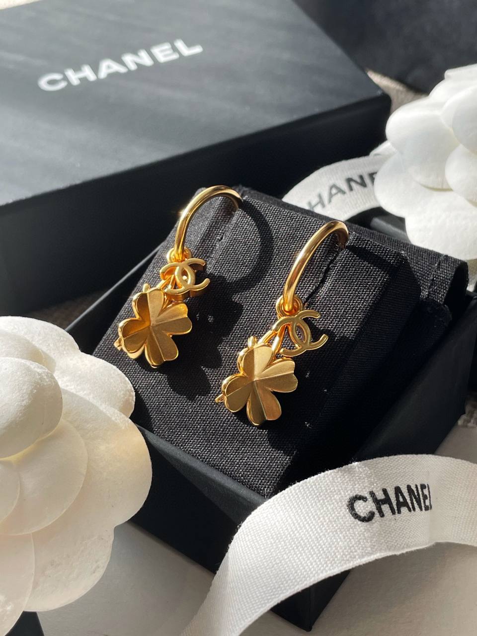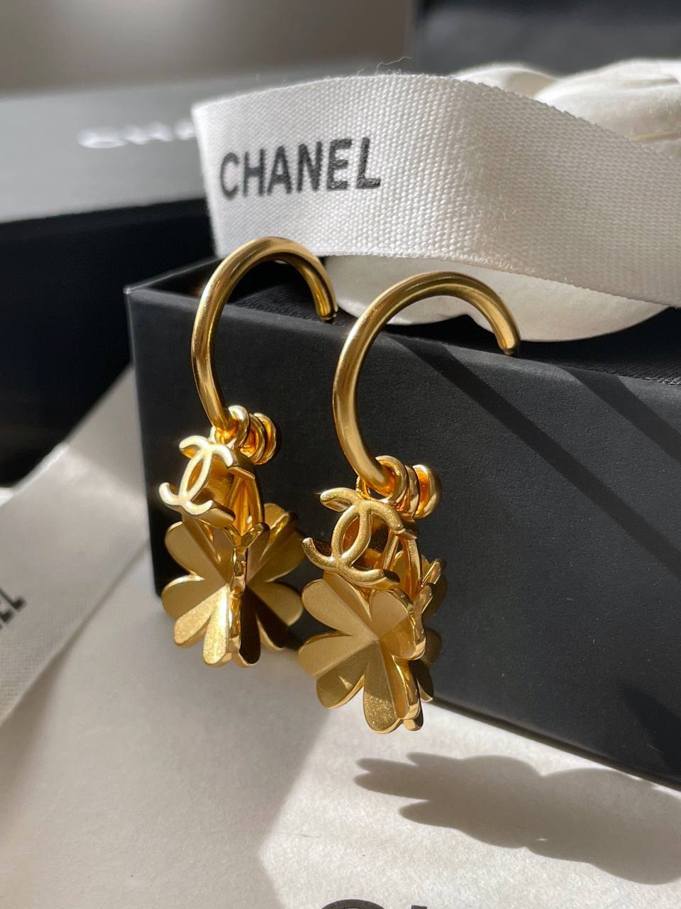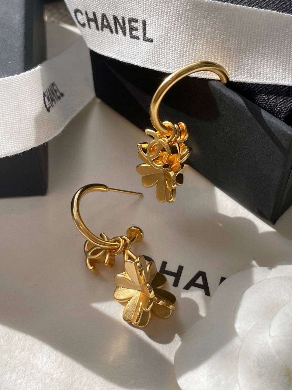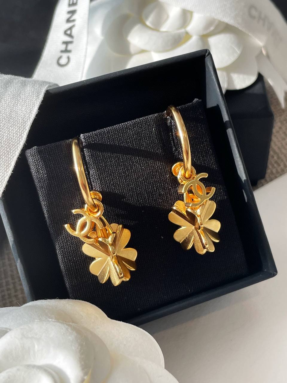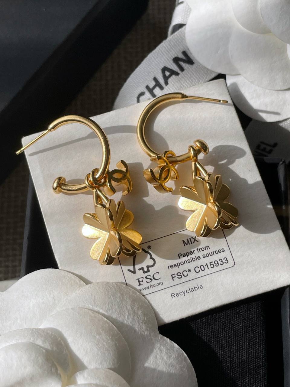 2024秋冬 C家雙吊墜立體四葉草耳鈎