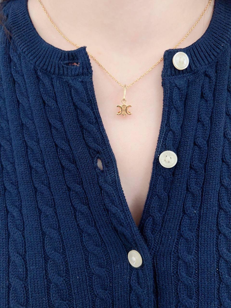 C家徽章金幣鏈條口蓋包(海軍藍18cm)