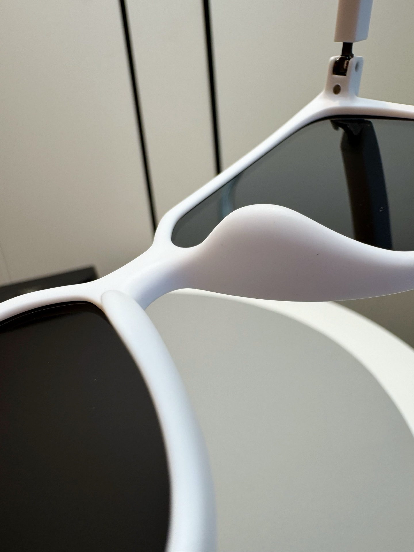 而且它的佩戴感真的沒話說,整副眼鏡只有21.7克,戴上去幾乎感覺不到重量,輕盈到讓人忘記它的存在,長時間佩戴也不會覺得壓鼻梁或耳朵不舒服,又能提供完美的遮陽效果。真的是日常穿搭或出遊的絕佳選擇!