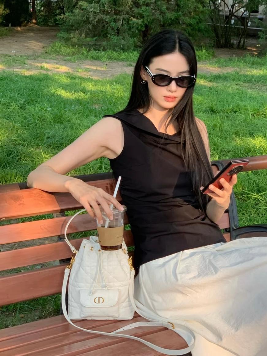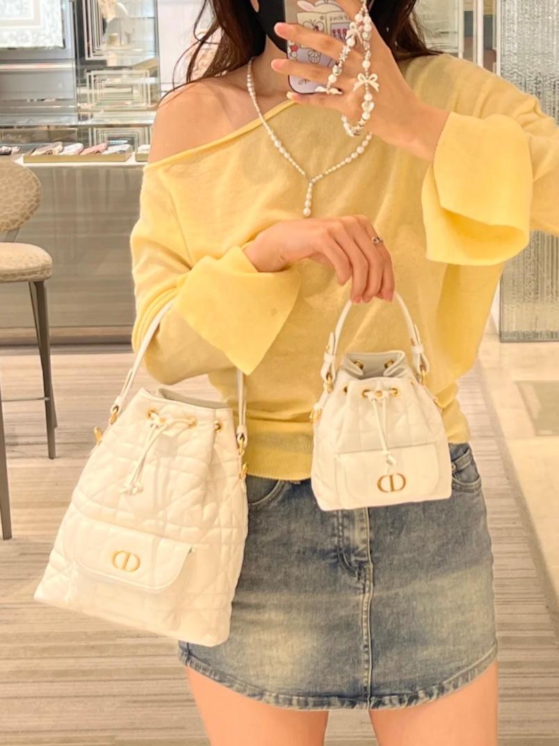別看它小巧,20×24×9cm 的容量足以容納手機、短夾、鑰匙與日常小物。桶包造型經典耐看,無論是肩背、手提都能展現不同風情,從牛仔褲休閒風到洋裝優雅風都能輕鬆駕馭。
