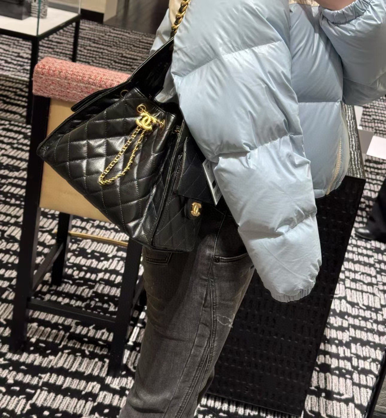 可調式鏈帶設計,一秒變身百搭水桶包,容量很大很能裝!