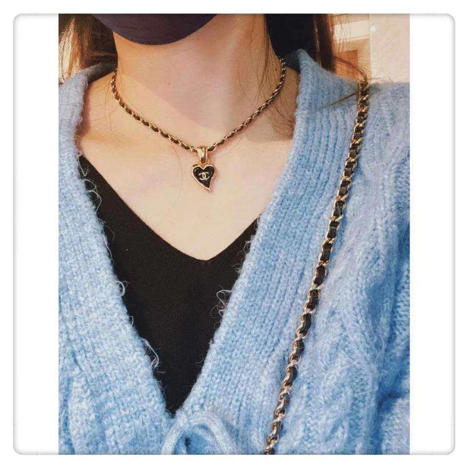 2022春夏 C家黑愛心皮穿鏈項鍊
