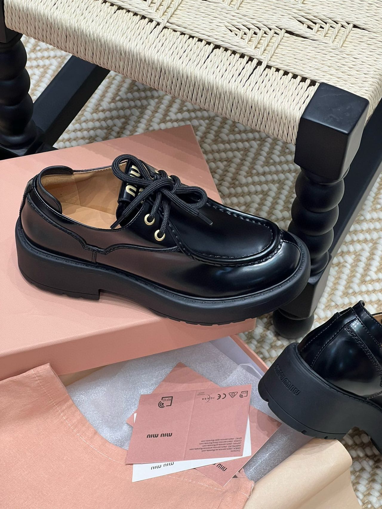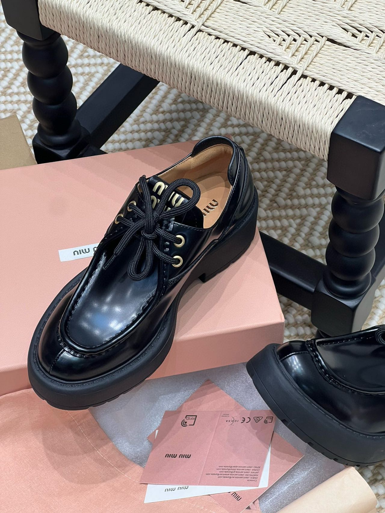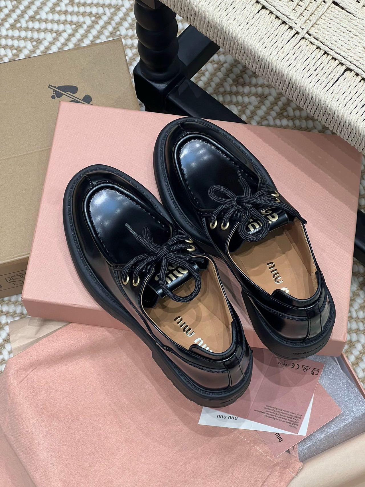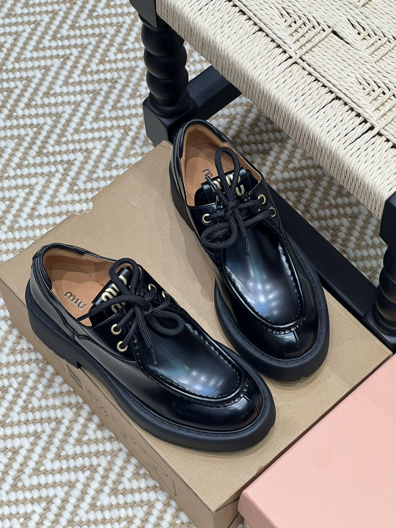 Miu家綁帶小皮鞋