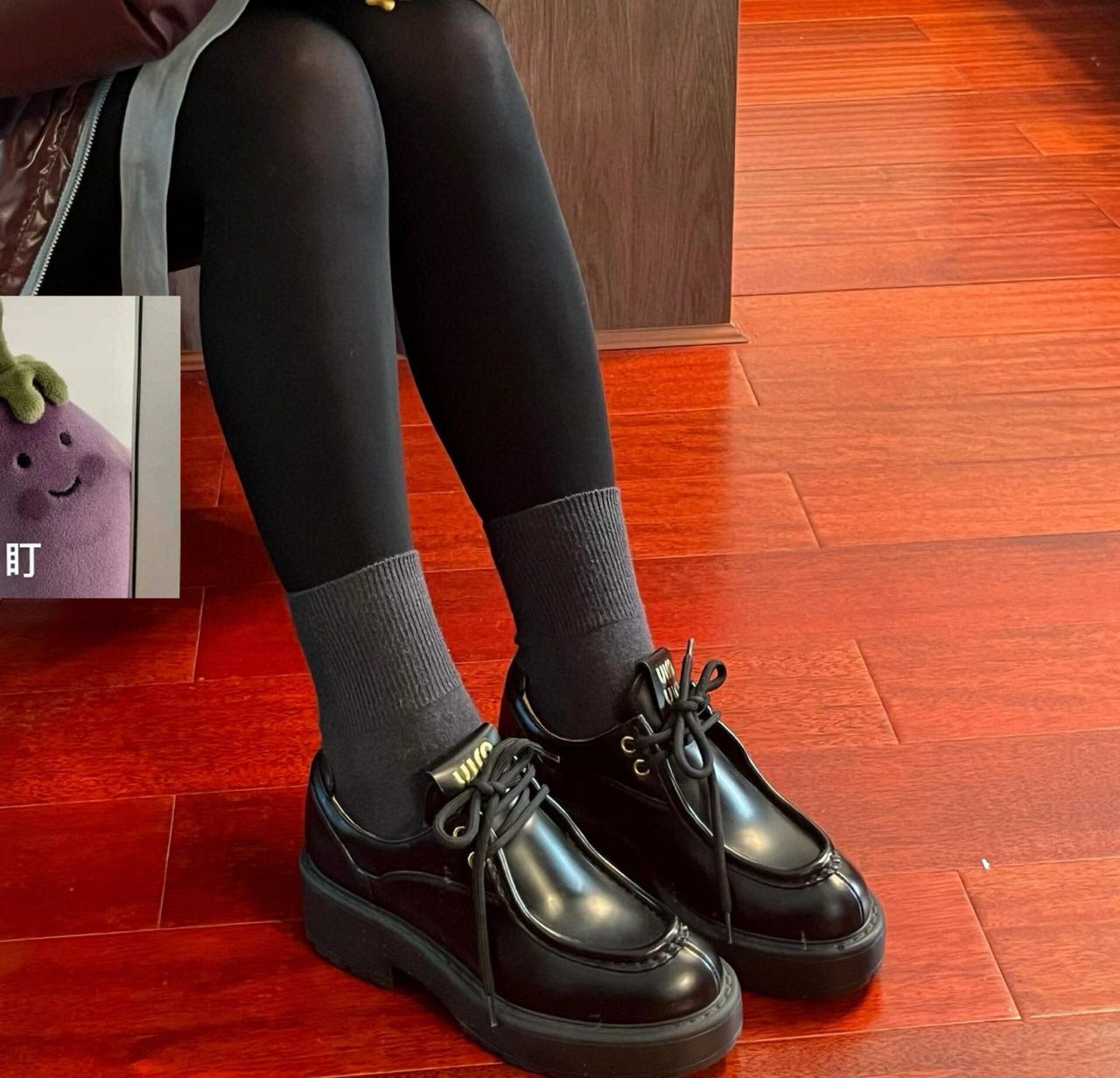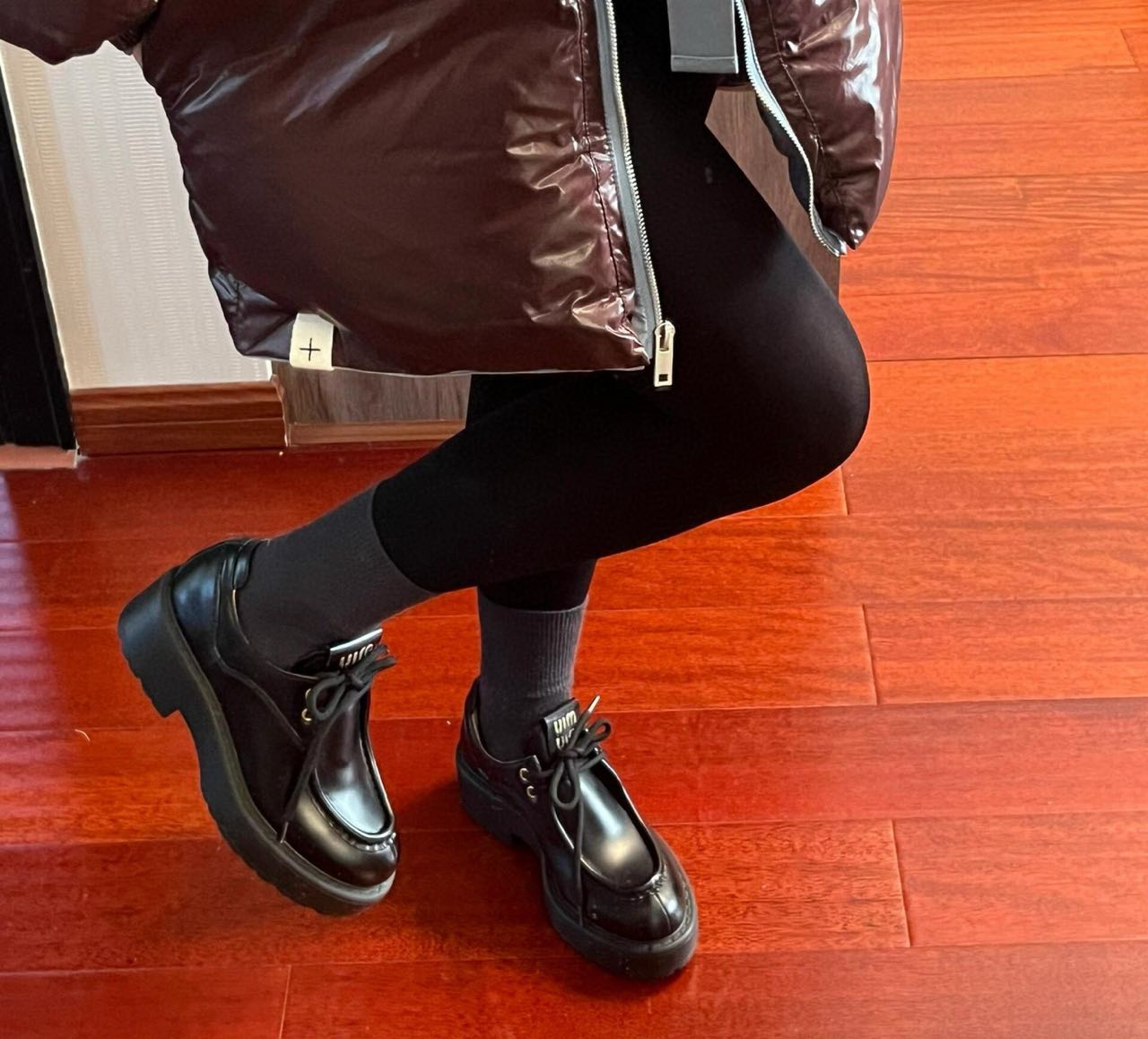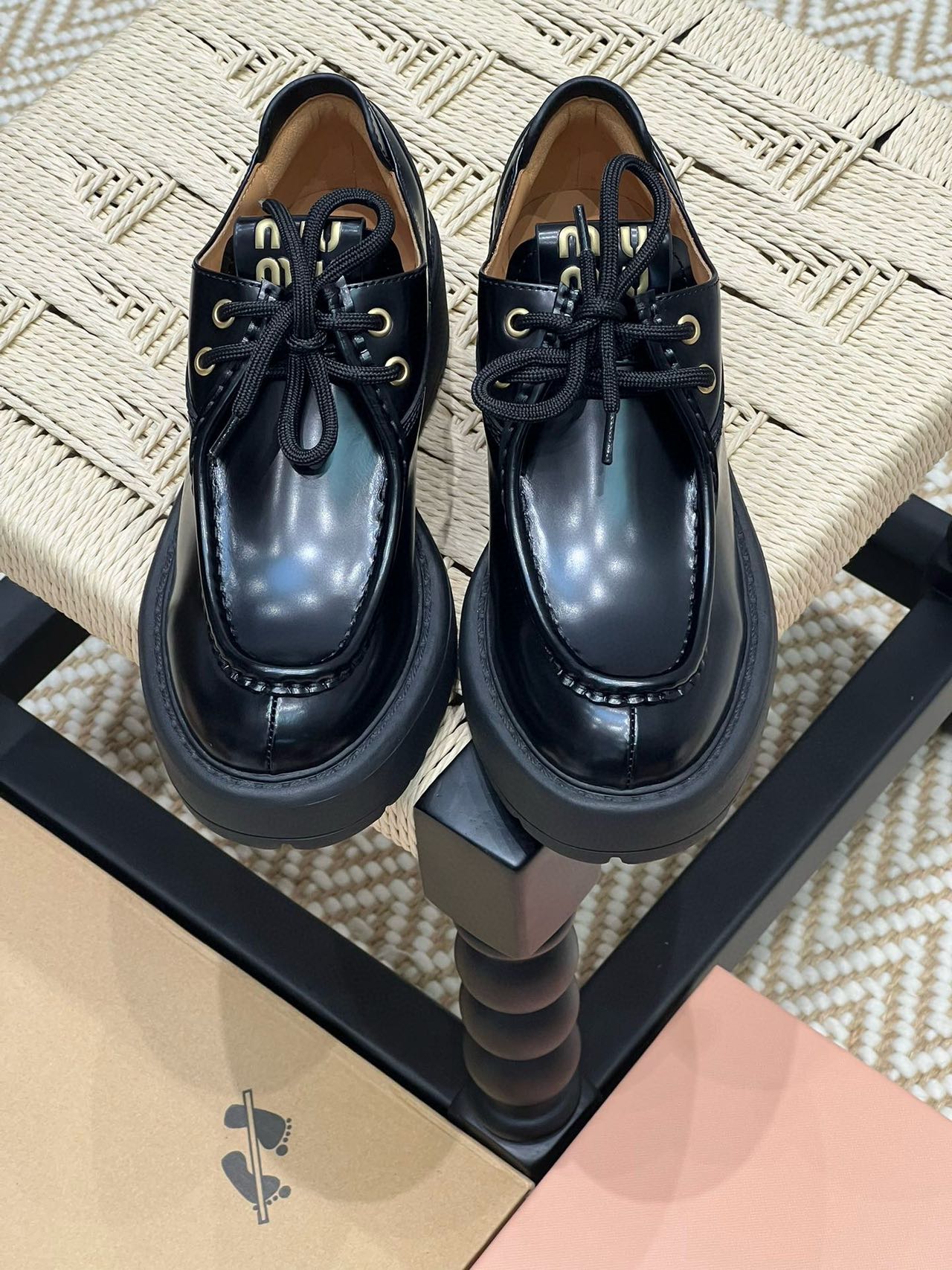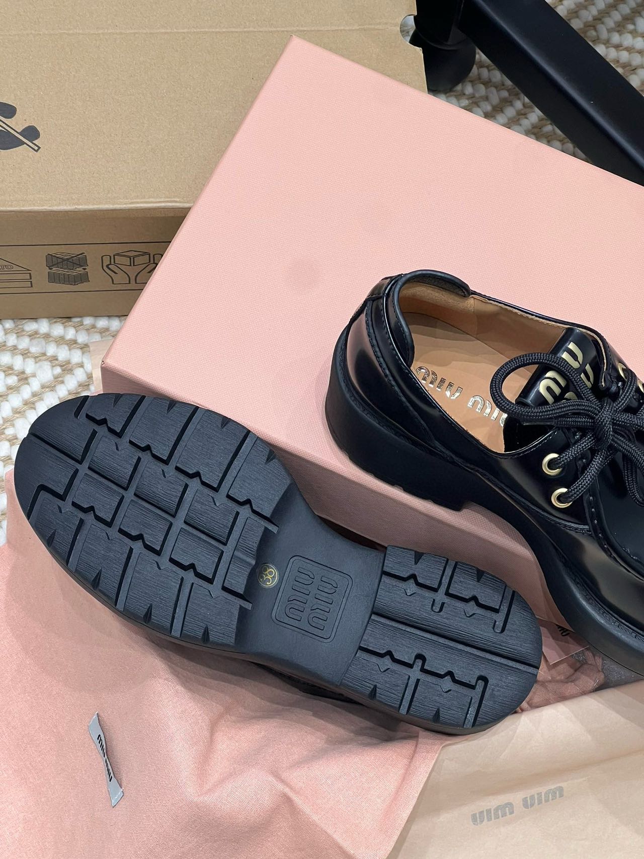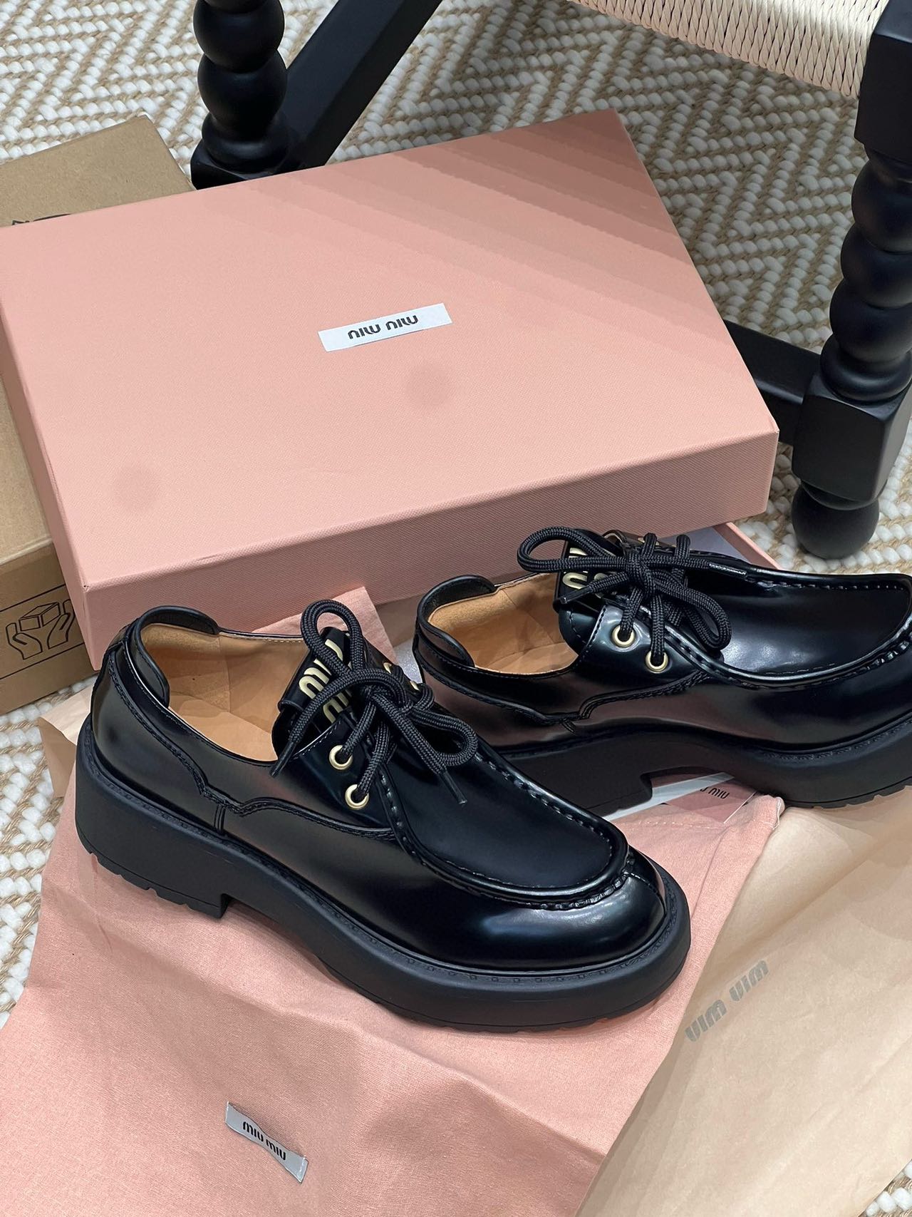 Miu家綁帶小皮鞋