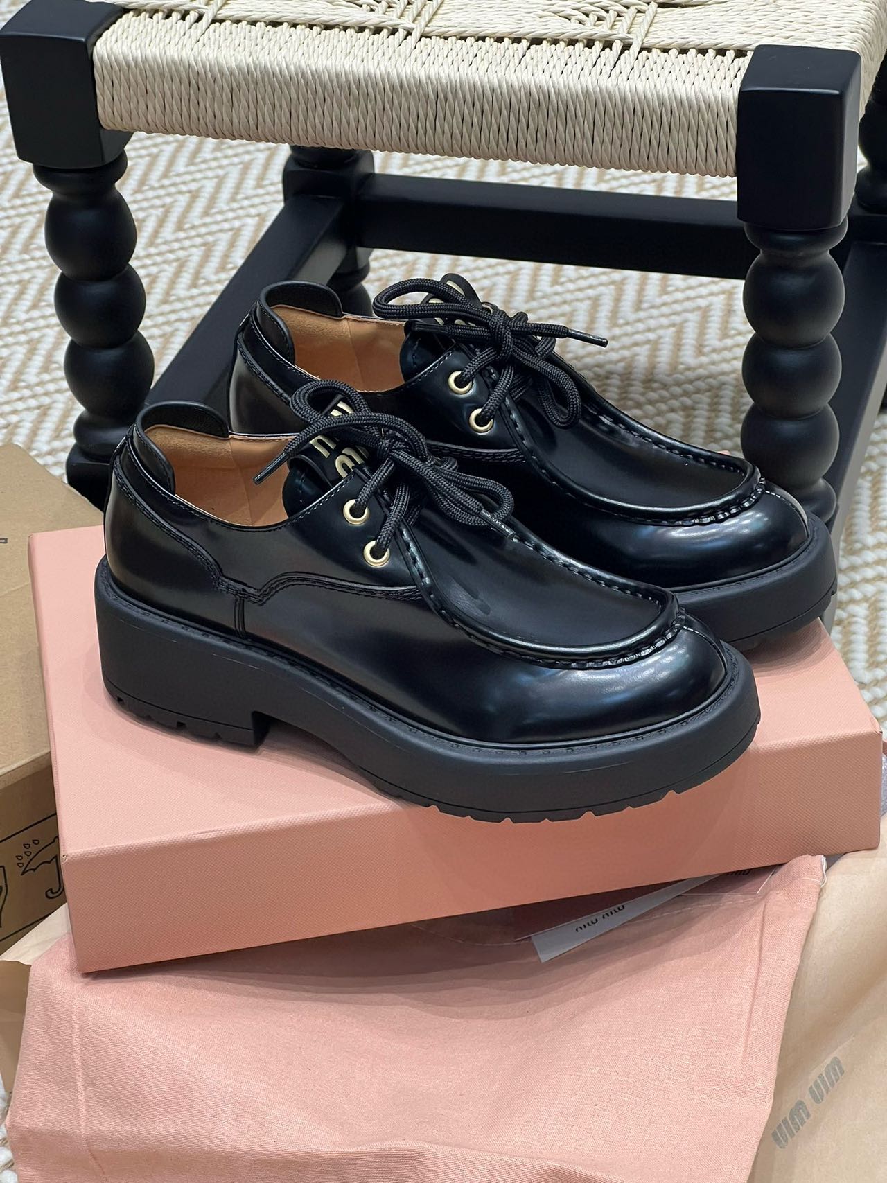 2024早秋新品 Miu家綁帶小皮鞋 學院風格