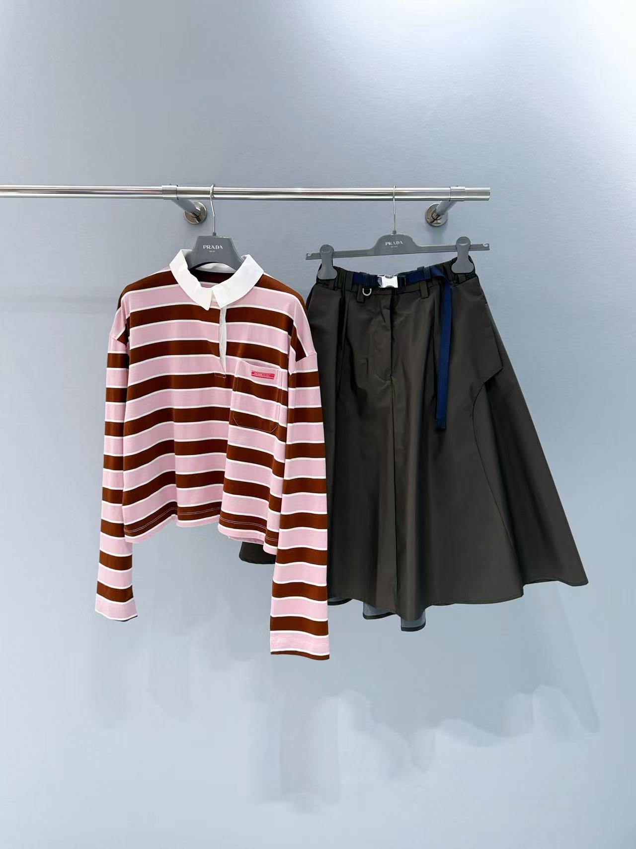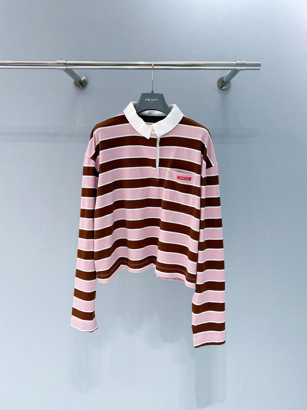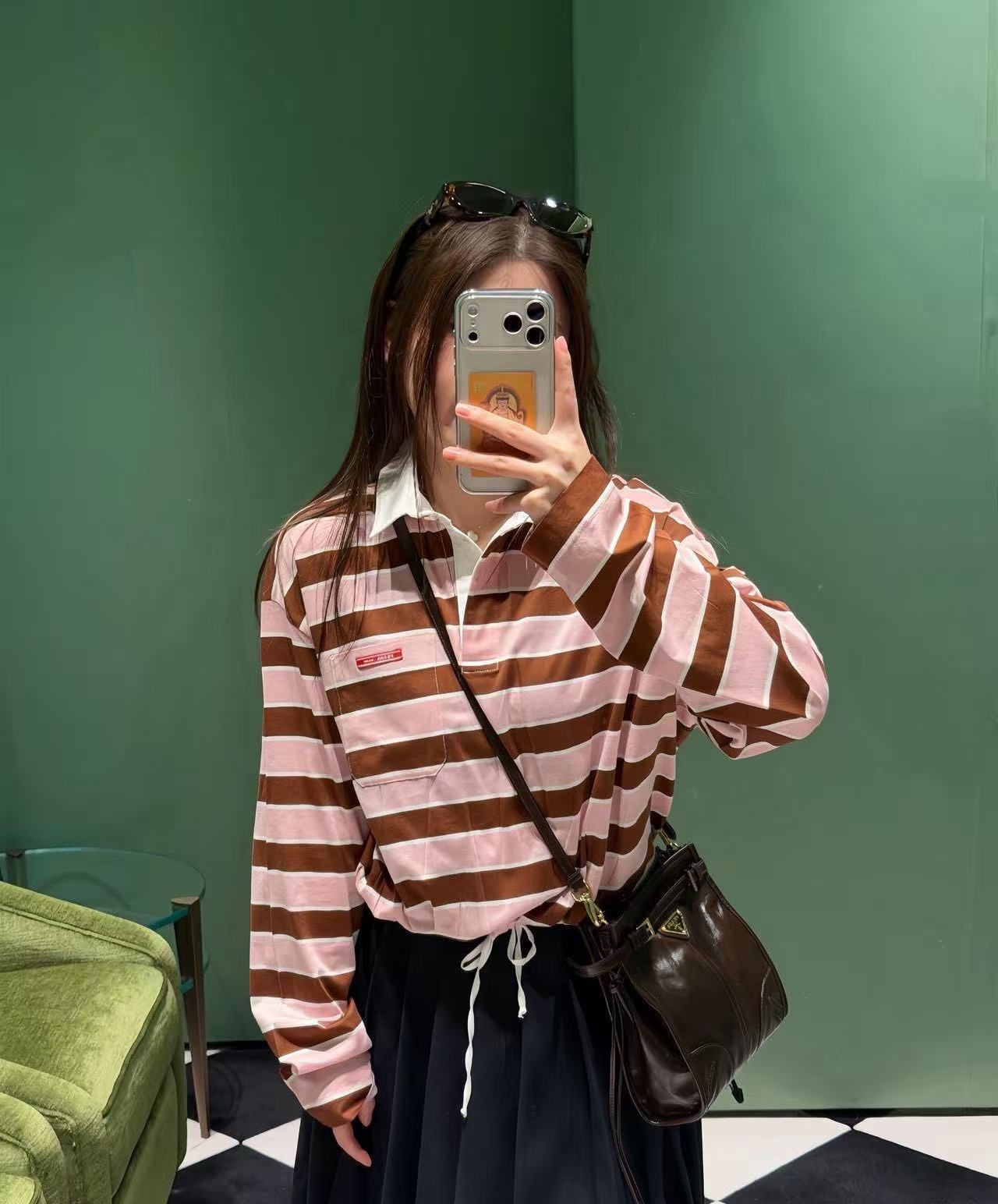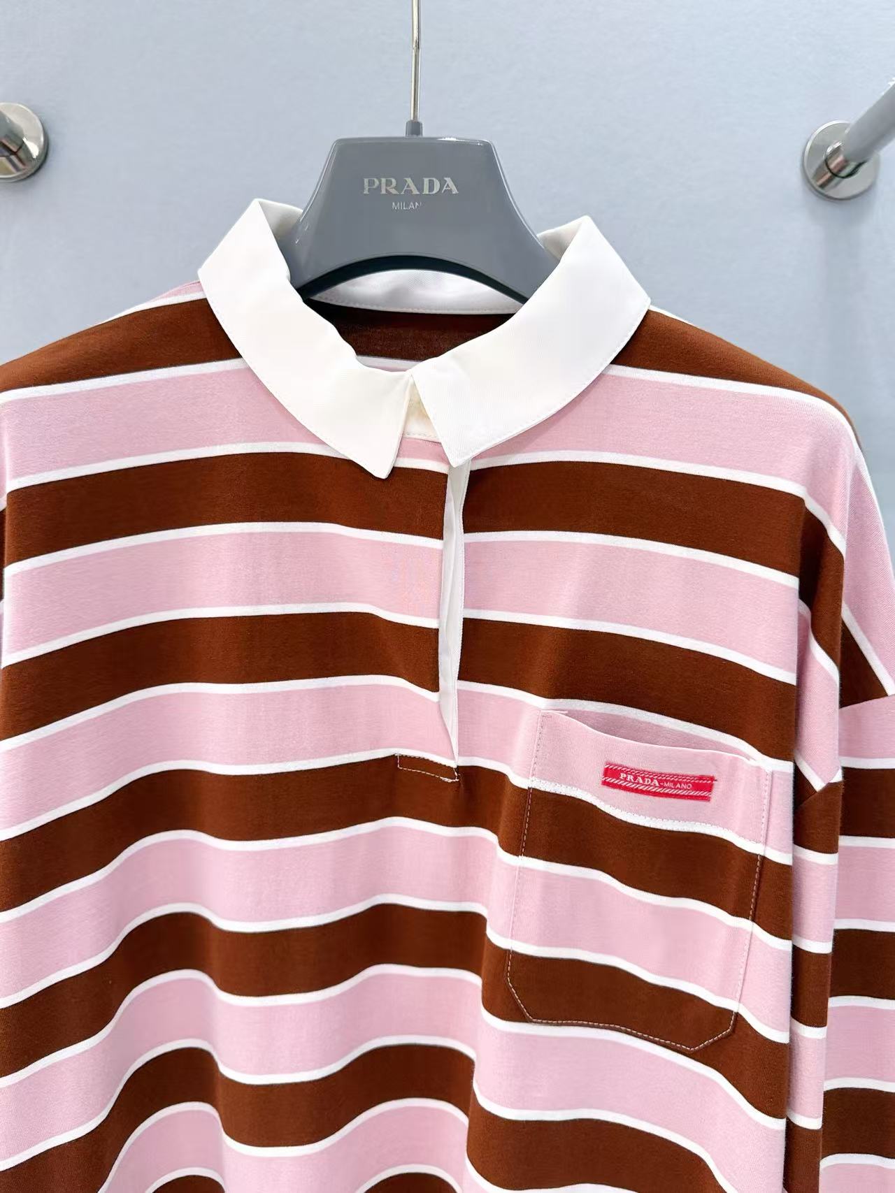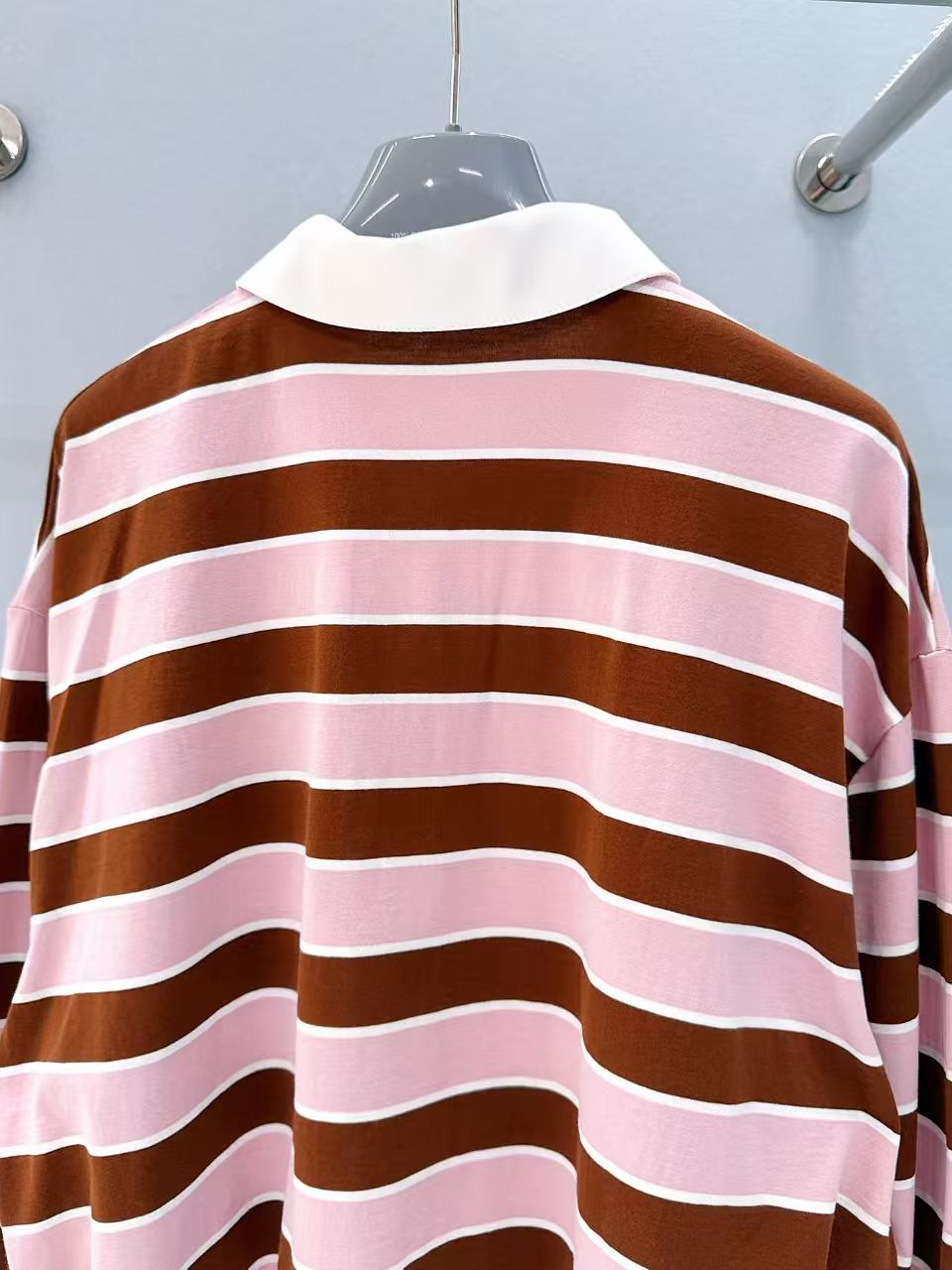 2026早春 PD家 復古粉色條紋 POLO 領長袖