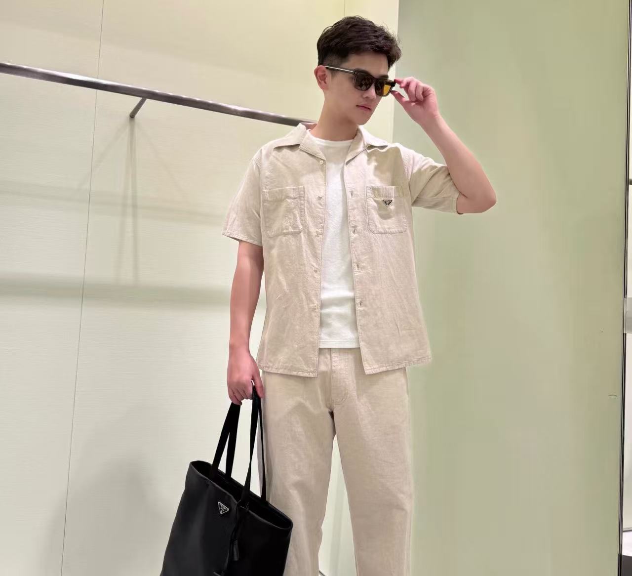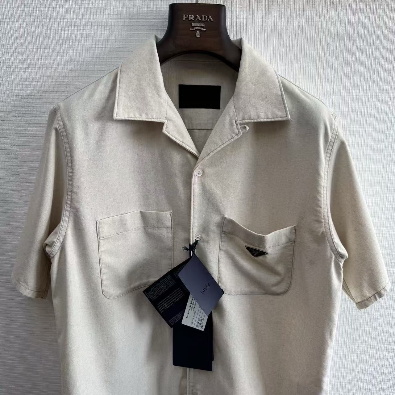 2026早春新品 P家 三角標logo麻棉襯衫短袖