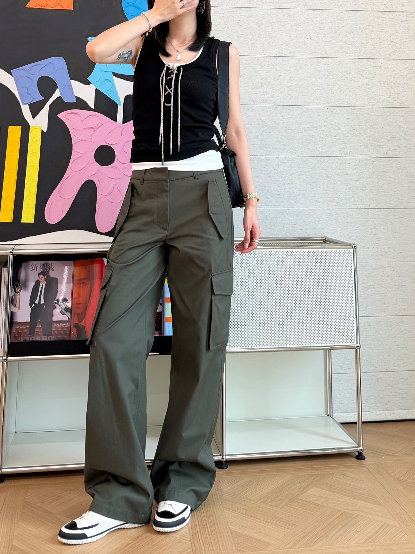 2026春夏新品 BUR家 橄欖綠工裝寬褲