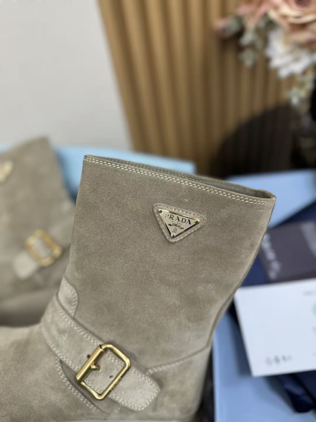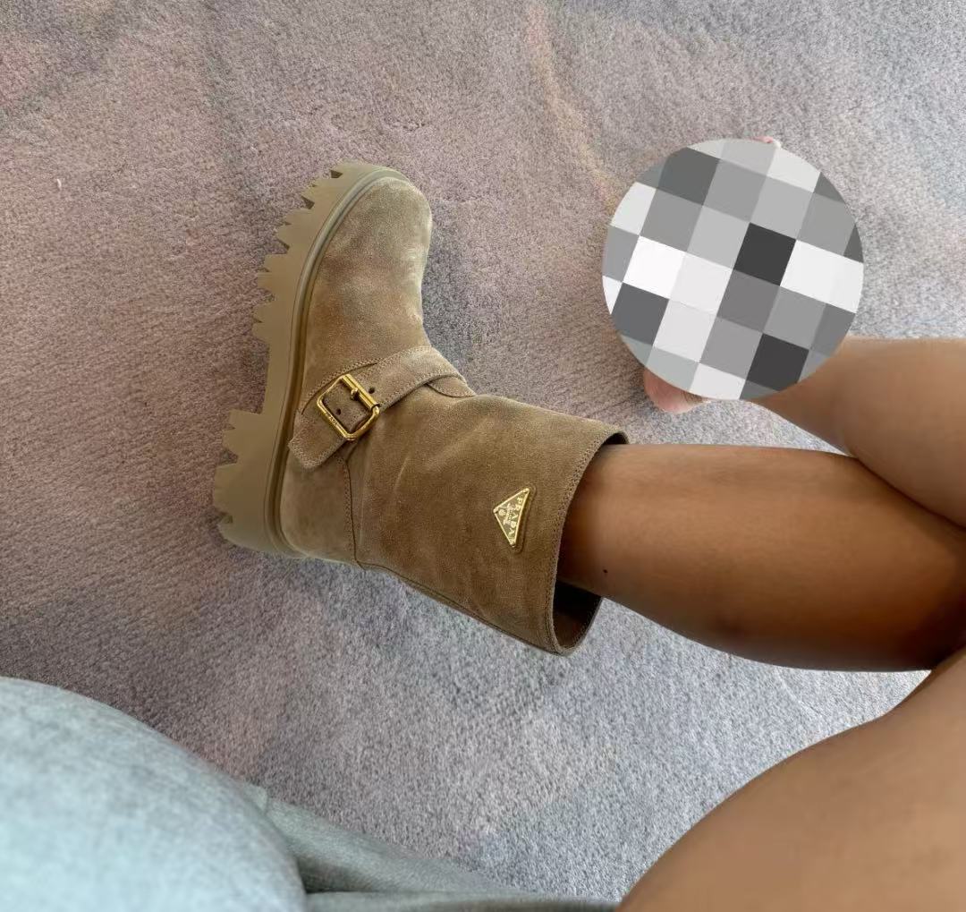 2025早秋新品 P家 復古麂皮三角標厚底短靴