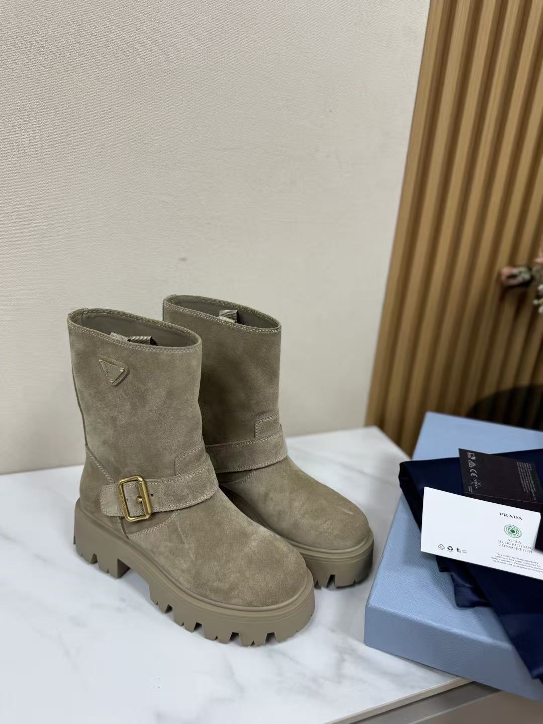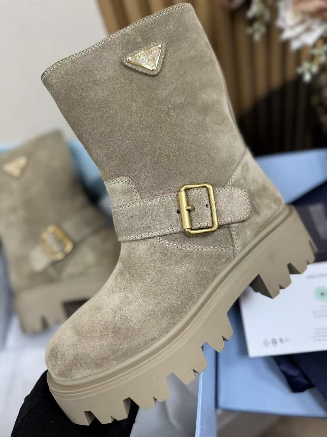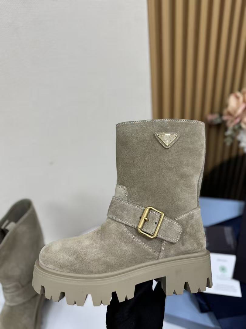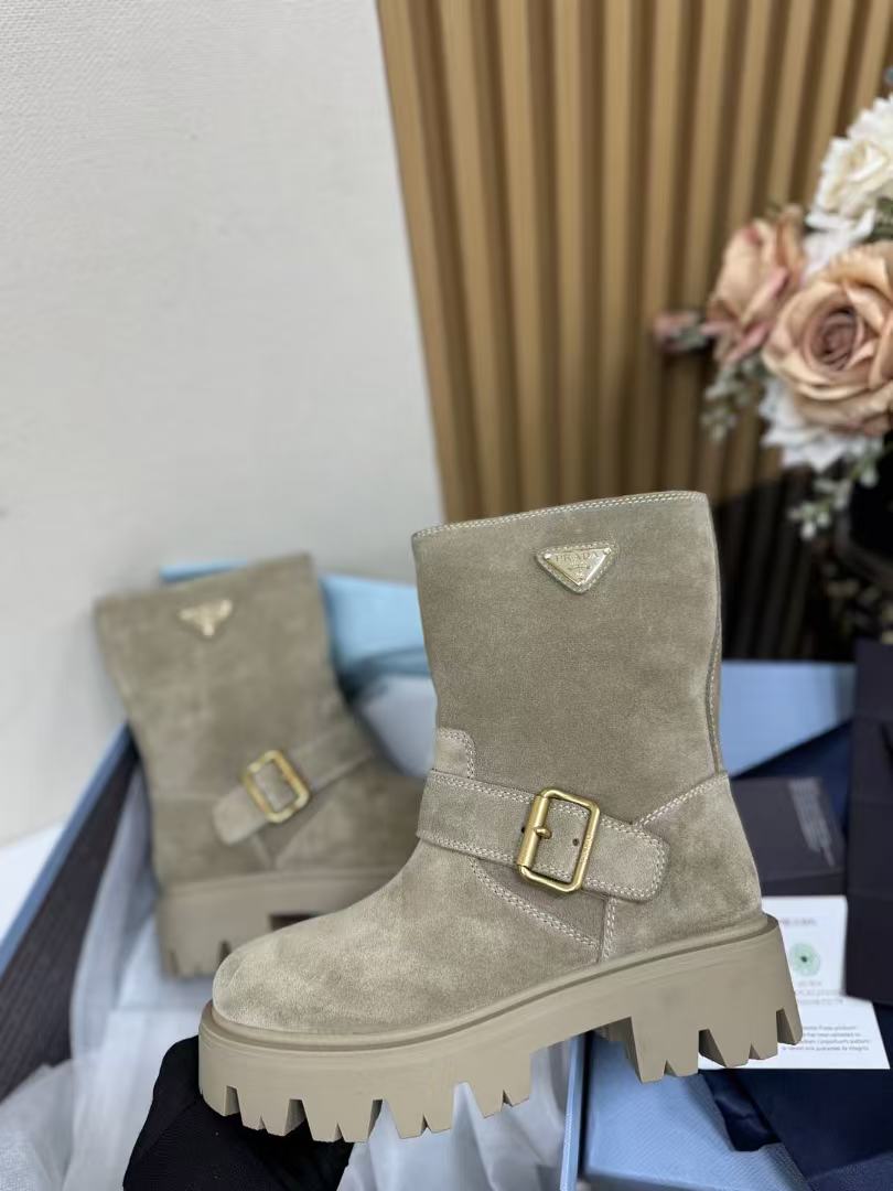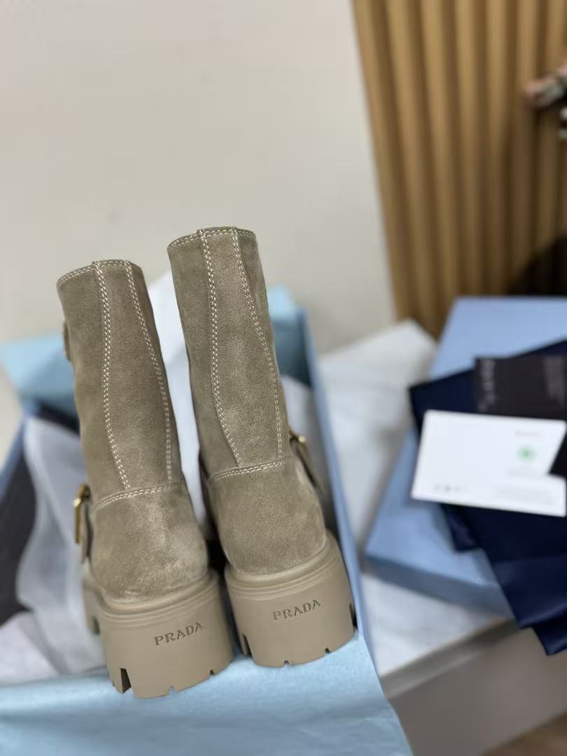 P家 復古麂皮三角標厚底短靴